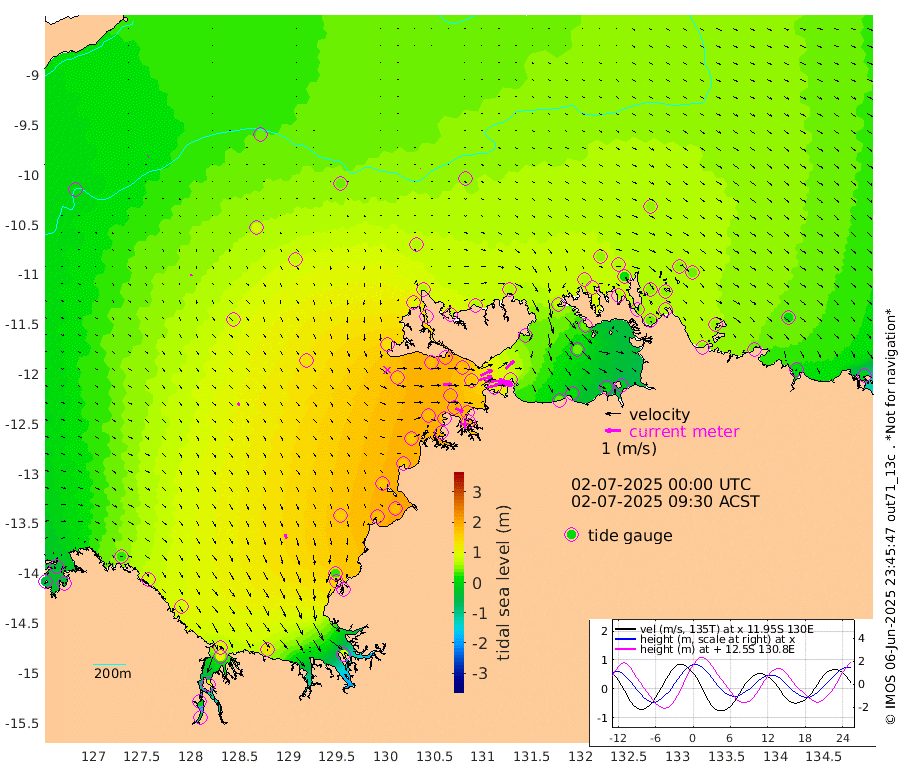 154cm/s 78T +4cm/s rms + 6cm/s 51T. Darwin_C1 52m 112cm/s 90T +4cm/s rms + 7cm/s -161T. Darwin_CW1 22m 89cm/s 74T +4cm/s rms + 8cm/s 61T. Darwin_CW2 34m 73cm/s 48T +3cm/s rms + 9cm/s 98T. Darwin_CW3 22m 129cm/s 89T +5cm/s rms + 7cm/s 88T. Darwin_C3 56m 83cm/s 65T +2cm/s rms + 9cm/s -126T. Darwin_CTbW 22m 2cm/s 19T +9cm/s rms + 2cm/s -110T. NWSLYN 196m 55cm/s 87T +1cm/s rms + 1cm/s -47T. DARBGF 30m 2cm/s 49T +7cm/s rms + 2cm/s -137T. ITFTIS 464m 10cm/s 172T +9cm/s rms + 1cm/s 74T. ITFMHB 146m 27cm/s 168T +4cm/s rms + 1cm/s -134T. ITFJBG 61m 20cm/s 143T +6cm/s rms + 4cm/s 121T. ITFFTB 108m 53cm/s 114T +4cm/s rms + 3cm/s 80T. NRSDAR 19m -42cm Carronade Island -48cm Guy Point -42cm Napier Broome Bay 33cm Lesueur Island 85cm Reveley Island 87cm Rocky Island 109cm Cape Domett 100cm Lacrosse Island 93cm Adolphus Island -1cm Pender Point -34cm Wyndham 73cm The Boxers 81cm Unnamed Shoal 35cm Loxton Shoal 127cm Pelican Island 71cm Calder Shoal 43cm Evans Shoal 82cm Quoin Island 170cm Port Keats 148cm Jones Point 29cm Catfish Island 154cm Cape Scott Offshore 173cm Cape Ford 174cm Anson Bay 59cm Goodrich Bank 164cm Peron Island North 164cm Point Jenny 166cm Native Point 175cm Fish Reef 177cm Tapa Bay 124cm Point Fawcett (Offshore) 182cm Burge Point 178cm Munkunuwa 161cm Beagle A 178cm Parsons Bank 182cm Fenton Patches 46cm Lynedoch Bank 164cm Hancox Shoal Area 184cm Nightcliff 190cm Darwin 185cm Charles Point Patches 107cm Glyde Point 36cm Chambers Bay 16cm Point Stuart 72cm Cape Hotham 37cm Christine Reef 10cm West Alligator Head -20cm East Field Island 45cm Two Hills Bay 132cm Newby Shoal 44cm Camp Point 182cm Medina Inlet South 122cm South Barlow Point 98cm St. Asaph Bay 63cm Cape Van Dieman 72cm Snake Bay 60cm Cache Point 12cm Echo Shoal 62cm Point Jahleel (Off) 70cm Cape Don 62cm Port Essington 68cm Smith Point - West 59cm NW Peacock Island 56cm North Of Jones Shoal 20cm Peacock Island 45cm Point David 65cm D'urville Point 45cm Money Shoal 43cm Copeland Island 62cm Cape Cockburn 51cm One Tree Point 42cm Hogmany Shoal 50cm New Year Island - West 49cm Grant Island 45cm Aurari Bay 38cm Cuthbert Point 47cm North Goulburn Island 21cm Paxie Shoal 20cm Entrance Island -6cm Yabooma Island