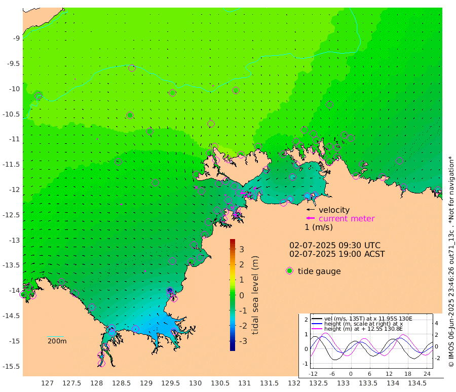 40cm/s -101T +4cm/s rms + 6cm/s 51T. Darwin_C1 52m 27cm/s -89T +4cm/s rms + 7cm/s -161T. Darwin_CW1 22m 28cm/s -105T +4cm/s rms + 8cm/s 61T. Darwin_CW2 34m 42cm/s -140T +3cm/s rms + 9cm/s 98T. Darwin_CW3 22m 63cm/s -90T +5cm/s rms + 7cm/s 88T. Darwin_C3 56m 15cm/s -114T +2cm/s rms + 9cm/s -126T. Darwin_CTbW 22m 10cm/s 155T +9cm/s rms + 2cm/s -110T. NWSLYN 196m 18cm/s 108T +1cm/s rms + 1cm/s -47T. DARBGF 30m 8cm/s 57T +7cm/s rms + 2cm/s -137T. ITFTIS 464m 7cm/s 84T +9cm/s rms + 1cm/s 74T. ITFMHB 146m 18cm/s 120T +4cm/s rms + 1cm/s -134T. ITFJBG 61m 20cm/s 112T +6cm/s rms + 4cm/s 121T. ITFFTB 108m 23cm/s 134T +4cm/s rms + 3cm/s 80T. NRSDAR 19m -26cm Carronade Island -22cm Guy Point -24cm Napier Broome Bay -60cm Lesueur Island -103cm Reveley Island -75cm Rocky Island -164cm Cape Domett -151cm Lacrosse Island -199cm Adolphus Island -191cm Pender Point -209cm Wyndham 7cm The Boxers 19cm Unnamed Shoal 38cm Loxton Shoal -161cm Pelican Island 19cm Calder Shoal 31cm Evans Shoal -245cm Quoin Island -122cm Port Keats -123cm Jones Point -290cm Catfish Island -69cm Cape Scott Offshore -29cm Cape Ford -68cm Anson Bay 34cm Goodrich Bank -67cm Peron Island North -53cm Point Jenny -47cm Native Point -70cm Fish Reef -59cm Tapa Bay -7cm Point Fawcett (Offshore) -79cm Burge Point -47cm Munkunuwa -47cm Beagle A -75cm Parsons Bank -80cm Fenton Patches 31cm Lynedoch Bank -80cm Hancox Shoal Area -84cm Nightcliff -91cm Darwin -69cm Charles Point Patches -101cm Glyde Point -137cm Chambers Bay -146cm Point Stuart -108cm Cape Hotham -121cm Christine Reef -164cm West Alligator Head -179cm East Field Island -111cm Two Hills Bay -29cm Newby Shoal -94cm Camp Point -62cm Medina Inlet South 10cm South Barlow Point 20cm St. Asaph Bay 36cm Cape Van Dieman 34cm Snake Bay 22cm Cache Point 30cm Echo Shoal 7cm Point Jahleel (Off) -33cm Cape Don 5cm Port Essington 3cm Smith Point - West 5cm NW Peacock Island 12cm North Of Jones Shoal 3cm Peacock Island -4cm Point David 3cm D'urville Point 8cm Money Shoal -9cm Copeland Island -24cm Cape Cockburn -9cm One Tree Point -14cm Hogmany Shoal -10cm New Year Island - West -11cm Grant Island -32cm Aurari Bay -50cm Cuthbert Point -30cm North Goulburn Island -49cm Paxie Shoal -77cm Entrance Island -103cm Yabooma Island