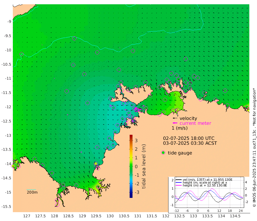 100cm/s -103T +4cm/s rms + 6cm/s 51T. Darwin_C1 52m 68cm/s -90T +4cm/s rms + 7cm/s -161T. Darwin_CW1 22m 64cm/s -109T +4cm/s rms + 8cm/s 61T. Darwin_CW2 34m 40cm/s -122T +3cm/s rms + 9cm/s 98T. Darwin_CW3 22m 79cm/s -92T +5cm/s rms + 7cm/s 88T. Darwin_C3 56m 58cm/s -115T +2cm/s rms + 9cm/s -126T. Darwin_CTbW 22m 5cm/s -34T +9cm/s rms + 2cm/s -110T. NWSLYN 196m 36cm/s -91T +1cm/s rms + 1cm/s -47T. DARBGF 30m 5cm/s -157T +7cm/s rms + 2cm/s -137T. ITFTIS 464m 1cm/s -93T +9cm/s rms + 1cm/s 74T. ITFMHB 146m 19cm/s -24T +4cm/s rms + 1cm/s -134T. ITFJBG 61m 13cm/s -47T +6cm/s rms + 4cm/s 121T. ITFFTB 108m 30cm/s -67T +4cm/s rms + 3cm/s 80T. NRSDAR 19m 59cm Carronade Island 61cm Guy Point 52cm Napier Broome Bay 11cm Lesueur Island -22cm Reveley Island -35cm Rocky Island -27cm Cape Domett -17cm Lacrosse Island -3cm Adolphus Island 47cm Pender Point 79cm Wyndham -44cm The Boxers -64cm Unnamed Shoal -23cm Loxton Shoal -44cm Pelican Island -39cm Calder Shoal -26cm Evans Shoal 8cm Quoin Island -81cm Port Keats -68cm Jones Point 62cm Catfish Island -81cm Cape Scott Offshore -88cm Cape Ford -99cm Anson Bay -43cm Goodrich Bank -84cm Peron Island North -88cm Point Jenny -93cm Native Point -88cm Fish Reef -100cm Tapa Bay -70cm Point Fawcett (Offshore) -93cm Burge Point -104cm Munkunuwa -79cm Beagle A -100cm Parsons Bank -89cm Fenton Patches -35cm Lynedoch Bank -88cm Hancox Shoal Area -95cm Nightcliff -105cm Darwin -106cm Charles Point Patches -44cm Glyde Point 15cm Chambers Bay 31cm Point Stuart -15cm Cape Hotham 13cm Christine Reef 41cm West Alligator Head 68cm East Field Island 3cm Two Hills Bay -63cm Newby Shoal -5cm Camp Point -103cm Medina Inlet South -78cm South Barlow Point -61cm St. Asaph Bay -47cm Cape Van Dieman -55cm Snake Bay -38cm Cache Point 3cm Echo Shoal -37cm Point Jahleel (Off) -37cm Cape Don -43cm Port Essington -43cm Smith Point - West -40cm NW Peacock Island -36cm North Of Jones Shoal -13cm Peacock Island -40cm Point David -44cm D'urville Point -35cm Money Shoal -36cm Copeland Island -41cm Cape Cockburn -38cm One Tree Point -37cm Hogmany Shoal -38cm New Year Island - West -39cm Grant Island -32cm Aurari Bay -26cm Cuthbert Point -35cm North Goulburn Island -22cm Paxie Shoal -11cm Entrance Island 12cm Yabooma Island