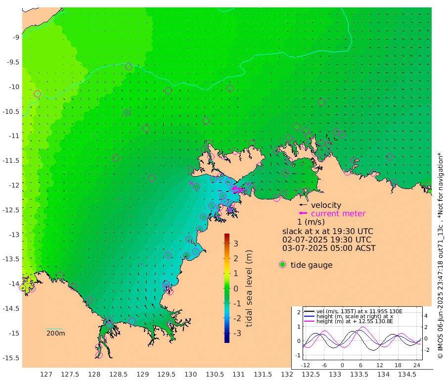 106cm/s -101T +4cm/s rms + 6cm/s 51T. Darwin_C1 52m 73cm/s -90T +4cm/s rms + 7cm/s -161T. Darwin_CW1 22m 65cm/s -106T +4cm/s rms + 8cm/s 61T. Darwin_CW2 34m 49cm/s -132T +3cm/s rms + 9cm/s 98T. Darwin_CW3 22m 101cm/s -91T +5cm/s rms + 7cm/s 88T. Darwin_C3 56m 61cm/s -115T +2cm/s rms + 9cm/s -126T. Darwin_CTbW 22m 3cm/s -40T +9cm/s rms + 2cm/s -110T. NWSLYN 196m 19cm/s -98T +1cm/s rms + 1cm/s -47T. DARBGF 30m 4cm/s 125T +7cm/s rms + 2cm/s -137T. ITFTIS 464m 5cm/s 126T +9cm/s rms + 1cm/s 74T. ITFMHB 146m 9cm/s 16T +4cm/s rms + 1cm/s -134T. ITFJBG 61m 6cm/s 80T +6cm/s rms + 4cm/s 121T. ITFFTB 108m 15cm/s -83T +4cm/s rms + 3cm/s 80T. NRSDAR 19m 70cm Carronade Island 72cm Guy Point 63cm Napier Broome Bay 5cm Lesueur Island -58cm Reveley Island -41cm Rocky Island -99cm Cape Domett -80cm Lacrosse Island -92cm Adolphus Island -59cm Pender Point -38cm Wyndham -8cm The Boxers -32cm Unnamed Shoal 28cm Loxton Shoal -121cm Pelican Island 7cm Calder Shoal 17cm Evans Shoal -125cm Quoin Island -120cm Port Keats -119cm Jones Point -116cm Catfish Island -94cm Cape Scott Offshore -55cm Cape Ford -113cm Anson Bay 2cm Goodrich Bank -91cm Peron Island North -84cm Point Jenny -85cm Native Point -92cm Fish Reef -104cm Tapa Bay -43cm Point Fawcett (Offshore) -100cm Burge Point -100cm Munkunuwa -60cm Beagle A -114cm Parsons Bank -91cm Fenton Patches 5cm Lynedoch Bank -109cm Hancox Shoal Area -108cm Nightcliff -127cm Darwin -114cm Charles Point Patches -83cm Glyde Point -59cm Chambers Bay -53cm Point Stuart -66cm Cape Hotham -45cm Christine Reef -55cm West Alligator Head -39cm East Field Island -54cm Two Hills Bay -28cm Newby Shoal -50cm Camp Point -105cm Medina Inlet South -39cm South Barlow Point -18cm St. Asaph Bay -1cm Cape Van Dieman -10cm Snake Bay 0cm Cache Point 50cm Echo Shoal -11cm Point Jahleel (Off) -40cm Cape Don -24cm Port Essington -22cm Smith Point - West -21cm NW Peacock Island -10cm North Of Jones Shoal -5cm Peacock Island -40cm Point David -26cm D'urville Point -18cm Money Shoal -40cm Copeland Island -47cm Cape Cockburn -38cm One Tree Point -48cm Hogmany Shoal -37cm New Year Island - West -41cm Grant Island -52cm Aurari Bay -61cm Cuthbert Point -53cm North Goulburn Island -67cm Paxie Shoal -69cm Entrance Island -73cm Yabooma Island