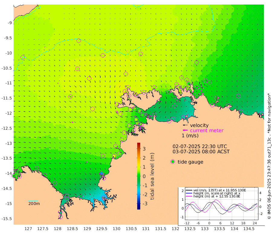 35cm/s 80T +4cm/s rms + 6cm/s 51T. Darwin_C1 52m 28cm/s 84T +4cm/s rms + 7cm/s -161T. Darwin_CW1 22m 15cm/s 74T +4cm/s rms + 8cm/s 61T. Darwin_CW2 34m 8cm/s -168T +3cm/s rms + 9cm/s 98T. Darwin_CW3 22m 1cm/s 32T +5cm/s rms + 7cm/s 88T. Darwin_C3 56m 30cm/s 63T +2cm/s rms + 9cm/s -126T. Darwin_CTbW 22m 2cm/s 129T +9cm/s rms + 2cm/s -110T. NWSLYN 196m 42cm/s 93T +1cm/s rms + 1cm/s -47T. DARBGF 30m 7cm/s 73T +7cm/s rms + 2cm/s -137T. ITFTIS 464m 12cm/s 138T +9cm/s rms + 1cm/s 74T. ITFMHB 146m 27cm/s 143T +4cm/s rms + 1cm/s -134T. ITFJBG 61m 29cm/s 124T +6cm/s rms + 4cm/s 121T. ITFFTB 108m 44cm/s 124T +4cm/s rms + 3cm/s 80T. NRSDAR 19m 9cm Carronade Island 8cm Guy Point 5cm Napier Broome Bay 10cm Lesueur Island -15cm Reveley Island 12cm Rocky Island -52cm Cape Domett -41cm Lacrosse Island -72cm Adolphus Island -131cm Pender Point -151cm Wyndham 67cm The Boxers 60cm Unnamed Shoal 76cm Loxton Shoal -53cm Pelican Island 83cm Calder Shoal 70cm Evans Shoal -132cm Quoin Island 6cm Port Keats -18cm Jones Point -203cm Catfish Island 34cm Cape Scott Offshore 92cm Cape Ford 38cm Anson Bay 75cm Goodrich Bank 47cm Peron Island North 59cm Point Jenny 62cm Native Point 53cm Fish Reef 51cm Tapa Bay 76cm Point Fawcett (Offshore) 52cm Burge Point 59cm Munkunuwa 78cm Beagle A 40cm Parsons Bank 57cm Fenton Patches 65cm Lynedoch Bank 28cm Hancox Shoal Area 46cm Nightcliff 33cm Darwin 48cm Charles Point Patches -13cm Glyde Point -73cm Chambers Bay -94cm Point Stuart -34cm Cape Hotham -53cm Christine Reef -109cm West Alligator Head -131cm East Field Island -51cm Two Hills Bay 90cm Newby Shoal -40cm Camp Point 55cm Medina Inlet South 89cm South Barlow Point 86cm St. Asaph Bay 77cm Cape Van Dieman 78cm Snake Bay 69cm Cache Point 68cm Echo Shoal 56cm Point Jahleel (Off) 22cm Cape Don 46cm Port Essington 52cm Smith Point - West 46cm NW Peacock Island 55cm North Of Jones Shoal 18cm Peacock Island 16cm Point David 47cm D'urville Point 38cm Money Shoal 11cm Copeland Island 20cm Cape Cockburn 21cm One Tree Point 2cm Hogmany Shoal 20cm New Year Island - West 16cm Grant Island -6cm Aurari Bay -27cm Cuthbert Point -3cm North Goulburn Island -48cm Paxie Shoal -60cm Entrance Island -98cm Yabooma Island