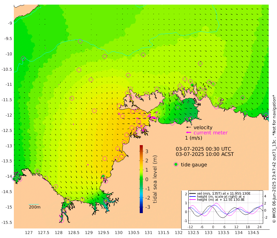 119cm/s 78T +4cm/s rms + 6cm/s 51T. Darwin_C1 52m 83cm/s 90T +4cm/s rms + 7cm/s -161T. Darwin_CW1 22m 72cm/s 74T +4cm/s rms + 8cm/s 61T. Darwin_CW2 34m 55cm/s 48T +3cm/s rms + 9cm/s 98T. Darwin_CW3 22m 103cm/s 89T +5cm/s rms + 7cm/s 88T. Darwin_C3 56m 68cm/s 65T +2cm/s rms + 9cm/s -126T. Darwin_CTbW 22m 2cm/s 41T +9cm/s rms + 2cm/s -110T. NWSLYN 196m 46cm/s 87T +1cm/s rms + 1cm/s -47T. DARBGF 30m 3cm/s 33T +7cm/s rms + 2cm/s -137T. ITFTIS 464m 7cm/s 163T +9cm/s rms + 1cm/s 74T. ITFMHB 146m 22cm/s 166T +4cm/s rms + 1cm/s -134T. ITFJBG 61m 17cm/s 139T +6cm/s rms + 4cm/s 121T. ITFFTB 108m 44cm/s 114T +4cm/s rms + 3cm/s 80T. NRSDAR 19m -24cm Carronade Island -29cm Guy Point -23cm Napier Broome Bay 35cm Lesueur Island 70cm Reveley Island 72cm Rocky Island 88cm Cape Domett 80cm Lacrosse Island 77cm Adolphus Island -4cm Pender Point -29cm Wyndham 71cm The Boxers 77cm Unnamed Shoal 42cm Loxton Shoal 99cm Pelican Island 70cm Calder Shoal 45cm Evans Shoal 62cm Quoin Island 139cm Port Keats 115cm Jones Point 11cm Catfish Island 128cm Cape Scott Offshore 136cm Cape Ford 144cm Anson Bay 59cm Goodrich Bank 137cm Peron Island North 137cm Point Jenny 139cm Native Point 144cm Fish Reef 146cm Tapa Bay 108cm Point Fawcett (Offshore) 152cm Burge Point 146cm Munkunuwa 137cm Beagle A 148cm Parsons Bank 152cm Fenton Patches 49cm Lynedoch Bank 136cm Hancox Shoal Area 155cm Nightcliff 158cm Darwin 154cm Charles Point Patches 88cm Glyde Point 29cm Chambers Bay 8cm Point Stuart 59cm Cape Hotham 31cm Christine Reef 2cm West Alligator Head -23cm East Field Island 36cm Two Hills Bay 121cm Newby Shoal 37cm Camp Point 152cm Medina Inlet South 110cm South Barlow Point 89cm St. Asaph Bay 62cm Cape Van Dieman 71cm Snake Bay 60cm Cache Point 22cm Echo Shoal 60cm Point Jahleel (Off) 65cm Cape Don 61cm Port Essington 66cm Smith Point - West 60cm NW Peacock Island 58cm North Of Jones Shoal 20cm Peacock Island 47cm Point David 64cm D'urville Point 49cm Money Shoal 45cm Copeland Island 65cm Cape Cockburn 53cm One Tree Point 44cm Hogmany Shoal 52cm New Year Island - West 52cm Grant Island 46cm Aurari Bay 39cm Cuthbert Point 49cm North Goulburn Island 24cm Paxie Shoal 24cm Entrance Island 1cm Yabooma Island