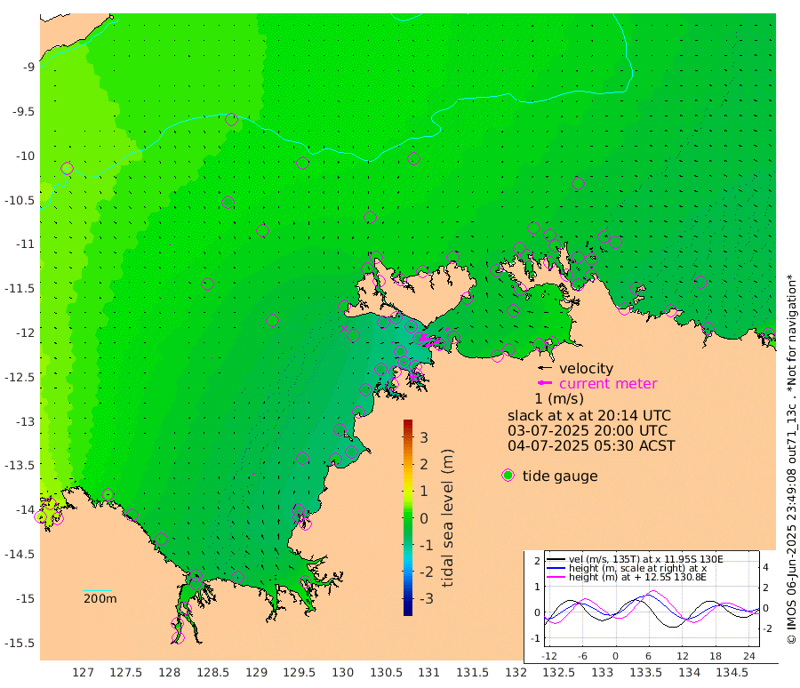 69cm/s -102T +4cm/s rms + 6cm/s 51T. Darwin_C1 52m 39cm/s -90T +4cm/s rms + 7cm/s -161T. Darwin_CW1 22m 48cm/s -107T +4cm/s rms + 8cm/s 61T. Darwin_CW2 34m 28cm/s -129T +3cm/s rms + 9cm/s 98T. Darwin_CW3 22m 70cm/s -92T +5cm/s rms + 7cm/s 88T. Darwin_C3 56m 43cm/s -115T +2cm/s rms + 9cm/s -126T. Darwin_CTbW 22m 2cm/s -17T +9cm/s rms + 2cm/s -110T. NWSLYN 196m 16cm/s -94T +1cm/s rms + 1cm/s -47T. DARBGF 30m 3cm/s 110T +7cm/s rms + 2cm/s -137T. ITFTIS 464m 4cm/s 119T +9cm/s rms + 1cm/s 74T. ITFMHB 146m 8cm/s 4T +4cm/s rms + 1cm/s -134T. ITFJBG 61m 5cm/s 55T +6cm/s rms + 4cm/s 121T. ITFFTB 108m 14cm/s -78T +4cm/s rms + 3cm/s 80T. NRSDAR 19m 74cm Carronade Island 76cm Guy Point 68cm Napier Broome Bay 30cm Lesueur Island -16cm Reveley Island -22cm Rocky Island -41cm Cape Domett -26cm Lacrosse Island -36cm Adolphus Island -7cm Pender Point 10cm Wyndham 6cm The Boxers -15cm Unnamed Shoal 29cm Loxton Shoal -61cm Pelican Island 17cm Calder Shoal 21cm Evans Shoal -55cm Quoin Island -64cm Port Keats -62cm Jones Point -50cm Catfish Island -51cm Cape Scott Offshore -6cm Cape Ford -67cm Anson Bay 7cm Goodrich Bank -49cm Peron Island North -46cm Point Jenny -48cm Native Point -49cm Fish Reef -60cm Tapa Bay -18cm Point Fawcett (Offshore) -52cm Burge Point -59cm Munkunuwa -27cm Beagle A -69cm Parsons Bank -48cm Fenton Patches 8cm Lynedoch Bank -64cm Hancox Shoal Area -62cm Nightcliff -74cm Darwin -65cm Charles Point Patches -42cm Glyde Point -24cm Chambers Bay -16cm Point Stuart -28cm Cape Hotham -15cm Christine Reef -15cm West Alligator Head -1cm East Field Island -22cm Two Hills Bay -4cm Newby Shoal -19cm Camp Point -60cm Medina Inlet South -21cm South Barlow Point -5cm St. Asaph Bay 4cm Cape Van Dieman -3cm Snake Bay 7cm Cache Point 47cm Echo Shoal -1cm Point Jahleel (Off) -20cm Cape Don -13cm Port Essington -12cm Smith Point - West -12cm NW Peacock Island -2cm North Of Jones Shoal -2cm Peacock Island -28cm Point David -17cm D'urville Point -11cm Money Shoal -28cm Copeland Island -30cm Cape Cockburn -25cm One Tree Point -30cm Hogmany Shoal -24cm New Year Island - West -28cm Grant Island -37cm Aurari Bay -43cm Cuthbert Point -37cm North Goulburn Island -45cm Paxie Shoal -49cm Entrance Island -52cm Yabooma Island