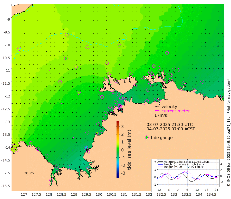 39cm/s -101T +4cm/s rms + 6cm/s 51T. Darwin_C1 52m 24cm/s -91T +4cm/s rms + 7cm/s -161T. Darwin_CW1 22m 28cm/s -107T +4cm/s rms + 8cm/s 61T. Darwin_CW2 34m 24cm/s -131T +3cm/s rms + 9cm/s 98T. Darwin_CW3 22m 54cm/s -92T +5cm/s rms + 7cm/s 88T. Darwin_C3 56m 23cm/s -116T +2cm/s rms + 9cm/s -126T. Darwin_CTbW 22m 1cm/s 81T +9cm/s rms + 2cm/s -110T. NWSLYN 196m 9cm/s 105T +1cm/s rms + 1cm/s -47T. DARBGF 30m 6cm/s 74T +7cm/s rms + 2cm/s -137T. ITFTIS 464m 8cm/s 119T +9cm/s rms + 1cm/s 74T. ITFMHB 146m 9cm/s 107T +4cm/s rms + 1cm/s -134T. ITFJBG 61m 15cm/s 107T +6cm/s rms + 4cm/s 121T. ITFFTB 108m 14cm/s 140T +4cm/s rms + 3cm/s 80T. NRSDAR 19m 61cm Carronade Island 62cm Guy Point 56cm Napier Broome Bay 26cm Lesueur Island -23cm Reveley Island -13cm Rocky Island -62cm Cape Domett -47cm Lacrosse Island -70cm Adolphus Island -73cm Pender Point -72cm Wyndham 40cm The Boxers 23cm Unnamed Shoal 65cm Loxton Shoal -80cm Pelican Island 56cm Calder Shoal 54cm Evans Shoal -117cm Quoin Island -49cm Port Keats -62cm Jones Point -165cm Catfish Island -27cm Cape Scott Offshore 41cm Cape Ford -37cm Anson Bay 47cm Goodrich Bank -19cm Peron Island North -10cm Point Jenny -9cm Native Point -17cm Fish Reef -23cm Tapa Bay 22cm Point Fawcett (Offshore) -18cm Burge Point -18cm Munkunuwa 13cm Beagle A -35cm Parsons Bank -13cm Fenton Patches 43cm Lynedoch Bank -39cm Hancox Shoal Area -30cm Nightcliff -43cm Darwin -28cm Charles Point Patches -44cm Glyde Point -62cm Chambers Bay -67cm Point Stuart -44cm Cape Hotham -43cm Christine Reef -75cm West Alligator Head -76cm East Field Island -47cm Two Hills Bay 41cm Newby Shoal -38cm Camp Point -22cm Medina Inlet South 29cm South Barlow Point 40cm St. Asaph Bay 45cm Cape Van Dieman 41cm Snake Bay 42cm Cache Point 72cm Echo Shoal 29cm Point Jahleel (Off) -5cm Cape Don 15cm Port Essington 18cm Smith Point - West 17cm NW Peacock Island 28cm North Of Jones Shoal 8cm Peacock Island -10cm Point David 13cm D'urville Point 15cm Money Shoal -13cm Copeland Island -10cm Cape Cockburn -5cm One Tree Point -17cm Hogmany Shoal -5cm New Year Island - West -9cm Grant Island -30cm Aurari Bay -45cm Cuthbert Point -26cm North Goulburn Island -55cm Paxie Shoal -66cm Entrance Island -89cm Yabooma Island
