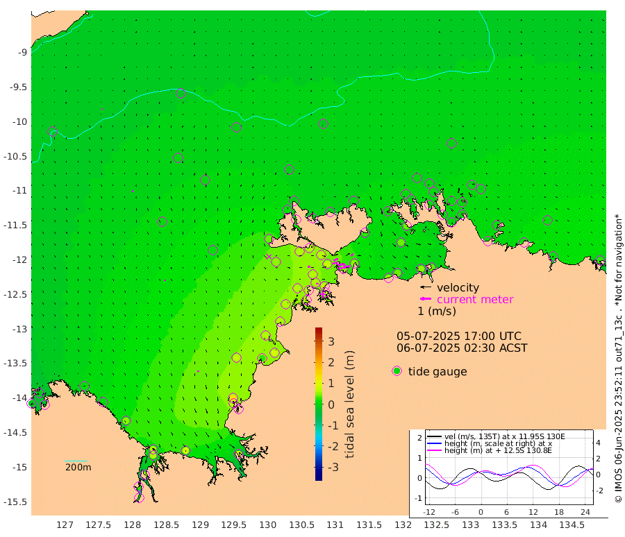 71cm/s 78T +4cm/s rms + 6cm/s 51T. Darwin_C1 52m 57cm/s 90T +4cm/s rms + 7cm/s -161T. Darwin_CW1 22m 45cm/s 74T +4cm/s rms + 8cm/s 61T. Darwin_CW2 34m 28cm/s 52T +3cm/s rms + 9cm/s 98T. Darwin_CW3 22m 70cm/s 88T +5cm/s rms + 7cm/s 88T. Darwin_C3 56m 44cm/s 66T +2cm/s rms + 9cm/s -126T. Darwin_CTbW 22m 1cm/s 7T +9cm/s rms + 2cm/s -110T. NWSLYN 196m 21cm/s 86T +1cm/s rms + 1cm/s -47T. DARBGF 30m 6cm/s -164T +7cm/s rms + 2cm/s -137T. ITFTIS 464m 14cm/s -170T +9cm/s rms + 1cm/s 74T. ITFMHB 146m 12cm/s 173T +4cm/s rms + 1cm/s -134T. ITFJBG 61m 12cm/s 164T +6cm/s rms + 4cm/s 121T. ITFFTB 108m 17cm/s 110T +4cm/s rms + 3cm/s 80T. NRSDAR 19m -21cm Carronade Island -17cm Guy Point -24cm Napier Broome Bay 14cm Lesueur Island 46cm Reveley Island 6cm Rocky Island 62cm Cape Domett 66cm Lacrosse Island 56cm Adolphus Island 26cm Pender Point 22cm Wyndham 2cm The Boxers 5cm Unnamed Shoal -21cm Loxton Shoal 85cm Pelican Island 1cm Calder Shoal -8cm Evans Shoal 83cm Quoin Island 66cm Port Keats 72cm Jones Point 133cm Catfish Island 75cm Cape Scott Offshore 28cm Cape Ford 82cm Anson Bay -7cm Goodrich Bank 67cm Peron Island North 64cm Point Jenny 61cm Native Point 66cm Fish Reef 73cm Tapa Bay 40cm Point Fawcett (Offshore) 58cm Burge Point 63cm Munkunuwa 49cm Beagle A 63cm Parsons Bank 61cm Fenton Patches -14cm Lynedoch Bank 71cm Hancox Shoal Area 79cm Nightcliff 69cm Darwin 65cm Charles Point Patches 52cm Glyde Point 51cm Chambers Bay 43cm Point Stuart 47cm Cape Hotham 39cm Christine Reef 48cm West Alligator Head 39cm East Field Island 40cm Two Hills Bay 14cm Newby Shoal 29cm Camp Point 64cm Medina Inlet South 19cm South Barlow Point 17cm St. Asaph Bay -5cm Cape Van Dieman -6cm Snake Bay 0cm Cache Point -18cm Echo Shoal 6cm Point Jahleel (Off) 19cm Cape Don 3cm Port Essington 9cm Smith Point - West 3cm NW Peacock Island 4cm North Of Jones Shoal 2cm Peacock Island 6cm Point David 6cm D'urville Point -5cm Money Shoal 8cm Copeland Island 9cm Cape Cockburn 6cm One Tree Point 10cm Hogmany Shoal 4cm New Year Island - West 5cm Grant Island 17cm Aurari Bay 15cm Cuthbert Point 11cm North Goulburn Island 19cm Paxie Shoal 22cm Entrance Island 31cm Yabooma Island