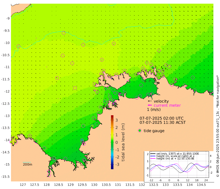 22cm/s -99T +4cm/s rms + 6cm/s 51T. Darwin_C1 52m 47cm/s -91T +4cm/s rms + 7cm/s -161T. Darwin_CW1 22m 2cm/s -105T +4cm/s rms + 8cm/s 61T. Darwin_CW2 34m 16cm/s -138T +3cm/s rms + 9cm/s 98T. Darwin_CW3 22m 14cm/s -92T +5cm/s rms + 7cm/s 88T. Darwin_C3 56m 4cm/s -109T +2cm/s rms + 9cm/s -126T. Darwin_CTbW 22m 5cm/s 122T +9cm/s rms + 2cm/s -110T. NWSLYN 196m 11cm/s 94T +1cm/s rms + 1cm/s -47T. DARBGF 30m 7cm/s 29T +7cm/s rms + 2cm/s -137T. ITFTIS 464m 7cm/s 51T +9cm/s rms + 1cm/s 74T. ITFMHB 146m 4cm/s 81T +4cm/s rms + 1cm/s -134T. ITFJBG 61m 9cm/s 87T +6cm/s rms + 4cm/s 121T. ITFFTB 108m 10cm/s 129T +4cm/s rms + 3cm/s 80T. NRSDAR 19m 62cm Carronade Island 61cm Guy Point 66cm Napier Broome Bay 53cm Lesueur Island 16cm Reveley Island 12cm Rocky Island -5cm Cape Domett 0cm Lacrosse Island -16cm Adolphus Island -19cm Pender Point -19cm Wyndham 65cm The Boxers 71cm Unnamed Shoal 73cm Loxton Shoal -21cm Pelican Island 72cm Calder Shoal 61cm Evans Shoal -49cm Quoin Island 5cm Port Keats -9cm Jones Point -89cm Catfish Island 18cm Cape Scott Offshore 44cm Cape Ford 17cm Anson Bay 63cm Goodrich Bank 26cm Peron Island North 28cm Point Jenny 31cm Native Point 21cm Fish Reef 24cm Tapa Bay 48cm Point Fawcett (Offshore) 25cm Burge Point 21cm Munkunuwa 39cm Beagle A 21cm Parsons Bank 24cm Fenton Patches 62cm Lynedoch Bank 15cm Hancox Shoal Area 20cm Nightcliff 17cm Darwin 25cm Charles Point Patches 5cm Glyde Point -14cm Chambers Bay -22cm Point Stuart 1cm Cape Hotham -5cm Christine Reef -29cm West Alligator Head -36cm East Field Island -1cm Two Hills Bay 70cm Newby Shoal 3cm Camp Point 25cm Medina Inlet South 57cm South Barlow Point 57cm St. Asaph Bay 64cm Cape Van Dieman 69cm Snake Bay 61cm Cache Point 67cm Echo Shoal 53cm Point Jahleel (Off) 35cm Cape Don 49cm Port Essington 50cm Smith Point - West 52cm NW Peacock Island 55cm North Of Jones Shoal 19cm Peacock Island 45cm Point David 51cm D'urville Point 51cm Money Shoal 40cm Copeland Island 54cm Cape Cockburn 45cm One Tree Point 50cm Hogmany Shoal 49cm New Year Island - West 48cm Grant Island 28cm Aurari Bay 23cm Cuthbert Point 38cm North Goulburn Island 17cm Paxie Shoal 14cm Entrance Island -7cm Yabooma Island