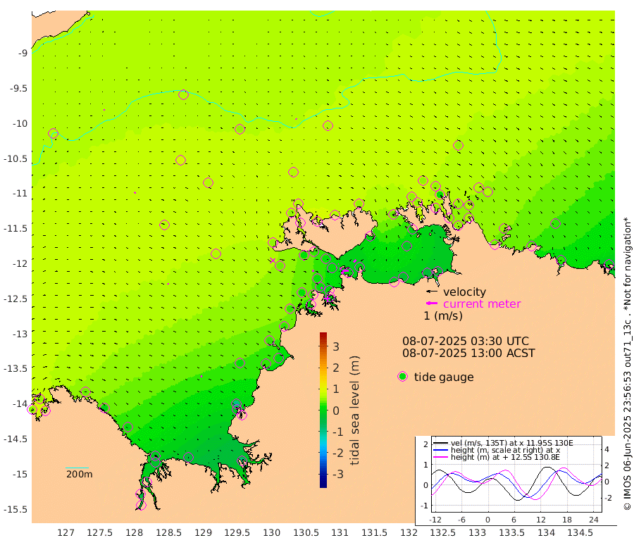 22cm/s -99T +4cm/s rms + 6cm/s 51T. Darwin_C1 52m 54cm/s -91T +4cm/s rms + 7cm/s -161T. Darwin_CW1 22m 3cm/s -109T +4cm/s rms + 8cm/s 61T. Darwin_CW2 34m 27cm/s -138T +3cm/s rms + 9cm/s 98T. Darwin_CW3 22m 20cm/s -92T +5cm/s rms + 7cm/s 88T. Darwin_C3 56m 3cm/s 49T +2cm/s rms + 9cm/s -126T. Darwin_CTbW 22m 6cm/s 130T +9cm/s rms + 2cm/s -110T. NWSLYN 196m 17cm/s 97T +1cm/s rms + 1cm/s -47T. DARBGF 30m 8cm/s 27T +7cm/s rms + 2cm/s -137T. ITFTIS 464m 8cm/s 47T +9cm/s rms + 1cm/s 74T. ITFMHB 146m 8cm/s 104T +4cm/s rms + 1cm/s -134T. ITFJBG 61m 12cm/s 96T +6cm/s rms + 4cm/s 121T. ITFFTB 108m 16cm/s 131T +4cm/s rms + 3cm/s 80T. NRSDAR 19m 50cm Carronade Island 47cm Guy Point 56cm Napier Broome Bay 42cm Lesueur Island 2cm Reveley Island -3cm Rocky Island -26cm Cape Domett -17cm Lacrosse Island -45cm Adolphus Island -50cm Pender Point -49cm Wyndham 62cm The Boxers 80cm Unnamed Shoal 63cm Loxton Shoal -36cm Pelican Island 66cm Calder Shoal 55cm Evans Shoal -79cm Quoin Island -9cm Port Keats -17cm Jones Point -95cm Catfish Island 16cm Cape Scott Offshore 31cm Cape Ford 18cm Anson Bay 61cm Goodrich Bank 24cm Peron Island North 29cm Point Jenny 32cm Native Point 20cm Fish Reef 24cm Tapa Bay 48cm Point Fawcett (Offshore) 21cm Burge Point 19cm Munkunuwa 37cm Beagle A 19cm Parsons Bank 21cm Fenton Patches 59cm Lynedoch Bank 14cm Hancox Shoal Area 18cm Nightcliff 14cm Darwin 22cm Charles Point Patches 2cm Glyde Point -20cm Chambers Bay -26cm Point Stuart -2cm Cape Hotham -11cm Christine Reef -35cm West Alligator Head -45cm East Field Island -3cm Two Hills Bay 66cm Newby Shoal 0cm Camp Point 23cm Medina Inlet South 56cm South Barlow Point 55cm St. Asaph Bay 63cm Cape Van Dieman 69cm Snake Bay 61cm Cache Point 56cm Echo Shoal 53cm Point Jahleel (Off) 37cm Cape Don 52cm Port Essington 53cm Smith Point - West 56cm NW Peacock Island 56cm North Of Jones Shoal 20cm Peacock Island 55cm Point David 56cm D'urville Point 56cm Money Shoal 50cm Copeland Island 65cm Cape Cockburn 53cm One Tree Point 62cm Hogmany Shoal 58cm New Year Island - West 57cm Grant Island 41cm Aurari Bay 36cm Cuthbert Point 47cm North Goulburn Island 31cm Paxie Shoal 28cm Entrance Island 10cm Yabooma Island