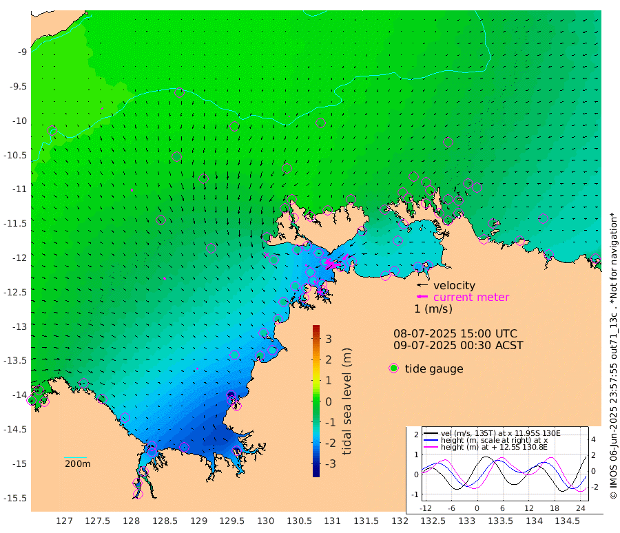 102cm/s -101T +4cm/s rms + 6cm/s 51T. Darwin_C1 52m 115cm/s -93T +4cm/s rms + 7cm/s -161T. Darwin_CW1 22m 40cm/s -104T +4cm/s rms + 8cm/s 61T. Darwin_CW2 34m 70cm/s -139T +3cm/s rms + 9cm/s 98T. Darwin_CW3 22m 88cm/s -89T +5cm/s rms + 7cm/s 88T. Darwin_C3 56m 50cm/s -116T +2cm/s rms + 9cm/s -126T. Darwin_CTbW 22m 6cm/s -159T +9cm/s rms + 2cm/s -110T. NWSLYN 196m 14cm/s 117T +1cm/s rms + 1cm/s -47T. DARBGF 30m 10cm/s 151T +7cm/s rms + 2cm/s -137T. ITFTIS 464m 19cm/s 169T +9cm/s rms + 1cm/s 74T. ITFMHB 146m 16cm/s 131T +4cm/s rms + 1cm/s -134T. ITFJBG 61m 26cm/s 136T +6cm/s rms + 4cm/s 121T. ITFFTB 108m 21cm/s 135T +4cm/s rms + 3cm/s 80T. NRSDAR 19m -32cm Carronade Island -29cm Guy Point -37cm Napier Broome Bay -109cm Lesueur Island -150cm Reveley Island -59cm Rocky Island -219cm Cape Domett -209cm Lacrosse Island -237cm Adolphus Island -233cm Pender Point -243cm Wyndham -36cm The Boxers -56cm Unnamed Shoal 11cm Loxton Shoal -220cm Pelican Island -14cm Calder Shoal 12cm Evans Shoal -305cm Quoin Island -196cm Port Keats -194cm Jones Point -316cm Catfish Island -132cm Cape Scott Offshore -98cm Cape Ford -143cm Anson Bay 2cm Goodrich Bank -123cm Peron Island North -105cm Point Jenny -104cm Native Point -124cm Fish Reef -127cm Tapa Bay -52cm Point Fawcett (Offshore) -143cm Burge Point -102cm Munkunuwa -92cm Beagle A -134cm Parsons Bank -137cm Fenton Patches -1cm Lynedoch Bank -142cm Hancox Shoal Area -149cm Nightcliff -171cm Darwin -151cm Charles Point Patches -153cm Glyde Point -155cm Chambers Bay -167cm Point Stuart -147cm Cape Hotham -136cm Christine Reef -180cm West Alligator Head -192cm East Field Island -136cm Two Hills Bay -75cm Newby Shoal -139cm Camp Point -128cm Medina Inlet South -34cm South Barlow Point -18cm St. Asaph Bay 2cm Cape Van Dieman -8cm Snake Bay -7cm Cache Point 16cm Echo Shoal -23cm Point Jahleel (Off) -65cm Cape Don -29cm Port Essington -22cm Smith Point - West -24cm NW Peacock Island -18cm North Of Jones Shoal -8cm Peacock Island -49cm Point David -25cm D'urville Point -30cm Money Shoal -50cm Copeland Island -68cm Cape Cockburn -50cm One Tree Point -67cm Hogmany Shoal -56cm New Year Island - West -54cm Grant Island -75cm Aurari Bay -85cm Cuthbert Point -70cm North Goulburn Island -107cm Paxie Shoal -106cm Entrance Island -129cm Yabooma Island