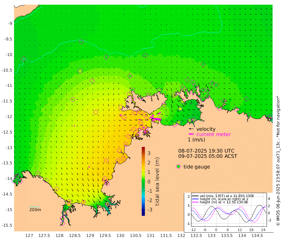 163cm/s 77T +4cm/s rms + 6cm/s 51T. Darwin_C1 52m 129cm/s 91T +4cm/s rms + 7cm/s -161T. Darwin_CW1 22m 84cm/s 74T +4cm/s rms + 8cm/s 61T. Darwin_CW2 34m 78cm/s 47T +3cm/s rms + 9cm/s 98T. Darwin_CW3 22m 121cm/s 89T +5cm/s rms + 7cm/s 88T. Darwin_C3 56m 92cm/s 66T +2cm/s rms + 9cm/s -126T. Darwin_CTbW 22m 2cm/s 42T +9cm/s rms + 2cm/s -110T. NWSLYN 196m 49cm/s 86T +1cm/s rms + 1cm/s -47T. DARBGF 30m 2cm/s 154T +7cm/s rms + 2cm/s -137T. ITFTIS 464m 17cm/s 178T +9cm/s rms + 1cm/s 74T. ITFMHB 146m 24cm/s 168T +4cm/s rms + 1cm/s -134T. ITFJBG 61m 21cm/s 147T +6cm/s rms + 4cm/s 121T. ITFFTB 108m 47cm/s 115T +4cm/s rms + 3cm/s 80T. NRSDAR 19m -11cm Carronade Island -7cm Guy Point -13cm Napier Broome Bay 55cm Lesueur Island 108cm Reveley Island 64cm Rocky Island 139cm Cape Domett 137cm Lacrosse Island 125cm Adolphus Island 55cm Pender Point 35cm Wyndham 54cm The Boxers 49cm Unnamed Shoal 9cm Loxton Shoal 163cm Pelican Island 50cm Calder Shoal 20cm Evans Shoal 136cm Quoin Island 173cm Port Keats 161cm Jones Point 127cm Catfish Island 161cm Cape Scott Offshore 164cm Cape Ford 177cm Anson Bay 29cm Goodrich Bank 152cm Peron Island North 166cm Point Jenny 164cm Native Point 166cm Fish Reef 177cm Tapa Bay 109cm Point Fawcett (Offshore) 173cm Burge Point 163cm Munkunuwa 152cm Beagle A 160cm Parsons Bank 177cm Fenton Patches 14cm Lynedoch Bank 164cm Hancox Shoal Area 186cm Nightcliff 176cm Darwin 172cm Charles Point Patches 116cm Glyde Point 73cm Chambers Bay 53cm Point Stuart 86cm Cape Hotham 72cm Christine Reef 55cm West Alligator Head 36cm East Field Island 61cm Two Hills Bay 107cm Newby Shoal 64cm Camp Point 167cm Medina Inlet South 87cm South Barlow Point 75cm St. Asaph Bay 32cm Cape Van Dieman 31cm Snake Bay 35cm Cache Point 1cm Echo Shoal 39cm Point Jahleel (Off) 54cm Cape Don 32cm Port Essington 39cm Smith Point - West 28cm NW Peacock Island 27cm North Of Jones Shoal 9cm Peacock Island 16cm Point David 32cm D'urville Point 15cm Money Shoal 16cm Copeland Island 22cm Cape Cockburn 19cm One Tree Point 17cm Hogmany Shoal 19cm New Year Island - West 18cm Grant Island 22cm Aurari Bay 19cm Cuthbert Point 17cm North Goulburn Island 16cm Paxie Shoal 12cm Entrance Island 3cm Yabooma Island