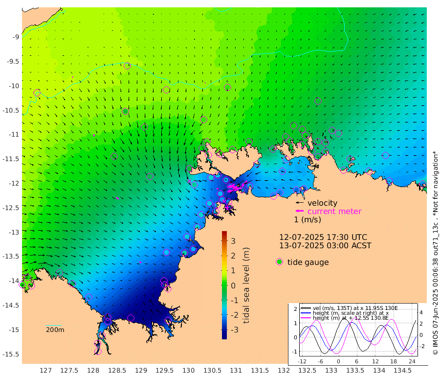 149cm/s -101T +4cm/s rms + 6cm/s 51T. Darwin_C1 52m 119cm/s -92T +4cm/s rms + 7cm/s -161T. Darwin_CW1 22m 64cm/s -105T +4cm/s rms + 8cm/s 61T. Darwin_CW2 34m 101cm/s -138T +3cm/s rms + 9cm/s 98T. Darwin_CW3 22m 122cm/s -90T +5cm/s rms + 7cm/s 88T. Darwin_C3 56m 77cm/s -116T +2cm/s rms + 9cm/s -126T. Darwin_CTbW 22m 5cm/s -146T +9cm/s rms + 2cm/s -110T. NWSLYN 196m 24cm/s 112T +1cm/s rms + 1cm/s -47T. DARBGF 30m 13cm/s 132T +7cm/s rms + 2cm/s -137T. ITFTIS 464m 24cm/s 156T +9cm/s rms + 1cm/s 74T. ITFMHB 146m 26cm/s 124T +4cm/s rms + 1cm/s -134T. ITFJBG 61m 41cm/s 127T +6cm/s rms + 4cm/s 121T. ITFFTB 108m 35cm/s 139T +4cm/s rms + 3cm/s 80T. NRSDAR 19m 6cm Carronade Island 2cm Guy Point 2cm Napier Broome Bay -100cm Lesueur Island -193cm Reveley Island -76cm Rocky Island -304cm Cape Domett -269cm Lacrosse Island -343cm Adolphus Island -329cm Pender Point -332cm Wyndham -12cm The Boxers -28cm Unnamed Shoal 51cm Loxton Shoal -318cm Pelican Island 22cm Calder Shoal 46cm Evans Shoal -427cm Quoin Island -276cm Port Keats -265cm Jones Point -384cm Catfish Island -167cm Cape Scott Offshore -117cm Cape Ford -187cm Anson Bay 27cm Goodrich Bank -148cm Peron Island North -137cm Point Jenny -137cm Native Point -148cm Fish Reef -173cm Tapa Bay -39cm Point Fawcett (Offshore) -188cm Burge Point -137cm Munkunuwa -103cm Beagle A -190cm Parsons Bank -177cm Fenton Patches 25cm Lynedoch Bank -206cm Hancox Shoal Area -203cm Nightcliff -232cm Darwin -201cm Charles Point Patches -203cm Glyde Point -216cm Chambers Bay -217cm Point Stuart -188cm Cape Hotham -193cm Christine Reef -236cm West Alligator Head -248cm East Field Island -174cm Two Hills Bay -64cm Newby Shoal -183cm Camp Point -165cm Medina Inlet South -24cm South Barlow Point 4cm St. Asaph Bay 28cm Cape Van Dieman 17cm Snake Bay 19cm Cache Point 68cm Echo Shoal -8cm Point Jahleel (Off) -77cm Cape Don -24cm Port Essington -18cm Smith Point - West -21cm NW Peacock Island 0cm North Of Jones Shoal -3cm Peacock Island -64cm Point David -26cm D'urville Point -30cm Money Shoal -67cm Copeland Island -82cm Cape Cockburn -58cm One Tree Point -94cm Hogmany Shoal -66cm New Year Island - West -72cm Grant Island -100cm Aurari Bay -131cm Cuthbert Point -99cm North Goulburn Island -158cm Paxie Shoal -173cm Entrance Island -212cm Yabooma Island