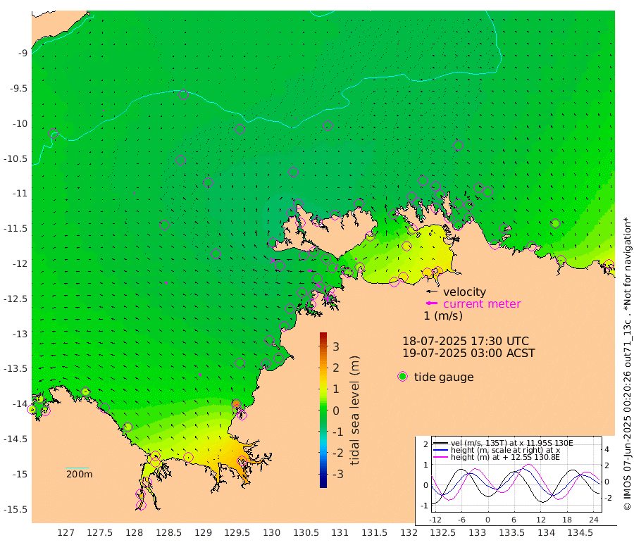 13cm/s -106T +4cm/s rms + 6cm/s 51T. Darwin_C1 52m 5cm/s 89T +4cm/s rms + 7cm/s -161T. Darwin_CW1 22m 21cm/s -112T +4cm/s rms + 8cm/s 61T. Darwin_CW2 34m 13cm/s 11T +3cm/s rms + 9cm/s 98T. Darwin_CW3 22m 8cm/s -108T +5cm/s rms + 7cm/s 88T. Darwin_C3 56m 9cm/s -123T +2cm/s rms + 9cm/s -126T. Darwin_CTbW 22m 6cm/s -16T +9cm/s rms + 2cm/s -110T. NWSLYN 196m 37cm/s -86T +1cm/s rms + 1cm/s -47T. DARBGF 30m 6cm/s -123T +7cm/s rms + 2cm/s -137T. ITFTIS 464m 6cm/s -63T +9cm/s rms + 1cm/s 74T. ITFMHB 146m 26cm/s -34T +4cm/s rms + 1cm/s -134T. ITFJBG 61m 24cm/s -53T +6cm/s rms + 4cm/s 121T. ITFFTB 108m 39cm/s -57T +4cm/s rms + 3cm/s 80T. NRSDAR 19m 71cm Carronade Island 79cm Guy Point 67cm Napier Broome Bay 63cm Lesueur Island 62cm Reveley Island 6cm Rocky Island 101cm Cape Domett 98cm Lacrosse Island 145cm Adolphus Island 178cm Pender Point 214cm Wyndham -27cm The Boxers -51cm Unnamed Shoal -35cm Loxton Shoal 95cm Pelican Island -38cm Calder Shoal -37cm Evans Shoal 184cm Quoin Island 39cm Port Keats 38cm Jones Point 232cm Catfish Island 2cm Cape Scott Offshore -55cm Cape Ford -7cm Anson Bay -47cm Goodrich Bank -19cm Peron Island North -15cm Point Jenny -20cm Native Point -22cm Fish Reef -14cm Tapa Bay -45cm Point Fawcett (Offshore) -12cm Burge Point -43cm Munkunuwa -23cm Beagle A -19cm Parsons Bank -5cm Fenton Patches -40cm Lynedoch Bank 8cm Hancox Shoal Area 6cm Nightcliff -7cm Darwin -16cm Charles Point Patches 41cm Glyde Point 108cm Chambers Bay 113cm Point Stuart 58cm Cape Hotham 102cm Christine Reef 131cm West Alligator Head 160cm East Field Island 71cm Two Hills Bay -23cm Newby Shoal 70cm Camp Point -29cm Medina Inlet South -60cm South Barlow Point -51cm St. Asaph Bay -51cm Cape Van Dieman -58cm Snake Bay -39cm Cache Point -14cm Echo Shoal -28cm Point Jahleel (Off) -3cm Cape Don -32cm Port Essington -29cm Smith Point - West -27cm NW Peacock Island -32cm North Of Jones Shoal -11cm Peacock Island -17cm Point David -29cm D'urville Point -22cm Money Shoal -11cm Copeland Island -15cm Cape Cockburn -18cm One Tree Point -3cm Hogmany Shoal -12cm New Year Island - West -12cm Grant Island 6cm Aurari Bay 24cm Cuthbert Point 0cm North Goulburn Island 35cm Paxie Shoal 51cm Entrance Island 86cm Yabooma Island