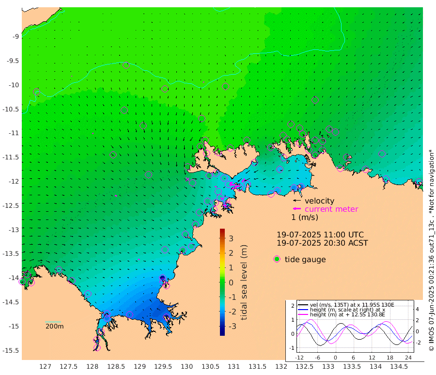 70cm/s -102T +4cm/s rms + 6cm/s 51T. Darwin_C1 52m 60cm/s -91T +4cm/s rms + 7cm/s -161T. Darwin_CW1 22m 32cm/s -105T +4cm/s rms + 8cm/s 61T. Darwin_CW2 34m 56cm/s -141T +3cm/s rms + 9cm/s 98T. Darwin_CW3 22m 70cm/s -89T +5cm/s rms + 7cm/s 88T. Darwin_C3 56m 40cm/s -115T +2cm/s rms + 9cm/s -126T. Darwin_CTbW 22m 10cm/s 170T +9cm/s rms + 2cm/s -110T. NWSLYN 196m 21cm/s 106T +1cm/s rms + 1cm/s -47T. DARBGF 30m 7cm/s 110T +7cm/s rms + 2cm/s -137T. ITFTIS 464m 12cm/s 149T +9cm/s rms + 1cm/s 74T. ITFMHB 146m 21cm/s 133T +4cm/s rms + 1cm/s -134T. ITFJBG 61m 26cm/s 127T +6cm/s rms + 4cm/s 121T. ITFFTB 108m 29cm/s 131T +4cm/s rms + 3cm/s 80T. NRSDAR 19m -66cm Carronade Island -65cm Guy Point -67cm Napier Broome Bay -117cm Lesueur Island -152cm Reveley Island -77cm Rocky Island -219cm Cape Domett -207cm Lacrosse Island -254cm Adolphus Island -250cm Pender Point -274cm Wyndham -22cm The Boxers -26cm Unnamed Shoal 26cm Loxton Shoal -216cm Pelican Island -1cm Calder Shoal 25cm Evans Shoal -295cm Quoin Island -176cm Port Keats -173cm Jones Point -311cm Catfish Island -106cm Cape Scott Offshore -78cm Cape Ford -109cm Anson Bay 16cm Goodrich Bank -96cm Peron Island North -97cm Point Jenny -93cm Native Point -101cm Fish Reef -109cm Tapa Bay -26cm Point Fawcett (Offshore) -126cm Burge Point -74cm Munkunuwa -87cm Beagle A -115cm Parsons Bank -130cm Fenton Patches 16cm Lynedoch Bank -131cm Hancox Shoal Area -136cm Nightcliff -138cm Darwin -115cm Charles Point Patches -148cm Glyde Point -178cm Chambers Bay -186cm Point Stuart -148cm Cape Hotham -169cm Christine Reef -205cm West Alligator Head -224cm East Field Island -146cm Two Hills Bay -73cm Newby Shoal -143cm Camp Point -96cm Medina Inlet South -9cm South Barlow Point 3cm St. Asaph Bay 18cm Cape Van Dieman 15cm Snake Bay 5cm Cache Point 23cm Echo Shoal -13cm Point Jahleel (Off) -59cm Cape Don -14cm Port Essington -17cm Smith Point - West -18cm NW Peacock Island 0cm North Of Jones Shoal -2cm Peacock Island -39cm Point David -20cm D'urville Point -18cm Money Shoal -43cm Copeland Island -59cm Cape Cockburn -35cm One Tree Point -63cm Hogmany Shoal -47cm New Year Island - West -48cm Grant Island -69cm Aurari Bay -93cm Cuthbert Point -64cm North Goulburn Island -99cm Paxie Shoal -126cm Entrance Island -152cm Yabooma Island