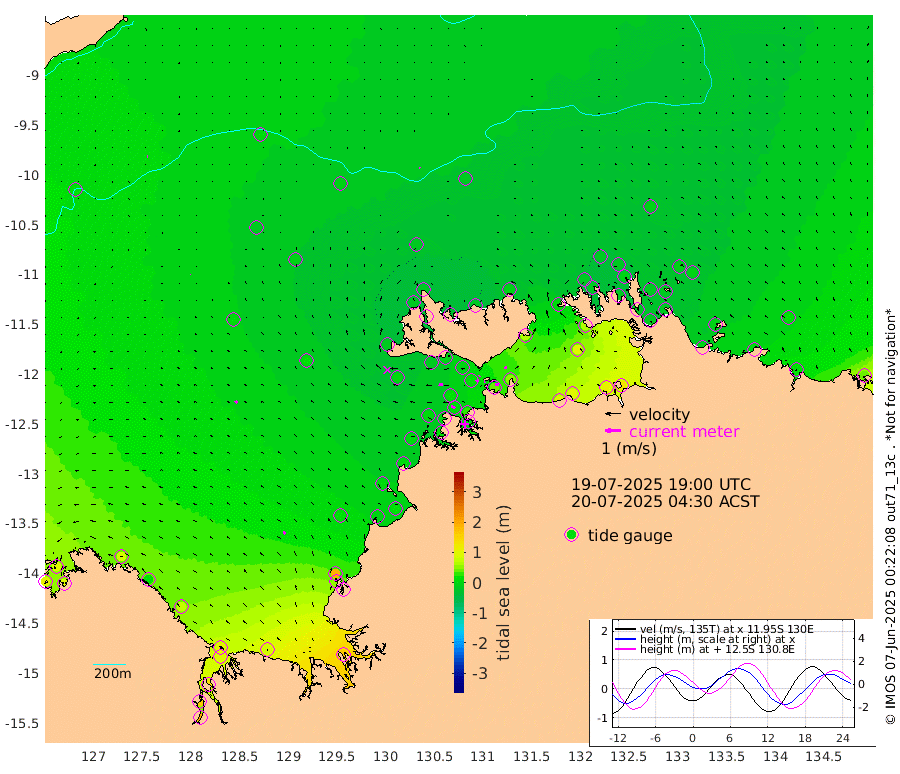 6cm/s -114T +4cm/s rms + 6cm/s 51T. Darwin_C1 52m 24cm/s 92T +4cm/s rms + 7cm/s -161T. Darwin_CW1 22m 18cm/s -110T +4cm/s rms + 8cm/s 61T. Darwin_CW2 34m 17cm/s 19T +3cm/s rms + 9cm/s 98T. Darwin_CW3 22m 6cm/s -114T +5cm/s rms + 7cm/s 88T. Darwin_C3 56m 7cm/s -125T +2cm/s rms + 9cm/s -126T. Darwin_CTbW 22m 4cm/s 0T +9cm/s rms + 2cm/s -110T. NWSLYN 196m 27cm/s -85T +1cm/s rms + 1cm/s -47T. DARBGF 30m 2cm/s -95T +7cm/s rms + 2cm/s -137T. ITFTIS 464m 3cm/s -30T +9cm/s rms + 1cm/s 74T. ITFMHB 146m 20cm/s -30T +4cm/s rms + 1cm/s -134T. ITFJBG 61m 17cm/s -43T +6cm/s rms + 4cm/s 121T. ITFFTB 108m 29cm/s -60T +4cm/s rms + 3cm/s 80T. NRSDAR 19m 95cm Carronade Island 103cm Guy Point 92cm Napier Broome Bay 85cm Lesueur Island 71cm Reveley Island 17cm Rocky Island 101cm Cape Domett 102cm Lacrosse Island 134cm Adolphus Island 163cm Pender Point 194cm Wyndham 6cm The Boxers -22cm Unnamed Shoal 0cm Loxton Shoal 90cm Pelican Island -1cm Calder Shoal -8cm Evans Shoal 160cm Quoin Island 53cm Port Keats 45cm Jones Point 190cm Catfish Island 21cm Cape Scott Offshore -4cm Cape Ford 12cm Anson Bay -18cm Goodrich Bank 2cm Peron Island North 10cm Point Jenny 5cm Native Point 2cm Fish Reef 8cm Tapa Bay -12cm Point Fawcett (Offshore) 13cm Burge Point -19cm Munkunuwa 9cm Beagle A -4cm Parsons Bank 20cm Fenton Patches -14cm Lynedoch Bank 18cm Hancox Shoal Area 23cm Nightcliff 10cm Darwin 8cm Charles Point Patches 44cm Glyde Point 91cm Chambers Bay 93cm Point Stuart 54cm Cape Hotham 91cm Christine Reef 106cm West Alligator Head 132cm East Field Island 60cm Two Hills Bay 16cm Newby Shoal 67cm Camp Point -5cm Medina Inlet South -29cm South Barlow Point -18cm St. Asaph Bay -22cm Cape Van Dieman -29cm Snake Bay -12cm Cache Point 19cm Echo Shoal -8cm Point Jahleel (Off) 7cm Cape Don -16cm Port Essington -14cm Smith Point - West -15cm NW Peacock Island -13cm North Of Jones Shoal -5cm Peacock Island -16cm Point David -18cm D'urville Point -10cm Money Shoal -13cm Copeland Island -14cm Cape Cockburn -14cm One Tree Point -6cm Hogmany Shoal -9cm New Year Island - West -12cm Grant Island -3cm Aurari Bay 8cm Cuthbert Point -7cm North Goulburn Island 18cm Paxie Shoal 22cm Entrance Island 43cm Yabooma Island