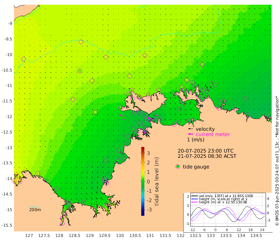 64cm/s -103T +4cm/s rms + 6cm/s 51T. Darwin_C1 52m 32cm/s -87T +4cm/s rms + 7cm/s -161T. Darwin_CW1 22m 33cm/s -110T +4cm/s rms + 8cm/s 61T. Darwin_CW2 34m 22cm/s -122T +3cm/s rms + 9cm/s 98T. Darwin_CW3 22m 37cm/s -93T +5cm/s rms + 7cm/s 88T. Darwin_C3 56m 42cm/s -116T +2cm/s rms + 9cm/s -126T. Darwin_CTbW 22m 4cm/s 109T +9cm/s rms + 2cm/s -110T. NWSLYN 196m 9cm/s -92T +1cm/s rms + 1cm/s -47T. DARBGF 30m 8cm/s 33T +7cm/s rms + 2cm/s -137T. ITFTIS 464m 10cm/s 40T +9cm/s rms + 1cm/s 74T. ITFMHB 146m 13cm/s 0T +4cm/s rms + 1cm/s -134T. ITFJBG 61m 11cm/s 23T +6cm/s rms + 4cm/s 121T. ITFFTB 108m 8cm/s -79T +4cm/s rms + 3cm/s 80T. NRSDAR 19m 99cm Carronade Island 104cm Guy Point 101cm Napier Broome Bay 76cm Lesueur Island 12cm Reveley Island 9cm Rocky Island 2cm Cape Domett 8cm Lacrosse Island 18cm Adolphus Island 35cm Pender Point 49cm Wyndham 65cm The Boxers 39cm Unnamed Shoal 91cm Loxton Shoal -19cm Pelican Island 70cm Calder Shoal 70cm Evans Shoal 2cm Quoin Island -14cm Port Keats -29cm Jones Point -11cm Catfish Island -6cm Cape Scott Offshore 16cm Cape Ford -18cm Anson Bay 60cm Goodrich Bank -8cm Peron Island North -13cm Point Jenny -12cm Native Point -15cm Fish Reef -19cm Tapa Bay 27cm Point Fawcett (Offshore) -20cm Burge Point -29cm Munkunuwa 6cm Beagle A -33cm Parsons Bank -16cm Fenton Patches 63cm Lynedoch Bank -27cm Hancox Shoal Area -26cm Nightcliff -23cm Darwin -5cm Charles Point Patches -15cm Glyde Point -10cm Chambers Bay -18cm Point Stuart -14cm Cape Hotham -8cm Christine Reef -23cm West Alligator Head -12cm East Field Island -10cm Two Hills Bay 48cm Newby Shoal 4cm Camp Point -14cm Medina Inlet South 32cm South Barlow Point 45cm St. Asaph Bay 55cm Cape Van Dieman 55cm Snake Bay 55cm Cache Point 100cm Echo Shoal 43cm Point Jahleel (Off) 17cm Cape Don 35cm Port Essington 32cm Smith Point - West 34cm NW Peacock Island 48cm North Of Jones Shoal 15cm Peacock Island 12cm Point David 28cm D'urville Point 39cm Money Shoal 8cm Copeland Island 15cm Cape Cockburn 19cm One Tree Point 14cm Hogmany Shoal 21cm New Year Island - West 15cm Grant Island -3cm Aurari Bay -13cm Cuthbert Point 2cm North Goulburn Island -16cm Paxie Shoal -30cm Entrance Island -47cm Yabooma Island