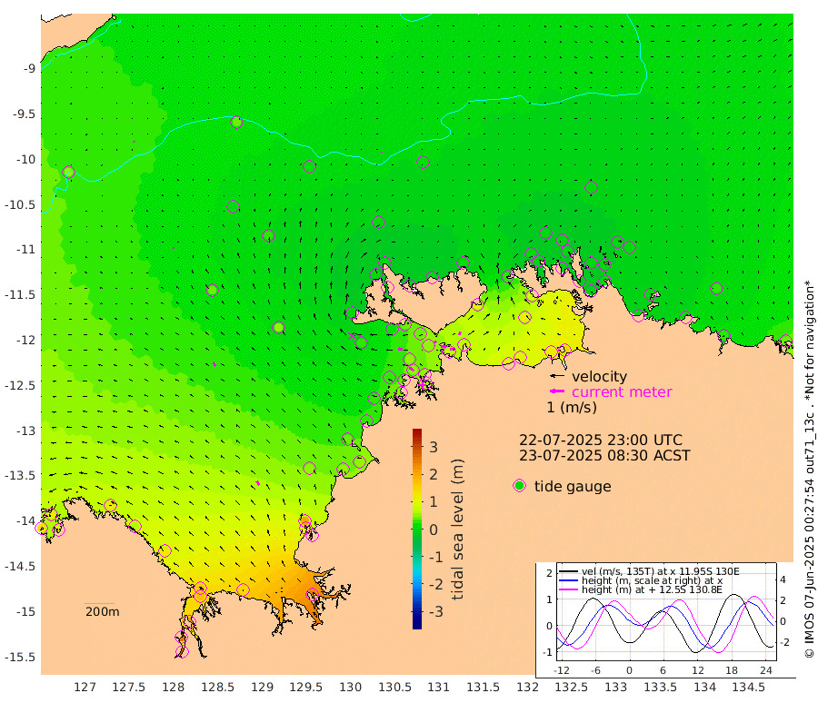 13cm/s -105T +4cm/s rms + 6cm/s 51T. Darwin_C1 52m 32cm/s 86T +4cm/s rms + 7cm/s -161T. Darwin_CW1 22m 3cm/s -152T +4cm/s rms + 8cm/s 61T. Darwin_CW2 34m 23cm/s 25T +3cm/s rms + 9cm/s 98T. Darwin_CW3 22m 30cm/s 95T +5cm/s rms + 7cm/s 88T. Darwin_C3 56m 18cm/s -120T +2cm/s rms + 9cm/s -126T. Darwin_CTbW 22m 5cm/s 32T +9cm/s rms + 2cm/s -110T. NWSLYN 196m 33cm/s -81T +1cm/s rms + 1cm/s -47T. DARBGF 30m 6cm/s -20T +7cm/s rms + 2cm/s -137T. ITFTIS 464m 12cm/s -7T +9cm/s rms + 1cm/s 74T. ITFMHB 146m 32cm/s -31T +4cm/s rms + 1cm/s -134T. ITFJBG 61m 30cm/s -41T +6cm/s rms + 4cm/s 121T. ITFFTB 108m 38cm/s -53T +4cm/s rms + 3cm/s 80T. NRSDAR 19m 115cm Carronade Island 126cm Guy Point 120cm Napier Broome Bay 121cm Lesueur Island 120cm Reveley Island 60cm Rocky Island 172cm Cape Domett 158cm Lacrosse Island 210cm Adolphus Island 252cm Pender Point 273cm Wyndham 39cm The Boxers 6cm Unnamed Shoal 39cm Loxton Shoal 145cm Pelican Island 32cm Calder Shoal 18cm Evans Shoal 246cm Quoin Island 114cm Port Keats 94cm Jones Point 198cm Catfish Island 54cm Cape Scott Offshore 49cm Cape Ford 45cm Anson Bay 8cm Goodrich Bank 36cm Peron Island North 33cm Point Jenny 32cm Native Point 31cm Fish Reef 40cm Tapa Bay 10cm Point Fawcett (Offshore) 55cm Burge Point 19cm Munkunuwa 31cm Beagle A 36cm Parsons Bank 50cm Fenton Patches 14cm Lynedoch Bank 52cm Hancox Shoal Area 56cm Nightcliff 61cm Darwin 56cm Charles Point Patches 74cm Glyde Point 112cm Chambers Bay 109cm Point Stuart 77cm Cape Hotham 107cm Christine Reef 122cm West Alligator Head 147cm East Field Island 79cm Two Hills Bay 51cm Newby Shoal 94cm Camp Point 38cm Medina Inlet South 2cm South Barlow Point 6cm St. Asaph Bay 1cm Cape Van Dieman 1cm Snake Bay 8cm Cache Point 46cm Echo Shoal 13cm Point Jahleel (Off) 28cm Cape Don 4cm Port Essington 0cm Smith Point - West 1cm NW Peacock Island 6cm North Of Jones Shoal 0cm Peacock Island -3cm Point David -5cm D'urville Point 8cm Money Shoal -3cm Copeland Island 1cm Cape Cockburn 3cm One Tree Point 8cm Hogmany Shoal 7cm New Year Island - West 5cm Grant Island 1cm Aurari Bay 12cm Cuthbert Point 8cm North Goulburn Island 30cm Paxie Shoal 28cm Entrance Island 38cm Yabooma Island