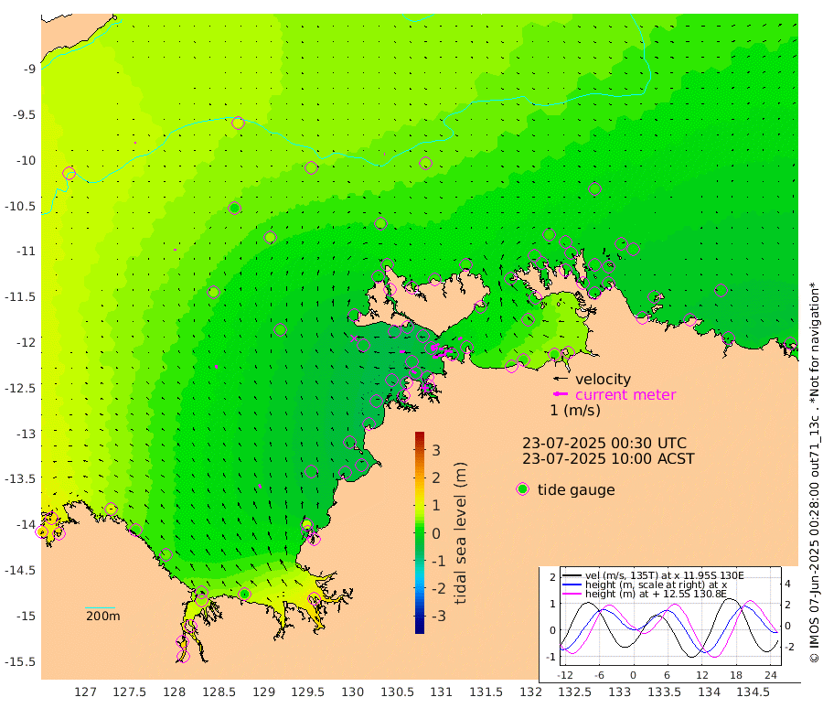 97cm/s -103T +4cm/s rms + 6cm/s 51T. Darwin_C1 52m 54cm/s -87T +4cm/s rms + 7cm/s -161T. Darwin_CW1 22m 44cm/s -110T +4cm/s rms + 8cm/s 61T. Darwin_CW2 34m 28cm/s -121T +3cm/s rms + 9cm/s 98T. Darwin_CW3 22m 34cm/s -93T +5cm/s rms + 7cm/s 88T. Darwin_C3 56m 62cm/s -116T +2cm/s rms + 9cm/s -126T. Darwin_CTbW 22m 4cm/s 102T +9cm/s rms + 2cm/s -110T. NWSLYN 196m 37cm/s -87T +1cm/s rms + 1cm/s -47T. DARBGF 30m 7cm/s 11T +7cm/s rms + 2cm/s -137T. ITFTIS 464m 14cm/s 13T +9cm/s rms + 1cm/s 74T. ITFMHB 146m 31cm/s -22T +4cm/s rms + 1cm/s -134T. ITFJBG 61m 24cm/s -26T +6cm/s rms + 4cm/s 121T. ITFFTB 108m 36cm/s -61T +4cm/s rms + 3cm/s 80T. NRSDAR 19m 132cm Carronade Island 141cm Guy Point 140cm Napier Broome Bay 96cm Lesueur Island 37cm Reveley Island 23cm Rocky Island 45cm Cape Domett 42cm Lacrosse Island 79cm Adolphus Island 136cm Pender Point 164cm Wyndham 50cm The Boxers 16cm Unnamed Shoal 81cm Loxton Shoal 12cm Pelican Island 50cm Calder Shoal 53cm Evans Shoal 88cm Quoin Island -9cm Port Keats -27cm Jones Point 76cm Catfish Island -22cm Cape Scott Offshore -39cm Cape Ford -38cm Anson Bay 36cm Goodrich Bank -33cm Peron Island North -41cm Point Jenny -40cm Native Point -48cm Fish Reef -45cm Tapa Bay -7cm Point Fawcett (Offshore) -43cm Burge Point -60cm Munkunuwa -30cm Beagle A -53cm Parsons Bank -44cm Fenton Patches 47cm Lynedoch Bank -41cm Hancox Shoal Area -45cm Nightcliff -40cm Darwin -29cm Charles Point Patches -9cm Glyde Point 31cm Chambers Bay 27cm Point Stuart 2cm Cape Hotham 30cm Christine Reef 31cm West Alligator Head 54cm East Field Island 17cm Two Hills Bay 24cm Newby Shoal 29cm Camp Point -42cm Medina Inlet South -3cm South Barlow Point 12cm St. Asaph Bay 29cm Cape Van Dieman 30cm Snake Bay 32cm Cache Point 93cm Echo Shoal 25cm Point Jahleel (Off) 13cm Cape Don 18cm Port Essington 13cm Smith Point - West 18cm NW Peacock Island 31cm North Of Jones Shoal 9cm Peacock Island 5cm Point David 10cm D'urville Point 28cm Money Shoal 2cm Copeland Island 7cm Cape Cockburn 12cm One Tree Point 13cm Hogmany Shoal 15cm New Year Island - West 11cm Grant Island -6cm Aurari Bay -3cm Cuthbert Point 4cm North Goulburn Island 5cm Paxie Shoal -4cm Entrance Island -7cm Yabooma Island