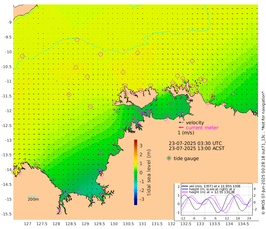 50cm/s -101T +4cm/s rms + 6cm/s 51T. Darwin_C1 52m 67cm/s -91T +4cm/s rms + 7cm/s -161T. Darwin_CW1 22m 19cm/s -111T +4cm/s rms + 8cm/s 61T. Darwin_CW2 34m 46cm/s -137T +3cm/s rms + 9cm/s 98T. Darwin_CW3 22m 37cm/s -92T +5cm/s rms + 7cm/s 88T. Darwin_C3 56m 14cm/s -112T +2cm/s rms + 9cm/s -126T. Darwin_CTbW 22m 10cm/s 141T +9cm/s rms + 2cm/s -110T. NWSLYN 196m 21cm/s 100T +1cm/s rms + 1cm/s -47T. DARBGF 30m 10cm/s 36T +7cm/s rms + 2cm/s -137T. ITFTIS 464m 10cm/s 61T +9cm/s rms + 1cm/s 74T. ITFMHB 146m 12cm/s 94T +4cm/s rms + 1cm/s -134T. ITFJBG 61m 19cm/s 99T +6cm/s rms + 4cm/s 121T. ITFFTB 108m 21cm/s 135T +4cm/s rms + 3cm/s 80T. NRSDAR 19m 63cm Carronade Island 59cm Guy Point 71cm Napier Broome Bay 34cm Lesueur Island -39cm Reveley Island -16cm Rocky Island -84cm Cape Domett -70cm Lacrosse Island -103cm Adolphus Island -105cm Pender Point -98cm Wyndham 79cm The Boxers 84cm Unnamed Shoal 95cm Loxton Shoal -91cm Pelican Island 83cm Calder Shoal 86cm Evans Shoal -136cm Quoin Island -64cm Port Keats -67cm Jones Point -80cm Catfish Island -9cm Cape Scott Offshore 3cm Cape Ford -11cm Anson Bay 86cm Goodrich Bank 6cm Peron Island North 0cm Point Jenny 2cm Native Point -3cm Fish Reef -12cm Tapa Bay 58cm Point Fawcett (Offshore) -24cm Burge Point -17cm Munkunuwa 15cm Beagle A -21cm Parsons Bank -23cm Fenton Patches 85cm Lynedoch Bank -29cm Hancox Shoal Area -32cm Nightcliff -27cm Darwin -3cm Charles Point Patches -31cm Glyde Point -52cm Chambers Bay -58cm Point Stuart -32cm Cape Hotham -47cm Christine Reef -72cm West Alligator Head -82cm East Field Island -24cm Two Hills Bay 59cm Newby Shoal -27cm Camp Point -5cm Medina Inlet South 65cm South Barlow Point 71cm St. Asaph Bay 87cm Cape Van Dieman 91cm Snake Bay 86cm Cache Point 93cm Echo Shoal 69cm Point Jahleel (Off) 42cm Cape Don 74cm Port Essington 73cm Smith Point - West 76cm NW Peacock Island 84cm North Of Jones Shoal 29cm Peacock Island 64cm Point David 75cm D'urville Point 79cm Money Shoal 59cm Copeland Island 80cm Cape Cockburn 69cm One Tree Point 74cm Hogmany Shoal 69cm New Year Island - West 65cm Grant Island 45cm Aurari Bay 38cm Cuthbert Point 53cm North Goulburn Island 26cm Paxie Shoal 11cm Entrance Island -12cm Yabooma Island