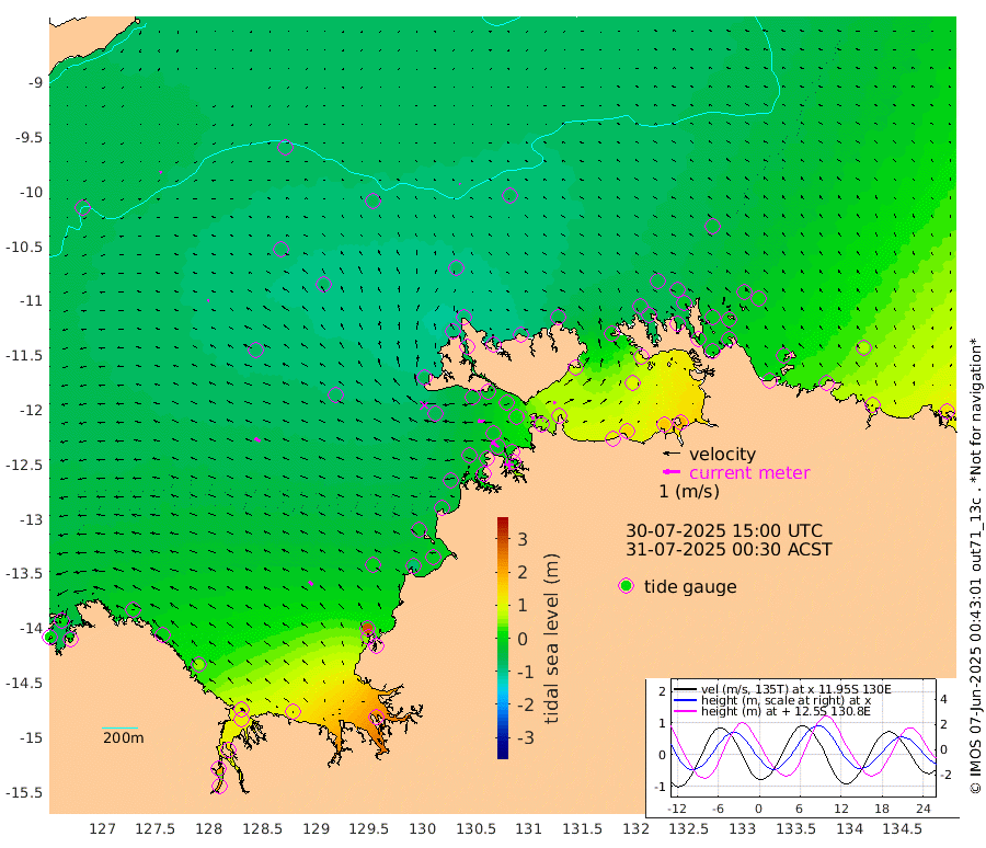 2cm/s 162T +4cm/s rms + 6cm/s 51T. Darwin_C1 52m 5cm/s 71T +4cm/s rms + 7cm/s -161T. Darwin_CW1 22m 6cm/s -112T +4cm/s rms + 8cm/s 61T. Darwin_CW2 34m 15cm/s 34T +3cm/s rms + 9cm/s 98T. Darwin_CW3 22m 16cm/s 95T +5cm/s rms + 7cm/s 88T. Darwin_C3 56m 4cm/s -130T +2cm/s rms + 9cm/s -126T. Darwin_CTbW 22m 6cm/s -25T +9cm/s rms + 2cm/s -110T. NWSLYN 196m 45cm/s -85T +1cm/s rms + 1cm/s -47T. DARBGF 30m 12cm/s -126T +7cm/s rms + 2cm/s -137T. ITFTIS 464m 12cm/s -73T +9cm/s rms + 1cm/s 74T. ITFMHB 146m 30cm/s -40T +4cm/s rms + 1cm/s -134T. ITFJBG 61m 35cm/s -61T +6cm/s rms + 4cm/s 121T. ITFFTB 108m 55cm/s -54T +4cm/s rms + 3cm/s 80T. NRSDAR 19m 11cm Carronade Island 15cm Guy Point 7cm Napier Broome Bay 21cm Lesueur Island 56cm Reveley Island -1cm Rocky Island 110cm Cape Domett 99cm Lacrosse Island 153cm Adolphus Island 193cm Pender Point 223cm Wyndham -68cm The Boxers -75cm Unnamed Shoal -75cm Loxton Shoal 109cm Pelican Island -78cm Calder Shoal -66cm Evans Shoal 227cm Quoin Island 38cm Port Keats 51cm Jones Point 290cm Catfish Island -6cm Cape Scott Offshore -85cm Cape Ford -14cm Anson Bay -79cm Goodrich Bank -16cm Peron Island North -42cm Point Jenny -48cm Native Point -30cm Fish Reef -32cm Tapa Bay -67cm Point Fawcett (Offshore) -25cm Burge Point -43cm Munkunuwa -60cm Beagle A -13cm Parsons Bank -31cm Fenton Patches -67cm Lynedoch Bank 2cm Hancox Shoal Area -11cm Nightcliff -3cm Darwin -25cm Charles Point Patches 45cm Glyde Point 118cm Chambers Bay 141cm Point Stuart 73cm Cape Hotham 98cm Christine Reef 163cm West Alligator Head 188cm East Field Island 91cm Two Hills Bay -73cm Newby Shoal 69cm Camp Point -33cm Medina Inlet South -84cm South Barlow Point -83cm St. Asaph Bay -82cm Cape Van Dieman -82cm Snake Bay -68cm Cache Point -61cm Echo Shoal -48cm Point Jahleel (Off) -7cm Cape Don -42cm Port Essington -43cm Smith Point - West -39cm NW Peacock Island -45cm North Of Jones Shoal -14cm Peacock Island -11cm Point David -39cm D'urville Point -35cm Money Shoal -4cm Copeland Island -2cm Cape Cockburn -12cm One Tree Point 6cm Hogmany Shoal -13cm New Year Island - West -8cm Grant Island 19cm Aurari Bay 42cm Cuthbert Point 17cm North Goulburn Island 60cm Paxie Shoal 81cm Entrance Island 130cm Yabooma Island