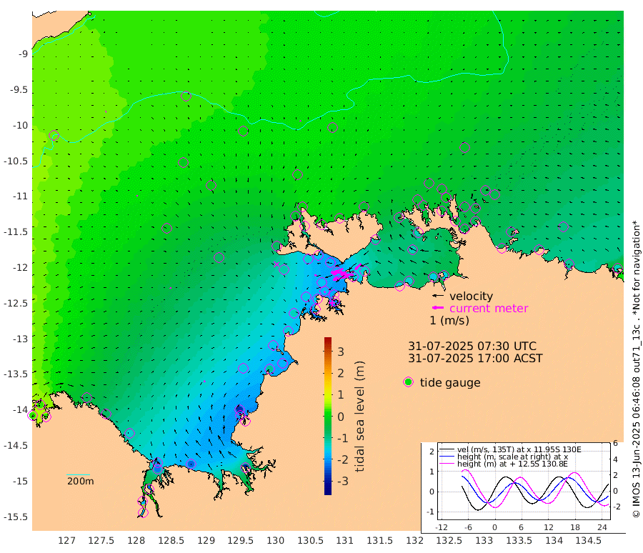 144cm/s -101T +4cm/s rms + 6cm/s 51T. Darwin_C1 52m 113cm/s -91T +4cm/s rms + 7cm/s -161T. Darwin_CW1 22m 80cm/s -105T +4cm/s rms + 8cm/s 61T. Darwin_CW2 34m 73cm/s -136T +3cm/s rms + 9cm/s 98T. Darwin_CW3 22m 141cm/s -91T +5cm/s rms + 7cm/s 88T. Darwin_C3 56m 81cm/s -115T +2cm/s rms + 9cm/s -126T. Darwin_CTbW 22m 8cm/s 175T +9cm/s rms + 2cm/s -110T. NWSLYN 196m 16cm/s -112T +1cm/s rms + 1cm/s -47T. DARBGF 30m 7cm/s 68T +7cm/s rms + 2cm/s -137T. ITFTIS 464m 8cm/s 66T +9cm/s rms + 1cm/s 74T. ITFMHB 146m 12cm/s 60T +4cm/s rms + 1cm/s -134T. ITFJBG 61m 14cm/s 93T +6cm/s rms + 4cm/s 121T. ITFFTB 108m 10cm/s -118T +4cm/s rms + 3cm/s 80T. NRSDAR 19m 30cm Carronade Island 30cm Guy Point 32cm Napier Broome Bay -60cm Lesueur Island -139cm Reveley Island -69cm Rocky Island -215cm Cape Domett -197cm Lacrosse Island -235cm Adolphus Island -176cm Pender Point -171cm Wyndham -16cm The Boxers -22cm Unnamed Shoal 29cm Loxton Shoal -231cm Pelican Island -8cm Calder Shoal 14cm Evans Shoal -292cm Quoin Island -211cm Port Keats -201cm Jones Point -278cm Catfish Island -157cm Cape Scott Offshore -104cm Cape Ford -172cm Anson Bay 7cm Goodrich Bank -158cm Peron Island North -135cm Point Jenny -131cm Native Point -155cm Fish Reef -157cm Tapa Bay -71cm Point Fawcett (Offshore) -170cm Burge Point -146cm Munkunuwa -114cm Beagle A -176cm Parsons Bank -163cm Fenton Patches 10cm Lynedoch Bank -176cm Hancox Shoal Area -188cm Nightcliff -198cm Darwin -173cm Charles Point Patches -156cm Glyde Point -148cm Chambers Bay -144cm Point Stuart -145cm Cape Hotham -129cm Christine Reef -157cm West Alligator Head -150cm East Field Island -130cm Two Hills Bay -74cm Newby Shoal -114cm Camp Point -161cm Medina Inlet South -54cm South Barlow Point -30cm St. Asaph Bay 5cm Cape Van Dieman -5cm Snake Bay -5cm Cache Point 41cm Echo Shoal -24cm Point Jahleel (Off) -70cm Cape Don -32cm Port Essington -34cm Smith Point - West -31cm NW Peacock Island -23cm North Of Jones Shoal -10cm Peacock Island -47cm Point David -36cm D'urville Point -24cm Money Shoal -51cm Copeland Island -75cm Cape Cockburn -51cm One Tree Point -59cm Hogmany Shoal -49cm New Year Island - West -53cm Grant Island -74cm Aurari Bay -86cm Cuthbert Point -74cm North Goulburn Island -90cm Paxie Shoal -107cm Entrance Island -130cm Yabooma Island
