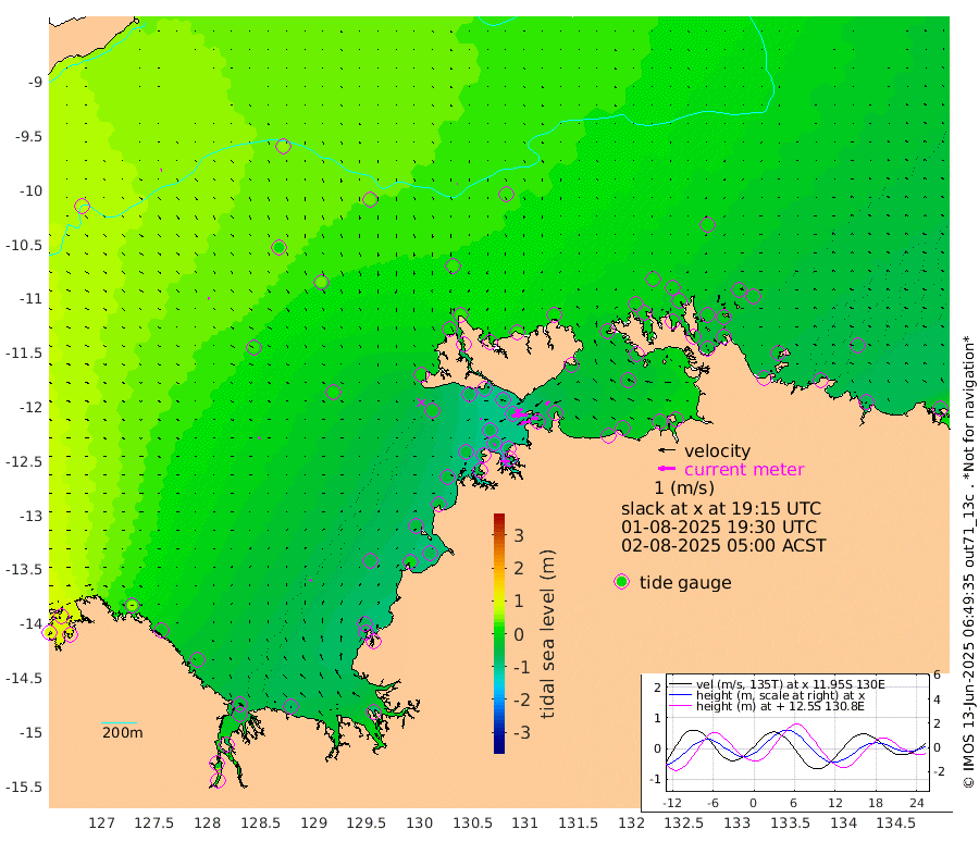 69cm/s -102T +4cm/s rms + 6cm/s 51T. Darwin_C1 52m 36cm/s -90T +4cm/s rms + 7cm/s -161T. Darwin_CW1 22m 52cm/s -107T +4cm/s rms + 8cm/s 61T. Darwin_CW2 34m 29cm/s -130T +3cm/s rms + 9cm/s 98T. Darwin_CW3 22m 75cm/s -92T +5cm/s rms + 7cm/s 88T. Darwin_C3 56m 44cm/s -115T +2cm/s rms + 9cm/s -126T. Darwin_CTbW 22m 1cm/s 95T +9cm/s rms + 2cm/s -110T. NWSLYN 196m 10cm/s -103T +1cm/s rms + 1cm/s -47T. DARBGF 30m 5cm/s 74T +7cm/s rms + 2cm/s -137T. ITFTIS 464m 7cm/s 106T +9cm/s rms + 1cm/s 74T. ITFMHB 146m 8cm/s 36T +4cm/s rms + 1cm/s -134T. ITFJBG 61m 10cm/s 86T +6cm/s rms + 4cm/s 121T. ITFFTB 108m 9cm/s -105T +4cm/s rms + 3cm/s 80T. NRSDAR 19m 97cm Carronade Island 98cm Guy Point 95cm Napier Broome Bay 47cm Lesueur Island -21cm Reveley Island -22cm Rocky Island -55cm Cape Domett -35cm Lacrosse Island -63cm Adolphus Island -27cm Pender Point -11cm Wyndham 29cm The Boxers 13cm Unnamed Shoal 53cm Loxton Shoal -78cm Pelican Island 40cm Calder Shoal 41cm Evans Shoal -90cm Quoin Island -73cm Port Keats -69cm Jones Point -61cm Catfish Island -47cm Cape Scott Offshore 8cm Cape Ford -64cm Anson Bay 27cm Goodrich Bank -44cm Peron Island North -39cm Point Jenny -41cm Native Point -43cm Fish Reef -55cm Tapa Bay 1cm Point Fawcett (Offshore) -54cm Burge Point -57cm Munkunuwa -18cm Beagle A -73cm Parsons Bank -48cm Fenton Patches 27cm Lynedoch Bank -70cm Hancox Shoal Area -67cm Nightcliff -79cm Darwin -64cm Charles Point Patches -47cm Glyde Point -34cm Chambers Bay -27cm Point Stuart -34cm Cape Hotham -27cm Christine Reef -29cm West Alligator Head -17cm East Field Island -27cm Two Hills Bay 13cm Newby Shoal -24cm Camp Point -57cm Medina Inlet South -6cm South Barlow Point 15cm St. Asaph Bay 25cm Cape Van Dieman 17cm Snake Bay 27cm Cache Point 71cm Echo Shoal 14cm Point Jahleel (Off) -13cm Cape Don 0cm Port Essington -1cm Smith Point - West -1cm NW Peacock Island 12cm North Of Jones Shoal 2cm Peacock Island -21cm Point David -7cm D'urville Point 0cm Money Shoal -23cm Copeland Island -24cm Cape Cockburn -17cm One Tree Point -23cm Hogmany Shoal -16cm New Year Island - West -21cm Grant Island -35cm Aurari Bay -46cm Cuthbert Point -33cm North Goulburn Island -48cm Paxie Shoal -60cm Entrance Island -72cm Yabooma Island