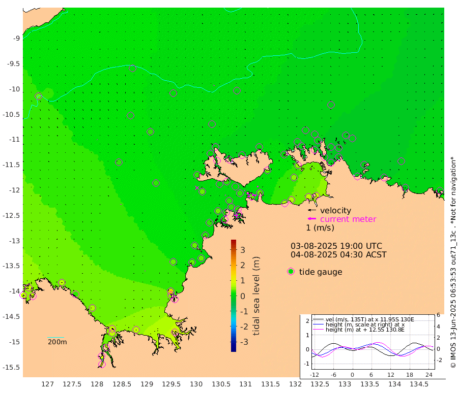 22cm/s 82T +4cm/s rms + 6cm/s 51T. Darwin_C1 52m 51cm/s 92T +4cm/s rms + 7cm/s -161T. Darwin_CW1 22m 2cm/s 103T +4cm/s rms + 8cm/s 61T. Darwin_CW2 34m 19cm/s 33T +3cm/s rms + 9cm/s 98T. Darwin_CW3 22m 20cm/s 93T +5cm/s rms + 7cm/s 88T. Darwin_C3 56m 9cm/s 72T +2cm/s rms + 9cm/s -126T. Darwin_CTbW 22m 2cm/s 30T +9cm/s rms + 2cm/s -110T. NWSLYN 196m 2cm/s -49T +1cm/s rms + 1cm/s -47T. DARBGF 30m 1cm/s 97T +7cm/s rms + 2cm/s -137T. ITFTIS 464m 4cm/s 162T +9cm/s rms + 1cm/s 74T. ITFMHB 146m 4cm/s -20T +4cm/s rms + 1cm/s -134T. ITFJBG 61m 2cm/s 9T +6cm/s rms + 4cm/s 121T. ITFFTB 108m 3cm/s -83T +4cm/s rms + 3cm/s 80T. NRSDAR 19m 74cm Carronade Island 76cm Guy Point 74cm Napier Broome Bay 77cm Lesueur Island 59cm Reveley Island 28cm Rocky Island 72cm Cape Domett 81cm Lacrosse Island 75cm Adolphus Island 92cm Pender Point 106cm Wyndham 31cm The Boxers 18cm Unnamed Shoal 21cm Loxton Shoal 68cm Pelican Island 27cm Calder Shoal 17cm Evans Shoal 98cm Quoin Island 47cm Port Keats 52cm Jones Point 166cm Catfish Island 43cm Cape Scott Offshore 42cm Cape Ford 36cm Anson Bay 8cm Goodrich Bank 34cm Peron Island North 31cm Point Jenny 28cm Native Point 37cm Fish Reef 31cm Tapa Bay 30cm Point Fawcett (Offshore) 28cm Burge Point 16cm Munkunuwa 34cm Beagle A 13cm Parsons Bank 34cm Fenton Patches 7cm Lynedoch Bank 24cm Hancox Shoal Area 29cm Nightcliff 27cm Darwin 29cm Charles Point Patches 40cm Glyde Point 57cm Chambers Bay 63cm Point Stuart 44cm Cape Hotham 49cm Christine Reef 71cm West Alligator Head 82cm East Field Island 46cm Two Hills Bay 33cm Newby Shoal 43cm Camp Point 26cm Medina Inlet South 7cm South Barlow Point 16cm St. Asaph Bay 7cm Cape Van Dieman 2cm Snake Bay 14cm Cache Point 35cm Echo Shoal 13cm Point Jahleel (Off) 16cm Cape Don 3cm Port Essington 3cm Smith Point - West -1cm NW Peacock Island 6cm North Of Jones Shoal 1cm Peacock Island -10cm Point David -4cm D'urville Point -3cm Money Shoal -10cm Copeland Island -9cm Cape Cockburn -6cm One Tree Point -5cm Hogmany Shoal -4cm New Year Island - West -9cm Grant Island -5cm Aurari Bay -8cm Cuthbert Point -9cm North Goulburn Island -3cm Paxie Shoal -11cm Entrance Island -9cm Yabooma Island