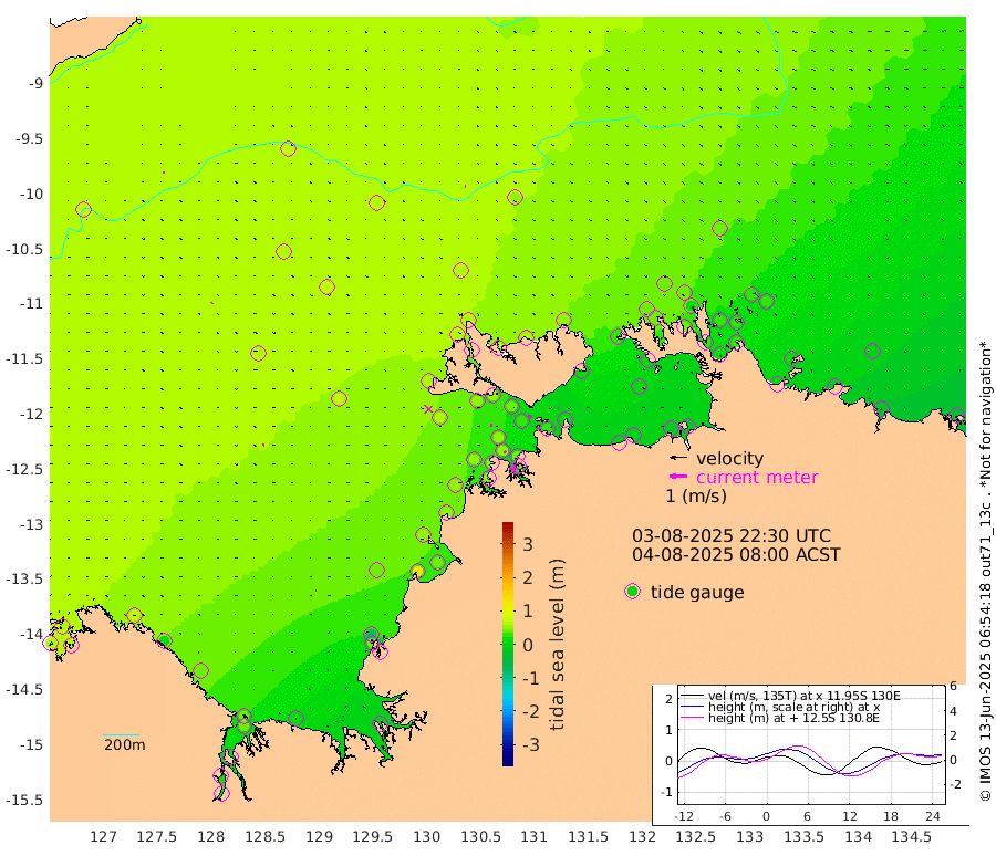 15cm/s -105T +4cm/s rms + 6cm/s 51T. Darwin_C1 52m 1cm/s 55T +4cm/s rms + 7cm/s -161T. Darwin_CW1 22m 2cm/s -140T +4cm/s rms + 8cm/s 61T. Darwin_CW2 34m 5cm/s -104T +3cm/s rms + 9cm/s 98T. Darwin_CW3 22m 2cm/s 104T +5cm/s rms + 7cm/s 88T. Darwin_C3 56m 17cm/s -115T +2cm/s rms + 9cm/s -126T. Darwin_CTbW 22m 4cm/s 96T +9cm/s rms + 2cm/s -110T. NWSLYN 196m 9cm/s 87T +1cm/s rms + 1cm/s -47T. DARBGF 30m 7cm/s 32T +7cm/s rms + 2cm/s -137T. ITFTIS 464m 7cm/s 56T +9cm/s rms + 1cm/s 74T. ITFMHB 146m 3cm/s 81T +4cm/s rms + 1cm/s -134T. ITFJBG 61m 8cm/s 72T +6cm/s rms + 4cm/s 121T. ITFFTB 108m 10cm/s 132T +4cm/s rms + 3cm/s 80T. NRSDAR 19m 62cm Carronade Island 64cm Guy Point 62cm Napier Broome Bay 68cm Lesueur Island 42cm Reveley Island 18cm Rocky Island 34cm Cape Domett 38cm Lacrosse Island 21cm Adolphus Island 20cm Pender Point 12cm Wyndham 66cm The Boxers 63cm Unnamed Shoal 72cm Loxton Shoal 19cm Pelican Island 75cm Calder Shoal 61cm Evans Shoal -6cm Quoin Island 40cm Port Keats 35cm Jones Point -71cm Catfish Island 39cm Cape Scott Offshore 131cm Cape Ford 34cm Anson Bay 61cm Goodrich Bank 48cm Peron Island North 47cm Point Jenny 49cm Native Point 48cm Fish Reef 47cm Tapa Bay 60cm Point Fawcett (Offshore) 54cm Burge Point 47cm Munkunuwa 59cm Beagle A 39cm Parsons Bank 50cm Fenton Patches 55cm Lynedoch Bank 33cm Hancox Shoal Area 36cm Nightcliff 44cm Darwin 53cm Charles Point Patches 24cm Glyde Point -3cm Chambers Bay -7cm Point Stuart 16cm Cape Hotham 1cm Christine Reef -12cm West Alligator Head -16cm East Field Island 6cm Two Hills Bay 74cm Newby Shoal 15cm Camp Point 49cm Medina Inlet South 60cm South Barlow Point 62cm St. Asaph Bay 60cm Cape Van Dieman 61cm Snake Bay 58cm Cache Point 68cm Echo Shoal 49cm Point Jahleel (Off) 30cm Cape Don 41cm Port Essington 38cm Smith Point - West 37cm NW Peacock Island 43cm North Of Jones Shoal 14cm Peacock Island 24cm Point David 34cm D'urville Point 36cm Money Shoal 19cm Copeland Island 28cm Cape Cockburn 25cm One Tree Point 29cm Hogmany Shoal 27cm New Year Island - West 25cm Grant Island 5cm Aurari Bay -4cm Cuthbert Point 13cm North Goulburn Island -6cm Paxie Shoal -14cm Entrance Island -37cm Yabooma Island