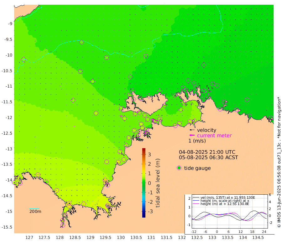 16cm/s 82T +4cm/s rms + 6cm/s 51T. Darwin_C1 52m 57cm/s 90T +4cm/s rms + 7cm/s -161T. Darwin_CW1 22m 12cm/s 76T +4cm/s rms + 8cm/s 61T. Darwin_CW2 34m 21cm/s 36T +3cm/s rms + 9cm/s 98T. Darwin_CW3 22m 35cm/s 91T +5cm/s rms + 7cm/s 88T. Darwin_C3 56m 1cm/s 120T +2cm/s rms + 9cm/s -126T. Darwin_CTbW 22m 3cm/s 49T +9cm/s rms + 2cm/s -110T. NWSLYN 196m 2cm/s -5T +1cm/s rms + 1cm/s -47T. DARBGF 30m 5cm/s 19T +7cm/s rms + 2cm/s -137T. ITFTIS 464m 3cm/s 44T +9cm/s rms + 1cm/s 74T. ITFMHB 146m 6cm/s -22T +4cm/s rms + 1cm/s -134T. ITFJBG 61m 6cm/s -3T +6cm/s rms + 4cm/s 121T. ITFFTB 108m 5cm/s -60T +4cm/s rms + 3cm/s 80T. NRSDAR 19m 74cm Carronade Island 76cm Guy Point 75cm Napier Broome Bay 93cm Lesueur Island 82cm Reveley Island 45cm Rocky Island 104cm Cape Domett 106cm Lacrosse Island 106cm Adolphus Island 116cm Pender Point 119cm Wyndham 54cm The Boxers 41cm Unnamed Shoal 43cm Loxton Shoal 96cm Pelican Island 51cm Calder Shoal 35cm Evans Shoal 119cm Quoin Island 86cm Port Keats 88cm Jones Point 127cm Catfish Island 66cm Cape Scott Offshore 116cm Cape Ford 62cm Anson Bay 30cm Goodrich Bank 63cm Peron Island North 59cm Point Jenny 58cm Native Point 67cm Fish Reef 63cm Tapa Bay 53cm Point Fawcett (Offshore) 68cm Burge Point 51cm Munkunuwa 63cm Beagle A 49cm Parsons Bank 69cm Fenton Patches 27cm Lynedoch Bank 54cm Hancox Shoal Area 58cm Nightcliff 68cm Darwin 71cm Charles Point Patches 61cm Glyde Point 60cm Chambers Bay 61cm Point Stuart 57cm Cape Hotham 51cm Christine Reef 67cm West Alligator Head 74cm East Field Island 50cm Two Hills Bay 64cm Newby Shoal 56cm Camp Point 62cm Medina Inlet South 36cm South Barlow Point 40cm St. Asaph Bay 29cm Cape Van Dieman 26cm Snake Bay 33cm Cache Point 49cm Echo Shoal 31cm Point Jahleel (Off) 30cm Cape Don 21cm Port Essington 18cm Smith Point - West 14cm NW Peacock Island 21cm North Of Jones Shoal 6cm Peacock Island 3cm Point David 11cm D'urville Point 13cm Money Shoal 1cm Copeland Island 6cm Cape Cockburn 8cm One Tree Point 11cm Hogmany Shoal 10cm New Year Island - West 6cm Grant Island 1cm Aurari Bay -3cm Cuthbert Point 2cm North Goulburn Island 3cm Paxie Shoal -6cm Entrance Island -14cm Yabooma Island