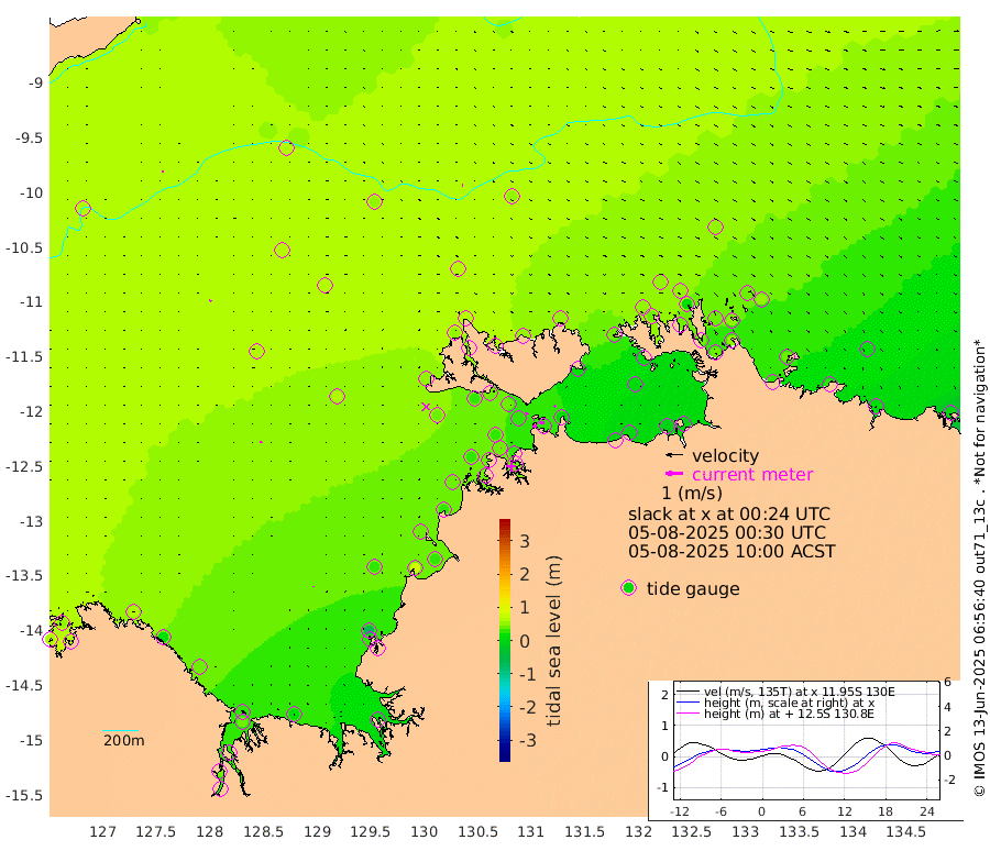 22cm/s -104T +4cm/s rms + 6cm/s 51T. Darwin_C1 52m 28cm/s -88T +4cm/s rms + 7cm/s -161T. Darwin_CW1 22m 1cm/s -152T +4cm/s rms + 8cm/s 61T. Darwin_CW2 34m 10cm/s -135T +3cm/s rms + 9cm/s 98T. Darwin_CW3 22m 4cm/s 88T +5cm/s rms + 7cm/s 88T. Darwin_C3 56m 15cm/s -112T +2cm/s rms + 9cm/s -126T. Darwin_CTbW 22m 4cm/s 106T +9cm/s rms + 2cm/s -110T. NWSLYN 196m 1cm/s -6T +1cm/s rms + 1cm/s -47T. DARBGF 30m 7cm/s 17T +7cm/s rms + 2cm/s -137T. ITFTIS 464m 8cm/s 25T +9cm/s rms + 1cm/s 74T. ITFMHB 146m 6cm/s -19T +4cm/s rms + 1cm/s -134T. ITFJBG 61m 7cm/s 13T +6cm/s rms + 4cm/s 121T. ITFFTB 108m 2cm/s -70T +4cm/s rms + 3cm/s 80T. NRSDAR 19m 55cm Carronade Island 58cm Guy Point 58cm Napier Broome Bay 61cm Lesueur Island 40cm Reveley Island 20cm Rocky Island 34cm Cape Domett 32cm Lacrosse Island 29cm Adolphus Island 34cm Pender Point 30cm Wyndham 60cm The Boxers 63cm Unnamed Shoal 67cm Loxton Shoal 20cm Pelican Island 65cm Calder Shoal 56cm Evans Shoal 8cm Quoin Island 31cm Port Keats 26cm Jones Point -59cm Catfish Island 29cm Cape Scott Offshore 90cm Cape Ford 25cm Anson Bay 57cm Goodrich Bank 38cm Peron Island North 33cm Point Jenny 36cm Native Point 31cm Fish Reef 35cm Tapa Bay 45cm Point Fawcett (Offshore) 39cm Burge Point 33cm Munkunuwa 39cm Beagle A 35cm Parsons Bank 33cm Fenton Patches 55cm Lynedoch Bank 30cm Hancox Shoal Area 26cm Nightcliff 37cm Darwin 43cm Charles Point Patches 23cm Glyde Point 5cm Chambers Bay 2cm Point Stuart 19cm Cape Hotham 8cm Christine Reef -2cm West Alligator Head -6cm East Field Island 15cm Two Hills Bay 62cm Newby Shoal 20cm Camp Point 37cm Medina Inlet South 52cm South Barlow Point 51cm St. Asaph Bay 57cm Cape Van Dieman 61cm Snake Bay 54cm Cache Point 58cm Echo Shoal 49cm Point Jahleel (Off) 35cm Cape Don 46cm Port Essington 44cm Smith Point - West 47cm NW Peacock Island 46cm North Of Jones Shoal 16cm Peacock Island 43cm Point David 44cm D'urville Point 46cm Money Shoal 38cm Copeland Island 50cm Cape Cockburn 42cm One Tree Point 54cm Hogmany Shoal 45cm New Year Island - West 46cm Grant Island 25cm Aurari Bay 24cm Cuthbert Point 36cm North Goulburn Island 22cm Paxie Shoal 21cm Entrance Island 3cm Yabooma Island