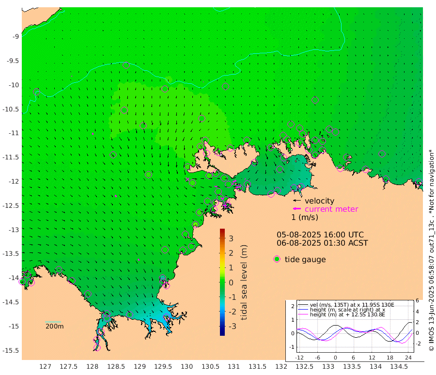 58cm/s 77T +4cm/s rms + 6cm/s 51T. Darwin_C1 52m 6cm/s 100T +4cm/s rms + 7cm/s -161T. Darwin_CW1 22m 21cm/s 73T +4cm/s rms + 8cm/s 61T. Darwin_CW2 34m 9cm/s 137T +3cm/s rms + 9cm/s 98T. Darwin_CW3 22m 6cm/s 76T +5cm/s rms + 7cm/s 88T. Darwin_C3 56m 50cm/s 64T +2cm/s rms + 9cm/s -126T. Darwin_CTbW 22m 4cm/s -171T +9cm/s rms + 2cm/s -110T. NWSLYN 196m 35cm/s 94T +1cm/s rms + 1cm/s -47T. DARBGF 30m 8cm/s 156T +7cm/s rms + 2cm/s -137T. ITFTIS 464m 22cm/s 174T +9cm/s rms + 1cm/s 74T. ITFMHB 146m 23cm/s 150T +4cm/s rms + 1cm/s -134T. ITFJBG 61m 29cm/s 141T +6cm/s rms + 4cm/s 121T. ITFFTB 108m 36cm/s 122T +4cm/s rms + 3cm/s 80T. NRSDAR 19m -16cm Carronade Island -12cm Guy Point -18cm Napier Broome Bay -31cm Lesueur Island -28cm Reveley Island 8cm Rocky Island -54cm Cape Domett -49cm Lacrosse Island -72cm Adolphus Island -110cm Pender Point -123cm Wyndham 13cm The Boxers 1cm Unnamed Shoal 15cm Loxton Shoal -42cm Pelican Island 22cm Calder Shoal 21cm Evans Shoal -107cm Quoin Island -20cm Port Keats -33cm Jones Point -107cm Catfish Island 14cm Cape Scott Offshore 9cm Cape Ford 16cm Anson Bay 20cm Goodrich Bank 13cm Peron Island North 34cm Point Jenny 33cm Native Point 17cm Fish Reef 25cm Tapa Bay 32cm Point Fawcett (Offshore) 10cm Burge Point 29cm Munkunuwa 31cm Beagle A 12cm Parsons Bank 17cm Fenton Patches 11cm Lynedoch Bank 11cm Hancox Shoal Area 21cm Nightcliff -4cm Darwin 5cm Charles Point Patches -24cm Glyde Point -48cm Chambers Bay -66cm Point Stuart -37cm Cape Hotham -32cm Christine Reef -72cm West Alligator Head -91cm East Field Island -41cm Two Hills Bay 23cm Newby Shoal -44cm Camp Point 16cm Medina Inlet South 31cm South Barlow Point 33cm St. Asaph Bay 22cm Cape Van Dieman 17cm Snake Bay 19cm Cache Point 10cm Echo Shoal 13cm Point Jahleel (Off) -1cm Cape Don 6cm Port Essington 17cm Smith Point - West 10cm NW Peacock Island 11cm North Of Jones Shoal 3cm Peacock Island -10cm Point David 12cm D'urville Point -3cm Money Shoal -10cm Copeland Island -15cm Cape Cockburn -9cm One Tree Point -18cm Hogmany Shoal -12cm New Year Island - West -11cm Grant Island -21cm Aurari Bay -26cm Cuthbert Point -20cm North Goulburn Island -42cm Paxie Shoal -44cm Entrance Island -63cm Yabooma Island