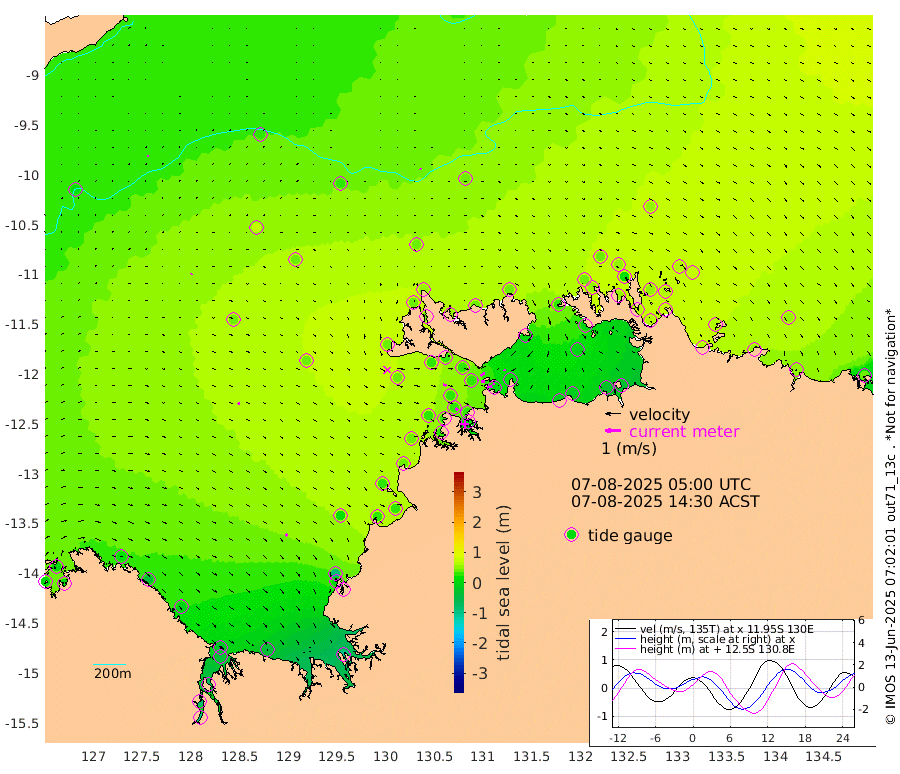 26cm/s 78T +4cm/s rms + 6cm/s 51T. Darwin_C1 52m 15cm/s -72T +4cm/s rms + 7cm/s -161T. Darwin_CW1 22m 7cm/s -115T +4cm/s rms + 8cm/s 61T. Darwin_CW2 34m 12cm/s -156T +3cm/s rms + 9cm/s 98T. Darwin_CW3 22m 27cm/s -92T +5cm/s rms + 7cm/s 88T. Darwin_C3 56m 32cm/s 60T +2cm/s rms + 9cm/s -126T. Darwin_CTbW 22m 6cm/s 142T +9cm/s rms + 2cm/s -110T. NWSLYN 196m 19cm/s 98T +1cm/s rms + 1cm/s -47T. DARBGF 30m 7cm/s 20T +7cm/s rms + 2cm/s -137T. ITFTIS 464m 8cm/s 43T +9cm/s rms + 1cm/s 74T. ITFMHB 146m 15cm/s 128T +4cm/s rms + 1cm/s -134T. ITFJBG 61m 15cm/s 110T +6cm/s rms + 4cm/s 121T. ITFFTB 108m 19cm/s 129T +4cm/s rms + 3cm/s 80T. NRSDAR 19m 8cm Carronade Island 4cm Guy Point 10cm Napier Broome Bay 12cm Lesueur Island -11cm Reveley Island -34cm Rocky Island -44cm Cape Domett -32cm Lacrosse Island -71cm Adolphus Island -88cm Pender Point -90cm Wyndham 37cm The Boxers 71cm Unnamed Shoal 24cm Loxton Shoal -36cm Pelican Island 35cm Calder Shoal 26cm Evans Shoal -100cm Quoin Island -12cm Port Keats -9cm Jones Point -82cm Catfish Island 18cm Cape Scott Offshore 24cm Cape Ford 27cm Anson Bay 41cm Goodrich Bank 24cm Peron Island North 35cm Point Jenny 37cm Native Point 24cm Fish Reef 33cm Tapa Bay 40cm Point Fawcett (Offshore) 23cm Burge Point 23cm Munkunuwa 34cm Beagle A 27cm Parsons Bank 25cm Fenton Patches 36cm Lynedoch Bank 24cm Hancox Shoal Area 25cm Nightcliff 19cm Darwin 25cm Charles Point Patches 7cm Glyde Point -19cm Chambers Bay -21cm Point Stuart 3cm Cape Hotham -11cm Christine Reef -30cm West Alligator Head -43cm East Field Island -2cm Two Hills Bay 42cm Newby Shoal 0cm Camp Point 24cm Medina Inlet South 43cm South Barlow Point 39cm St. Asaph Bay 45cm Cape Van Dieman 50cm Snake Bay 43cm Cache Point 17cm Echo Shoal 39cm Point Jahleel (Off) 32cm Cape Don 44cm Port Essington 46cm Smith Point - West 49cm NW Peacock Island 42cm North Of Jones Shoal 16cm Peacock Island 61cm Point David 52cm D'urville Point 50cm Money Shoal 59cm Copeland Island 70cm Cape Cockburn 54cm One Tree Point 73cm Hogmany Shoal 60cm New Year Island - West 61cm Grant Island 57cm Aurari Bay 55cm Cuthbert Point 57cm North Goulburn Island 52cm Paxie Shoal 50cm Entrance Island 41cm Yabooma Island