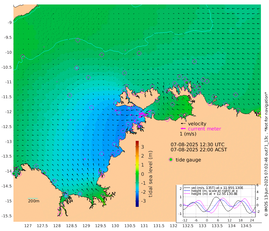 161cm/s -103T +4cm/s rms + 6cm/s 51T. Darwin_C1 52m 102cm/s -89T +4cm/s rms + 7cm/s -161T. Darwin_CW1 22m 78cm/s -108T +4cm/s rms + 8cm/s 61T. Darwin_CW2 34m 68cm/s -129T +3cm/s rms + 9cm/s 98T. Darwin_CW3 22m 93cm/s -90T +5cm/s rms + 7cm/s 88T. Darwin_C3 56m 101cm/s -115T +2cm/s rms + 9cm/s -126T. Darwin_CTbW 22m 7cm/s -61T +9cm/s rms + 2cm/s -110T. NWSLYN 196m 52cm/s -93T +1cm/s rms + 1cm/s -47T. DARBGF 30m 9cm/s -157T +7cm/s rms + 2cm/s -137T. ITFTIS 464m 6cm/s -61T +9cm/s rms + 1cm/s 74T. ITFMHB 146m 23cm/s -29T +4cm/s rms + 1cm/s -134T. ITFJBG 61m 23cm/s -57T +6cm/s rms + 4cm/s 121T. ITFFTB 108m 42cm/s -62T +4cm/s rms + 3cm/s 80T. NRSDAR 19m -44cm Carronade Island -44cm Guy Point -50cm Napier Broome Bay -103cm Lesueur Island -120cm Reveley Island -62cm Rocky Island -135cm Cape Domett -137cm Lacrosse Island -105cm Adolphus Island -45cm Pender Point -27cm Wyndham -112cm The Boxers -126cm Unnamed Shoal -58cm Loxton Shoal -150cm Pelican Island -100cm Calder Shoal -60cm Evans Shoal -88cm Quoin Island -182cm Port Keats -167cm Jones Point -79cm Catfish Island -176cm Cape Scott Offshore -214cm Cape Ford -196cm Anson Bay -80cm Goodrich Bank -174cm Peron Island North -196cm Point Jenny -197cm Native Point -188cm Fish Reef -205cm Tapa Bay -148cm Point Fawcett (Offshore) -201cm Burge Point -178cm Munkunuwa -187cm Beagle A -183cm Parsons Bank -203cm Fenton Patches -63cm Lynedoch Bank -184cm Hancox Shoal Area -204cm Nightcliff -198cm Darwin -202cm Charles Point Patches -135cm Glyde Point -77cm Chambers Bay -56cm Point Stuart -101cm Cape Hotham -81cm Christine Reef -51cm West Alligator Head -29cm East Field Island -75cm Two Hills Bay -168cm Newby Shoal -86cm Camp Point -190cm Medina Inlet South -131cm South Barlow Point -116cm St. Asaph Bay -85cm Cape Van Dieman -88cm Snake Bay -86cm Cache Point -42cm Echo Shoal -84cm Point Jahleel (Off) -94cm Cape Don -82cm Port Essington -86cm Smith Point - West -80cm NW Peacock Island -73cm North Of Jones Shoal -26cm Peacock Island -75cm Point David -84cm D'urville Point -72cm Money Shoal -71cm Copeland Island -92cm Cape Cockburn -74cm One Tree Point -90cm Hogmany Shoal -81cm New Year Island - West -80cm Grant Island -73cm Aurari Bay -73cm Cuthbert Point -75cm North Goulburn Island -71cm Paxie Shoal -62cm Entrance Island -41cm Yabooma Island