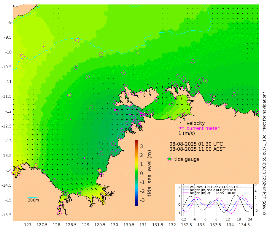 113cm/s -102T +4cm/s rms + 6cm/s 51T. Darwin_C1 52m 70cm/s -88T +4cm/s rms + 7cm/s -161T. Darwin_CW1 22m 51cm/s -110T +4cm/s rms + 8cm/s 61T. Darwin_CW2 34m 40cm/s -127T +3cm/s rms + 9cm/s 98T. Darwin_CW3 22m 40cm/s -92T +5cm/s rms + 7cm/s 88T. Darwin_C3 56m 70cm/s -115T +2cm/s rms + 9cm/s -126T. Darwin_CTbW 22m 4cm/s 119T +9cm/s rms + 2cm/s -110T. NWSLYN 196m 42cm/s -88T +1cm/s rms + 1cm/s -47T. DARBGF 30m 6cm/s 1T +7cm/s rms + 2cm/s -137T. ITFTIS 464m 13cm/s 6T +9cm/s rms + 1cm/s 74T. ITFMHB 146m 32cm/s -23T +4cm/s rms + 1cm/s -134T. ITFJBG 61m 25cm/s -31T +6cm/s rms + 4cm/s 121T. ITFFTB 108m 40cm/s -61T +4cm/s rms + 3cm/s 80T. NRSDAR 19m 114cm Carronade Island 118cm Guy Point 123cm Napier Broome Bay 70cm Lesueur Island 15cm Reveley Island 29cm Rocky Island 15cm Cape Domett 10cm Lacrosse Island 40cm Adolphus Island 114cm Pender Point 139cm Wyndham 34cm The Boxers 10cm Unnamed Shoal 65cm Loxton Shoal -15cm Pelican Island 31cm Calder Shoal 43cm Evans Shoal 50cm Quoin Island -48cm Port Keats -43cm Jones Point 76cm Catfish Island -52cm Cape Scott Offshore -37cm Cape Ford -72cm Anson Bay 26cm Goodrich Bank -53cm Peron Island North -67cm Point Jenny -66cm Native Point -67cm Fish Reef -73cm Tapa Bay -25cm Point Fawcett (Offshore) -74cm Burge Point -81cm Munkunuwa -58cm Beagle A -75cm Parsons Bank -76cm Fenton Patches 37cm Lynedoch Bank -69cm Hancox Shoal Area -89cm Nightcliff -68cm Darwin -58cm Charles Point Patches -24cm Glyde Point 17cm Chambers Bay 29cm Point Stuart -8cm Cape Hotham 13cm Christine Reef 33cm West Alligator Head 55cm East Field Island 15cm Two Hills Bay -7cm Newby Shoal 14cm Camp Point -68cm Medina Inlet South -21cm South Barlow Point -6cm St. Asaph Bay 20cm Cape Van Dieman 19cm Snake Bay 24cm Cache Point 74cm Echo Shoal 16cm Point Jahleel (Off) 5cm Cape Don 16cm Port Essington 9cm Smith Point - West 14cm NW Peacock Island 19cm North Of Jones Shoal 5cm Peacock Island 7cm Point David 8cm D'urville Point 21cm Money Shoal 4cm Copeland Island 8cm Cape Cockburn 11cm One Tree Point 23cm Hogmany Shoal 13cm New Year Island - West 12cm Grant Island -5cm Aurari Bay 5cm Cuthbert Point 5cm North Goulburn Island 6cm Paxie Shoal 4cm Entrance Island -2cm Yabooma Island