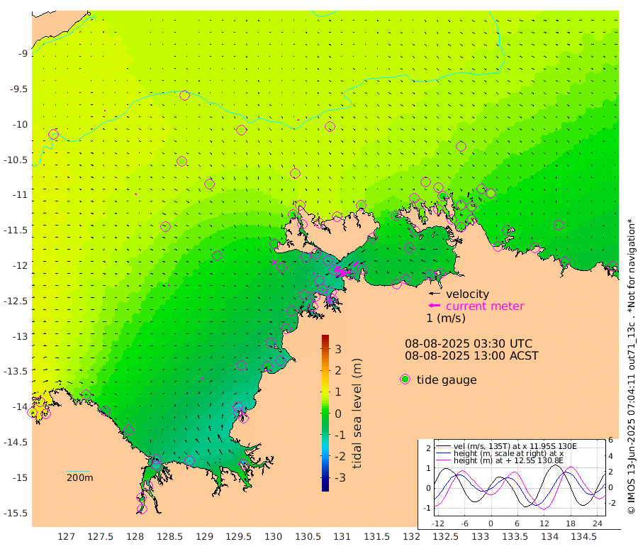 99cm/s -101T +4cm/s rms + 6cm/s 51T. Darwin_C1 52m 92cm/s -91T +4cm/s rms + 7cm/s -161T. Darwin_CW1 22m 47cm/s -107T +4cm/s rms + 8cm/s 61T. Darwin_CW2 34m 57cm/s -136T +3cm/s rms + 9cm/s 98T. Darwin_CW3 22m 70cm/s -92T +5cm/s rms + 7cm/s 88T. Darwin_C3 56m 51cm/s -115T +2cm/s rms + 9cm/s -126T. Darwin_CTbW 22m 9cm/s 146T +9cm/s rms + 2cm/s -110T. NWSLYN 196m 7cm/s -119T +1cm/s rms + 1cm/s -47T. DARBGF 30m 8cm/s 37T +7cm/s rms + 2cm/s -137T. ITFTIS 464m 10cm/s 47T +9cm/s rms + 1cm/s 74T. ITFMHB 146m 12cm/s 23T +4cm/s rms + 1cm/s -134T. ITFJBG 61m 11cm/s 70T +6cm/s rms + 4cm/s 121T. ITFFTB 108m 7cm/s -109T +4cm/s rms + 3cm/s 80T. NRSDAR 19m 89cm Carronade Island 89cm Guy Point 96cm Napier Broome Bay 30cm Lesueur Island -50cm Reveley Island -23cm Rocky Island -106cm Cape Domett -93cm Lacrosse Island -120cm Adolphus Island -77cm Pender Point -64cm Wyndham 52cm The Boxers 53cm Unnamed Shoal 81cm Loxton Shoal -123cm Pelican Island 56cm Calder Shoal 67cm Evans Shoal -162cm Quoin Island -116cm Port Keats -108cm Jones Point -122cm Catfish Island -67cm Cape Scott Offshore -23cm Cape Ford -80cm Anson Bay 61cm Goodrich Bank -57cm Peron Island North -54cm Point Jenny -51cm Native Point -67cm Fish Reef -70cm Tapa Bay 6cm Point Fawcett (Offshore) -83cm Burge Point -73cm Munkunuwa -40cm Beagle A -80cm Parsons Bank -81cm Fenton Patches 63cm Lynedoch Bank -83cm Hancox Shoal Area -99cm Nightcliff -94cm Darwin -72cm Charles Point Patches -66cm Glyde Point -63cm Chambers Bay -58cm Point Stuart -57cm Cape Hotham -52cm Christine Reef -67cm West Alligator Head -66cm East Field Island -40cm Two Hills Bay 13cm Newby Shoal -40cm Camp Point -72cm Medina Inlet South 15cm South Barlow Point 30cm St. Asaph Bay 60cm Cape Van Dieman 59cm Snake Bay 59cm Cache Point 85cm Echo Shoal 42cm Point Jahleel (Off) 10cm Cape Don 42cm Port Essington 40cm Smith Point - West 46cm NW Peacock Island 48cm North Of Jones Shoal 16cm Peacock Island 37cm Point David 42cm D'urville Point 48cm Money Shoal 31cm Copeland Island 39cm Cape Cockburn 35cm One Tree Point 52cm Hogmany Shoal 38cm New Year Island - West 38cm Grant Island 12cm Aurari Bay 12cm Cuthbert Point 21cm North Goulburn Island 2cm Paxie Shoal -6cm Entrance Island -29cm Yabooma Island