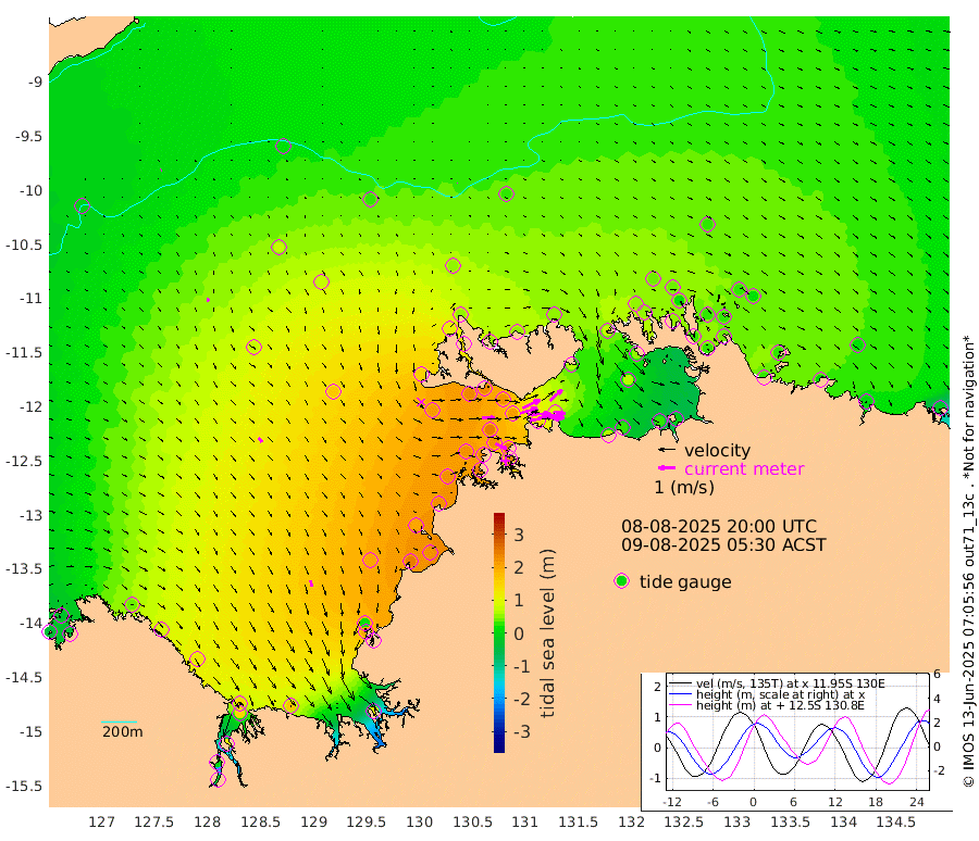 209cm/s 77T +4cm/s rms + 6cm/s 51T. Darwin_C1 52m 150cm/s 91T +4cm/s rms + 7cm/s -161T. Darwin_CW1 22m 103cm/s 74T +4cm/s rms + 8cm/s 61T. Darwin_CW2 34m 98cm/s 48T +3cm/s rms + 9cm/s 98T. Darwin_CW3 22m 136cm/s 89T +5cm/s rms + 7cm/s 88T. Darwin_C3 56m 115cm/s 65T +2cm/s rms + 9cm/s -126T. Darwin_CTbW 22m 2cm/s 65T +9cm/s rms + 2cm/s -110T. NWSLYN 196m 71cm/s 88T +1cm/s rms + 1cm/s -47T. DARBGF 30m 3cm/s 82T +7cm/s rms + 2cm/s -137T. ITFTIS 464m 19cm/s 171T +9cm/s rms + 1cm/s 74T. ITFMHB 146m 38cm/s 163T +4cm/s rms + 1cm/s -134T. ITFJBG 61m 33cm/s 140T +6cm/s rms + 4cm/s 121T. ITFFTB 108m 71cm/s 116T +4cm/s rms + 3cm/s 80T. NRSDAR 19m -34cm Carronade Island -34cm Guy Point -33cm Napier Broome Bay 43cm Lesueur Island 113cm Reveley Island 82cm Rocky Island 144cm Cape Domett 138cm Lacrosse Island 109cm Adolphus Island 9cm Pender Point -31cm Wyndham 75cm The Boxers 77cm Unnamed Shoal 17cm Loxton Shoal 166cm Pelican Island 73cm Calder Shoal 30cm Evans Shoal 90cm Quoin Island 217cm Port Keats 192cm Jones Point 19cm Catfish Island 196cm Cape Scott Offshore 245cm Cape Ford 222cm Anson Bay 48cm Goodrich Bank 196cm Peron Island North 223cm Point Jenny 222cm Native Point 221cm Fish Reef 233cm Tapa Bay 148cm Point Fawcett (Offshore) 242cm Burge Point 227cm Munkunuwa 210cm Beagle A 220cm Parsons Bank 240cm Fenton Patches 27cm Lynedoch Bank 210cm Hancox Shoal Area 244cm Nightcliff 230cm Darwin 224cm Charles Point Patches 136cm Glyde Point 57cm Chambers Bay 27cm Point Stuart 91cm Cape Hotham 65cm Christine Reef 23cm West Alligator Head -11cm East Field Island 52cm Two Hills Bay 159cm Newby Shoal 61cm Camp Point 225cm Medina Inlet South 132cm South Barlow Point 108cm St. Asaph Bay 55cm Cape Van Dieman 55cm Snake Bay 53cm Cache Point -6cm Echo Shoal 55cm Point Jahleel (Off) 70cm Cape Don 48cm Port Essington 55cm Smith Point - West 42cm NW Peacock Island 39cm North Of Jones Shoal 13cm Peacock Island 25cm Point David 48cm D'urville Point 27cm Money Shoal 24cm Copeland Island 36cm Cape Cockburn 29cm One Tree Point 17cm Hogmany Shoal 28cm New Year Island - West 28cm Grant Island 25cm Aurari Bay 19cm Cuthbert Point 26cm North Goulburn Island 12cm Paxie Shoal 7cm Entrance Island -16cm Yabooma Island