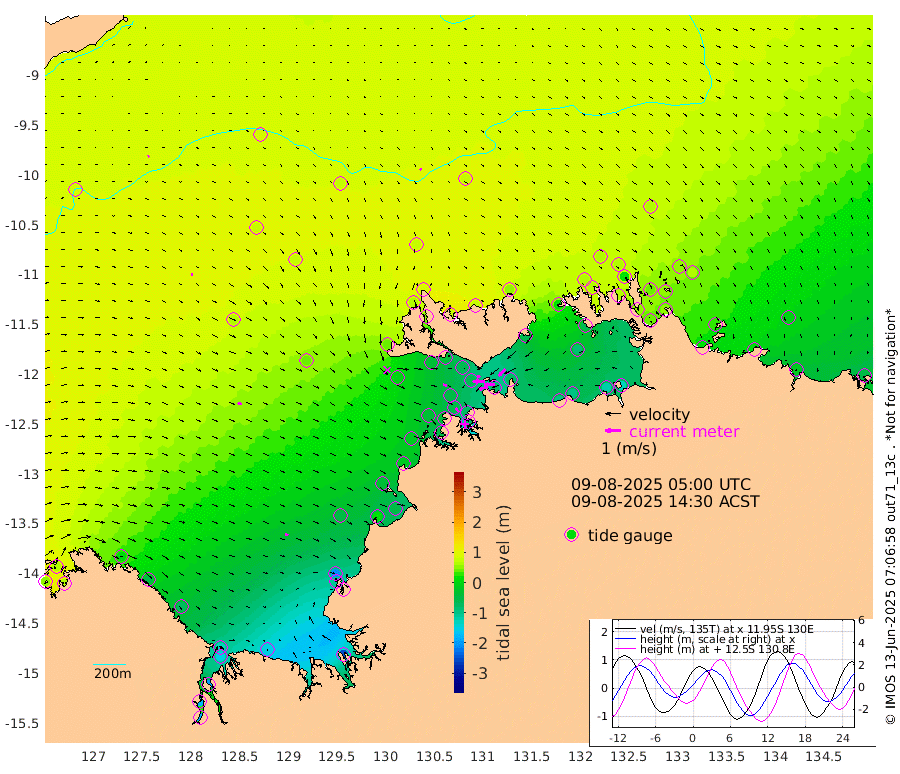 64cm/s -101T +4cm/s rms + 6cm/s 51T. Darwin_C1 52m 67cm/s -92T +4cm/s rms + 7cm/s -161T. Darwin_CW1 22m 37cm/s -107T +4cm/s rms + 8cm/s 61T. Darwin_CW2 34m 60cm/s -137T +3cm/s rms + 9cm/s 98T. Darwin_CW3 22m 71cm/s -91T +5cm/s rms + 7cm/s 88T. Darwin_C3 56m 23cm/s -113T +2cm/s rms + 9cm/s -126T. Darwin_CTbW 22m 13cm/s 150T +9cm/s rms + 2cm/s -110T. NWSLYN 196m 24cm/s 105T +1cm/s rms + 1cm/s -47T. DARBGF 30m 10cm/s 46T +7cm/s rms + 2cm/s -137T. ITFTIS 464m 11cm/s 82T +9cm/s rms + 1cm/s 74T. ITFMHB 146m 19cm/s 108T +4cm/s rms + 1cm/s -134T. ITFJBG 61m 27cm/s 109T +6cm/s rms + 4cm/s 121T. ITFFTB 108m 28cm/s 138T +4cm/s rms + 3cm/s 80T. NRSDAR 19m 58cm Carronade Island 56cm Guy Point 62cm Napier Broome Bay 4cm Lesueur Island -76cm Reveley Island -47cm Rocky Island -152cm Cape Domett -131cm Lacrosse Island -192cm Adolphus Island -180cm Pender Point -181cm Wyndham 64cm The Boxers 75cm Unnamed Shoal 82cm Loxton Shoal -156cm Pelican Island 69cm Calder Shoal 76cm Evans Shoal -258cm Quoin Island -120cm Port Keats -112cm Jones Point -208cm Catfish Island -49cm Cape Scott Offshore 21cm Cape Ford -54cm Anson Bay 79cm Goodrich Bank -34cm Peron Island North -20cm Point Jenny -17cm Native Point -35cm Fish Reef -38cm Tapa Bay 39cm Point Fawcett (Offshore) -56cm Burge Point -40cm Munkunuwa -5cm Beagle A -57cm Parsons Bank -52cm Fenton Patches 72cm Lynedoch Bank -65cm Hancox Shoal Area -74cm Nightcliff -77cm Darwin -48cm Charles Point Patches -71cm Glyde Point -99cm Chambers Bay -100cm Point Stuart -72cm Cape Hotham -82cm Christine Reef -118cm West Alligator Head -131cm East Field Island -65cm Two Hills Bay 34cm Newby Shoal -62cm Camp Point -43cm Medina Inlet South 46cm South Barlow Point 59cm St. Asaph Bay 81cm Cape Van Dieman 78cm Snake Bay 77cm Cache Point 81cm Echo Shoal 55cm Point Jahleel (Off) 16cm Cape Don 56cm Port Essington 57cm Smith Point - West 60cm NW Peacock Island 62cm North Of Jones Shoal 21cm Peacock Island 47cm Point David 58cm D'urville Point 60cm Money Shoal 42cm Copeland Island 50cm Cape Cockburn 44cm One Tree Point 59cm Hogmany Shoal 47cm New Year Island - West 45cm Grant Island 19cm Aurari Bay 12cm Cuthbert Point 26cm North Goulburn Island -3cm Paxie Shoal -18cm Entrance Island -49cm Yabooma Island