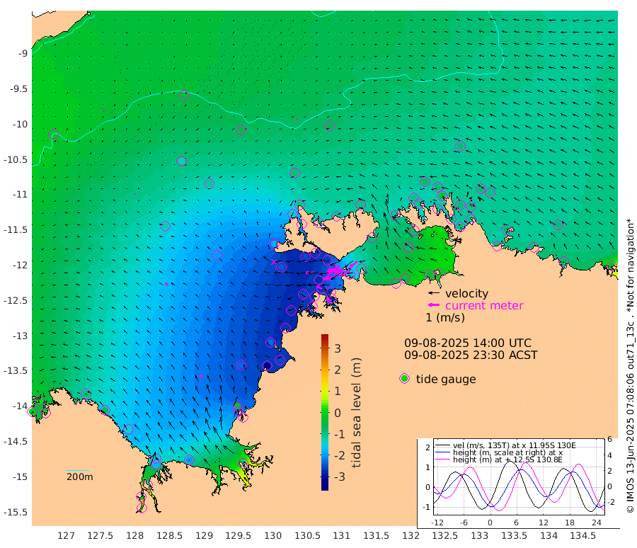 207cm/s -103T +4cm/s rms + 6cm/s 51T. Darwin_C1 52m 145cm/s -89T +4cm/s rms + 7cm/s -161T. Darwin_CW1 22m 115cm/s -108T +4cm/s rms + 8cm/s 61T. Darwin_CW2 34m 89cm/s -129T +3cm/s rms + 9cm/s 98T. Darwin_CW3 22m 143cm/s -91T +5cm/s rms + 7cm/s 88T. Darwin_C3 56m 121cm/s -115T +2cm/s rms + 9cm/s -126T. Darwin_CTbW 22m 8cm/s -58T +9cm/s rms + 2cm/s -110T. NWSLYN 196m 71cm/s -93T +1cm/s rms + 1cm/s -47T. DARBGF 30m 10cm/s -161T +7cm/s rms + 2cm/s -137T. ITFTIS 464m 6cm/s -51T +9cm/s rms + 1cm/s 74T. ITFMHB 146m 35cm/s -24T +4cm/s rms + 1cm/s -134T. ITFJBG 61m 27cm/s -52T +6cm/s rms + 4cm/s 121T. ITFFTB 108m 58cm/s -63T +4cm/s rms + 3cm/s 80T. NRSDAR 19m 10cm Carronade Island 11cm Guy Point 5cm Napier Broome Bay -81cm Lesueur Island -141cm Reveley Island -73cm Rocky Island -170cm Cape Domett -161cm Lacrosse Island -126cm Adolphus Island -32cm Pender Point 10cm Wyndham -116cm The Boxers -135cm Unnamed Shoal -45cm Loxton Shoal -195cm Pelican Island -104cm Calder Shoal -56cm Evans Shoal -102cm Quoin Island -250cm Port Keats -231cm Jones Point -33cm Catfish Island -227cm Cape Scott Offshore -316cm Cape Ford -259cm Anson Bay -86cm Goodrich Bank -232cm Peron Island North -259cm Point Jenny -261cm Native Point -255cm Fish Reef -274cm Tapa Bay -183cm Point Fawcett (Offshore) -280cm Burge Point -255cm Munkunuwa -242cm Beagle A -260cm Parsons Bank -274cm Fenton Patches -62cm Lynedoch Bank -250cm Hancox Shoal Area -273cm Nightcliff -277cm Darwin -276cm Charles Point Patches -173cm Glyde Point -81cm Chambers Bay -53cm Point Stuart -123cm Cape Hotham -87cm Christine Reef -44cm West Alligator Head -7cm East Field Island -81cm Two Hills Bay -198cm Newby Shoal -97cm Camp Point -262cm Medina Inlet South -168cm South Barlow Point -139cm St. Asaph Bay -94cm Cape Van Dieman -97cm Snake Bay -92cm Cache Point -13cm Echo Shoal -92cm Point Jahleel (Off) -111cm Cape Don -95cm Port Essington -97cm Smith Point - West -89cm NW Peacock Island -77cm North Of Jones Shoal -28cm Peacock Island -86cm Point David -96cm D'urville Point -80cm Money Shoal -82cm Copeland Island -107cm Cape Cockburn -85cm One Tree Point -100cm Hogmany Shoal -89cm New Year Island - West -90cm Grant Island -82cm Aurari Bay -86cm Cuthbert Point -89cm North Goulburn Island -83cm Paxie Shoal -76cm Entrance Island -52cm Yabooma Island