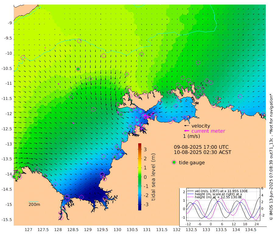 93cm/s -101T +4cm/s rms + 6cm/s 51T. Darwin_C1 52m 85cm/s -94T +4cm/s rms + 7cm/s -161T. Darwin_CW1 22m 49cm/s -105T +4cm/s rms + 8cm/s 61T. Darwin_CW2 34m 83cm/s -139T +3cm/s rms + 9cm/s 98T. Darwin_CW3 22m 103cm/s -90T +5cm/s rms + 7cm/s 88T. Darwin_C3 56m 40cm/s -116T +2cm/s rms + 9cm/s -126T. Darwin_CTbW 22m 6cm/s -162T +9cm/s rms + 2cm/s -110T. NWSLYN 196m 35cm/s 105T +1cm/s rms + 1cm/s -47T. DARBGF 30m 13cm/s 127T +7cm/s rms + 2cm/s -137T. ITFTIS 464m 25cm/s 156T +9cm/s rms + 1cm/s 74T. ITFMHB 146m 32cm/s 128T +4cm/s rms + 1cm/s -134T. ITFJBG 61m 45cm/s 128T +6cm/s rms + 4cm/s 121T. ITFFTB 108m 45cm/s 134T +4cm/s rms + 3cm/s 80T. NRSDAR 19m 15cm Carronade Island 10cm Guy Point 13cm Napier Broome Bay -81cm Lesueur Island -169cm Reveley Island -56cm Rocky Island -277cm Cape Domett -243cm Lacrosse Island -323cm Adolphus Island -322cm Pender Point -329cm Wyndham 11cm The Boxers 1cm Unnamed Shoal 62cm Loxton Shoal -289cm Pelican Island 41cm Calder Shoal 59cm Evans Shoal -411cm Quoin Island -235cm Port Keats -232cm Jones Point -370cm Catfish Island -132cm Cape Scott Offshore -79cm Cape Ford -147cm Anson Bay 44cm Goodrich Bank -111cm Peron Island North -97cm Point Jenny -96cm Native Point -109cm Fish Reef -131cm Tapa Bay -9cm Point Fawcett (Offshore) -146cm Burge Point -99cm Munkunuwa -64cm Beagle A -149cm Parsons Bank -135cm Fenton Patches 38cm Lynedoch Bank -167cm Hancox Shoal Area -160cm Nightcliff -190cm Darwin -161cm Charles Point Patches -174cm Glyde Point -202cm Chambers Bay -204cm Point Stuart -166cm Cape Hotham -174cm Christine Reef -223cm West Alligator Head -241cm East Field Island -155cm Two Hills Bay -27cm Newby Shoal -165cm Camp Point -125cm Medina Inlet South 4cm South Barlow Point 27cm St. Asaph Bay 46cm Cape Van Dieman 37cm Snake Bay 37cm Cache Point 72cm Echo Shoal 11cm Point Jahleel (Off) -55cm Cape Don -5cm Port Essington 3cm Smith Point - West -2cm NW Peacock Island 17cm North Of Jones Shoal 3cm Peacock Island -45cm Point David -5cm D'urville Point -13cm Money Shoal -49cm Copeland Island -57cm Cape Cockburn -39cm One Tree Point -71cm Hogmany Shoal -46cm New Year Island - West -50cm Grant Island -80cm Aurari Bay -110cm Cuthbert Point -79cm North Goulburn Island -140cm Paxie Shoal -157cm Entrance Island -202cm Yabooma Island