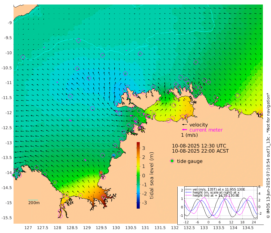 46cm/s -105T +4cm/s rms + 6cm/s 51T. Darwin_C1 52m 24cm/s -83T +4cm/s rms + 7cm/s -161T. Darwin_CW1 22m 21cm/s -103T +4cm/s rms + 8cm/s 61T. Darwin_CW2 34m 9cm/s -1T +3cm/s rms + 9cm/s 98T. Darwin_CW3 22m 13cm/s -97T +5cm/s rms + 7cm/s 88T. Darwin_C3 56m 32cm/s -117T +2cm/s rms + 9cm/s -126T. Darwin_CTbW 22m 12cm/s -31T +9cm/s rms + 2cm/s -110T. NWSLYN 196m 72cm/s -87T +1cm/s rms + 1cm/s -47T. DARBGF 30m 14cm/s -117T +7cm/s rms + 2cm/s -137T. ITFTIS 464m 23cm/s -42T +9cm/s rms + 1cm/s 74T. ITFMHB 146m 44cm/s -38T +4cm/s rms + 1cm/s -134T. ITFJBG 61m 54cm/s -57T +6cm/s rms + 4cm/s 121T. ITFFTB 108m 82cm/s -55T +4cm/s rms + 3cm/s 80T. NRSDAR 19m -47cm Carronade Island -42cm Guy Point -57cm Napier Broome Bay -20cm Lesueur Island 28cm Reveley Island -27cm Rocky Island 96cm Cape Domett 78cm Lacrosse Island 168cm Adolphus Island 214cm Pender Point 248cm Wyndham -124cm The Boxers -121cm Unnamed Shoal -121cm Loxton Shoal 99cm Pelican Island -138cm Calder Shoal -117cm Evans Shoal 260cm Quoin Island 14cm Port Keats 25cm Jones Point 264cm Catfish Island -58cm Cape Scott Offshore -183cm Cape Ford -64cm Anson Bay -122cm Goodrich Bank -78cm Peron Island North -110cm Point Jenny -112cm Native Point -96cm Fish Reef -89cm Tapa Bay -141cm Point Fawcett (Offshore) -83cm Burge Point -100cm Munkunuwa -126cm Beagle A -60cm Parsons Bank -83cm Fenton Patches -103cm Lynedoch Bank -36cm Hancox Shoal Area -55cm Nightcliff -43cm Darwin -73cm Charles Point Patches 17cm Glyde Point 107cm Chambers Bay 129cm Point Stuart 49cm Cape Hotham 81cm Christine Reef 152cm West Alligator Head 191cm East Field Island 67cm Two Hills Bay -144cm Newby Shoal 59cm Camp Point -89cm Medina Inlet South -140cm South Barlow Point -141cm St. Asaph Bay -129cm Cape Van Dieman -124cm Snake Bay -120cm Cache Point -105cm Echo Shoal -93cm Point Jahleel (Off) -48cm Cape Don -83cm Port Essington -87cm Smith Point - West -78cm NW Peacock Island -89cm North Of Jones Shoal -29cm Peacock Island -34cm Point David -78cm D'urville Point -65cm Money Shoal -25cm Copeland Island -40cm Cape Cockburn -41cm One Tree Point -26cm Hogmany Shoal -38cm New Year Island - West -34cm Grant Island 7cm Aurari Bay 26cm Cuthbert Point -5cm North Goulburn Island 51cm Paxie Shoal 79cm Entrance Island 142cm Yabooma Island