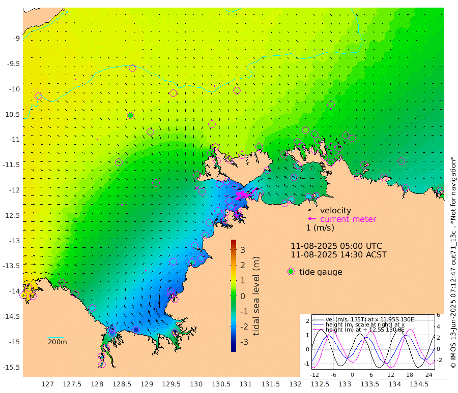 171cm/s -101T +4cm/s rms + 6cm/s 51T. Darwin_C1 52m 132cm/s -91T +4cm/s rms + 7cm/s -161T. Darwin_CW1 22m 87cm/s -107T +4cm/s rms + 8cm/s 61T. Darwin_CW2 34m 92cm/s -136T +3cm/s rms + 9cm/s 98T. Darwin_CW3 22m 139cm/s -91T +5cm/s rms + 7cm/s 88T. Darwin_C3 56m 91cm/s -115T +2cm/s rms + 9cm/s -126T. Darwin_CTbW 22m 13cm/s 158T +9cm/s rms + 2cm/s -110T. NWSLYN 196m 11cm/s -125T +1cm/s rms + 1cm/s -47T. DARBGF 30m 10cm/s 62T +7cm/s rms + 2cm/s -137T. ITFTIS 464m 12cm/s 83T +9cm/s rms + 1cm/s 74T. ITFMHB 146m 16cm/s 49T +4cm/s rms + 1cm/s -134T. ITFJBG 61m 22cm/s 94T +6cm/s rms + 4cm/s 121T. ITFFTB 108m 11cm/s -135T +4cm/s rms + 3cm/s 80T. NRSDAR 19m 109cm Carronade Island 108cm Guy Point 119cm Napier Broome Bay -13cm Lesueur Island -142cm Reveley Island -57cm Rocky Island -234cm Cape Domett -209cm Lacrosse Island -257cm Adolphus Island -182cm Pender Point -162cm Wyndham 41cm The Boxers 19cm Unnamed Shoal 100cm Loxton Shoal -262cm Pelican Island 51cm Calder Shoal 79cm Evans Shoal -312cm Quoin Island -244cm Port Keats -235cm Jones Point -203cm Catfish Island -154cm Cape Scott Offshore -121cm Cape Ford -177cm Anson Bay 59cm Goodrich Bank -147cm Peron Island North -139cm Point Jenny -137cm Native Point -154cm Fish Reef -172cm Tapa Bay -29cm Point Fawcett (Offshore) -192cm Burge Point -165cm Munkunuwa -112cm Beagle A -195cm Parsons Bank -187cm Fenton Patches 65cm Lynedoch Bank -199cm Hancox Shoal Area -214cm Nightcliff -218cm Darwin -178cm Charles Point Patches -164cm Glyde Point -148cm Chambers Bay -142cm Point Stuart -146cm Cape Hotham -132cm Christine Reef -157cm West Alligator Head -151cm East Field Island -116cm Two Hills Bay -36cm Newby Shoal -115cm Camp Point -167cm Medina Inlet South -19cm South Barlow Point 14cm St. Asaph Bay 56cm Cape Van Dieman 47cm Snake Bay 52cm Cache Point 118cm Echo Shoal 22cm Point Jahleel (Off) -33cm Cape Don 19cm Port Essington 15cm Smith Point - West 18cm NW Peacock Island 37cm North Of Jones Shoal 11cm Peacock Island -11cm Point David 11cm D'urville Point 26cm Money Shoal -17cm Copeland Island -21cm Cape Cockburn -5cm One Tree Point -12cm Hogmany Shoal -8cm New Year Island - West -14cm Grant Island -46cm Aurari Bay -57cm Cuthbert Point -38cm North Goulburn Island -69cm Paxie Shoal -97cm Entrance Island -128cm Yabooma Island