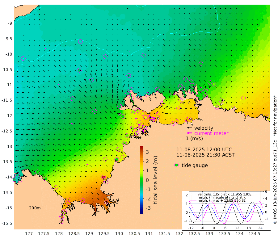 84cm/s 80T +4cm/s rms + 6cm/s 51T. Darwin_C1 52m 59cm/s 92T +4cm/s rms + 7cm/s -161T. Darwin_CW1 22m 52cm/s 68T +4cm/s rms + 8cm/s 61T. Darwin_CW2 34m 69cm/s 43T +3cm/s rms + 9cm/s 98T. Darwin_CW3 22m 88cm/s 89T +5cm/s rms + 7cm/s 88T. Darwin_C3 56m 36cm/s 65T +2cm/s rms + 9cm/s -126T. Darwin_CTbW 22m 10cm/s -21T +9cm/s rms + 2cm/s -110T. NWSLYN 196m 44cm/s -80T +1cm/s rms + 1cm/s -47T. DARBGF 30m 14cm/s -103T +7cm/s rms + 2cm/s -137T. ITFTIS 464m 22cm/s -49T +9cm/s rms + 1cm/s 74T. ITFMHB 146m 31cm/s -55T +4cm/s rms + 1cm/s -134T. ITFJBG 61m 48cm/s -61T +6cm/s rms + 4cm/s 121T. ITFFTB 108m 62cm/s -52T +4cm/s rms + 3cm/s 80T. NRSDAR 19m -81cm Carronade Island -74cm Guy Point -92cm Napier Broome Bay 12cm Lesueur Island 119cm Reveley Island 7cm Rocky Island 219cm Cape Domett 189cm Lacrosse Island 277cm Adolphus Island 262cm Pender Point 273cm Wyndham -85cm The Boxers -69cm Unnamed Shoal -127cm Loxton Shoal 243cm Pelican Island -108cm Calder Shoal -110cm Evans Shoal 366cm Quoin Island 176cm Port Keats 178cm Jones Point 316cm Catfish Island 75cm Cape Scott Offshore -7cm Cape Ford 88cm Anson Bay -97cm Goodrich Bank 57cm Peron Island North 37cm Point Jenny 35cm Native Point 49cm Fish Reef 72cm Tapa Bay -54cm Point Fawcett (Offshore) 83cm Burge Point 49cm Munkunuwa 3cm Beagle A 101cm Parsons Bank 78cm Fenton Patches -90cm Lynedoch Bank 122cm Hancox Shoal Area 112cm Nightcliff 128cm Darwin 90cm Charles Point Patches 131cm Glyde Point 177cm Chambers Bay 185cm Point Stuart 137cm Cape Hotham 152cm Christine Reef 208cm West Alligator Head 227cm East Field Island 131cm Two Hills Bay -52cm Newby Shoal 129cm Camp Point 62cm Medina Inlet South -62cm South Barlow Point -84cm St. Asaph Bay -99cm Cape Van Dieman -91cm Snake Bay -89cm Cache Point -132cm Echo Shoal -55cm Point Jahleel (Off) 12cm Cape Don -39cm Port Essington -41cm Smith Point - West -35cm NW Peacock Island -60cm North Of Jones Shoal -17cm Peacock Island 18cm Point David -30cm D'urville Point -28cm Money Shoal 27cm Copeland Island 25cm Cape Cockburn 7cm One Tree Point 39cm Hogmany Shoal 12cm New Year Island - West 21cm Grant Island 64cm Aurari Bay 93cm Cuthbert Point 56cm North Goulburn Island 118cm Paxie Shoal 153cm Entrance Island 215cm Yabooma Island