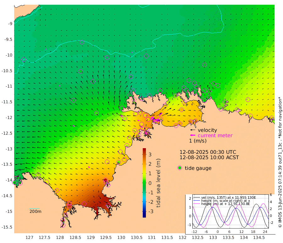 112cm/s 79T +4cm/s rms + 6cm/s 51T. Darwin_C1 52m 87cm/s 92T +4cm/s rms + 7cm/s -161T. Darwin_CW1 22m 79cm/s 70T +4cm/s rms + 8cm/s 61T. Darwin_CW2 34m 84cm/s 46T +3cm/s rms + 9cm/s 98T. Darwin_CW3 22m 137cm/s 90T +5cm/s rms + 7cm/s 88T. Darwin_C3 56m 54cm/s 66T +2cm/s rms + 9cm/s -126T. Darwin_CTbW 22m 12cm/s -19T +9cm/s rms + 2cm/s -110T. NWSLYN 196m 37cm/s -72T +1cm/s rms + 1cm/s -47T. DARBGF 30m 10cm/s -91T +7cm/s rms + 2cm/s -137T. ITFTIS 464m 18cm/s -48T +9cm/s rms + 1cm/s 74T. ITFMHB 146m 34cm/s -52T +4cm/s rms + 1cm/s -134T. ITFJBG 61m 46cm/s -59T +6cm/s rms + 4cm/s 121T. ITFFTB 108m 57cm/s -48T +4cm/s rms + 3cm/s 80T. NRSDAR 19m -3cm Carronade Island 2cm Guy Point 7cm Napier Broome Bay 77cm Lesueur Island 185cm Reveley Island 121cm Rocky Island 305cm Cape Domett 265cm Lacrosse Island 358cm Adolphus Island 366cm Pender Point 373cm Wyndham -23cm The Boxers -29cm Unnamed Shoal -69cm Loxton Shoal 298cm Pelican Island -46cm Calder Shoal -70cm Evans Shoal 449cm Quoin Island 244cm Port Keats 229cm Jones Point 376cm Catfish Island 127cm Cape Scott Offshore 42cm Cape Ford 137cm Anson Bay -66cm Goodrich Bank 104cm Peron Island North 92cm Point Jenny 90cm Native Point 104cm Fish Reef 121cm Tapa Bay -8cm Point Fawcett (Offshore) 149cm Burge Point 104cm Munkunuwa 62cm Beagle A 147cm Parsons Bank 137cm Fenton Patches -58cm Lynedoch Bank 159cm Hancox Shoal Area 165cm Nightcliff 182cm Darwin 140cm Charles Point Patches 169cm Glyde Point 206cm Chambers Bay 209cm Point Stuart 162cm Cape Hotham 186cm Christine Reef 235cm West Alligator Head 254cm East Field Island 156cm Two Hills Bay 30cm Newby Shoal 157cm Camp Point 122cm Medina Inlet South -18cm South Barlow Point -44cm St. Asaph Bay -70cm Cape Van Dieman -61cm Snake Bay -61cm Cache Point -79cm Echo Shoal -31cm Point Jahleel (Off) 37cm Cape Don -27cm Port Essington -30cm Smith Point - West -30cm NW Peacock Island -44cm North Of Jones Shoal -14cm Peacock Island -2cm Point David -28cm D'urville Point -27cm Money Shoal 2cm Copeland Island 8cm Cape Cockburn -1cm One Tree Point 6cm Hogmany Shoal 3cm New Year Island - West 8cm Grant Island 33cm Aurari Bay 62cm Cuthbert Point 33cm North Goulburn Island 87cm Paxie Shoal 111cm Entrance Island 148cm Yabooma Island
