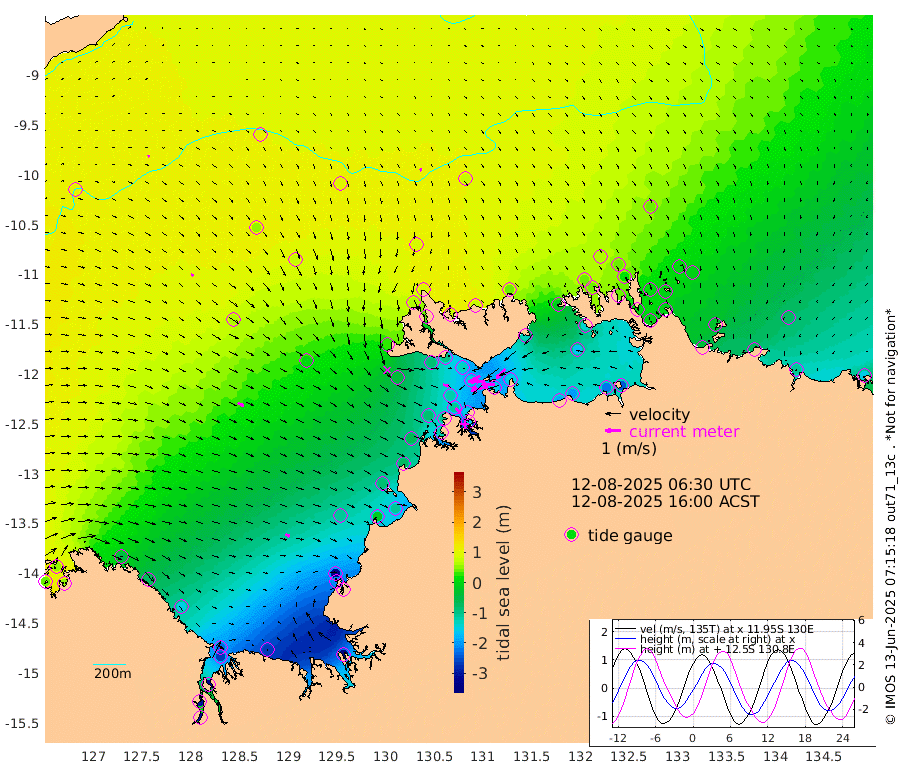 110cm/s -100T +4cm/s rms + 6cm/s 51T. Darwin_C1 52m 86cm/s -92T +4cm/s rms + 7cm/s -161T. Darwin_CW1 22m 53cm/s -106T +4cm/s rms + 8cm/s 61T. Darwin_CW2 34m 84cm/s -138T +3cm/s rms + 9cm/s 98T. Darwin_CW3 22m 108cm/s -91T +5cm/s rms + 7cm/s 88T. Darwin_C3 56m 52cm/s -116T +2cm/s rms + 9cm/s -126T. Darwin_CTbW 22m 17cm/s 157T +9cm/s rms + 2cm/s -110T. NWSLYN 196m 36cm/s 104T +1cm/s rms + 1cm/s -47T. DARBGF 30m 13cm/s 66T +7cm/s rms + 2cm/s -137T. ITFTIS 464m 16cm/s 114T +9cm/s rms + 1cm/s 74T. ITFMHB 146m 31cm/s 117T +4cm/s rms + 1cm/s -134T. ITFJBG 61m 43cm/s 115T +6cm/s rms + 4cm/s 121T. ITFFTB 108m 45cm/s 136T +4cm/s rms + 3cm/s 80T. NRSDAR 19m 48cm Carronade Island 45cm Guy Point 53cm Napier Broome Bay -46cm Lesueur Island -153cm Reveley Island -75cm Rocky Island -260cm Cape Domett -230cm Lacrosse Island -316cm Adolphus Island -296cm Pender Point -304cm Wyndham 59cm The Boxers 50cm Unnamed Shoal 102cm Loxton Shoal -268cm Pelican Island 75cm Calder Shoal 93cm Evans Shoal -398cm Quoin Island -210cm Port Keats -203cm Jones Point -324cm Catfish Island -103cm Cape Scott Offshore -19cm Cape Ford -112cm Anson Bay 84cm Goodrich Bank -86cm Peron Island North -68cm Point Jenny -66cm Native Point -83cm Fish Reef -99cm Tapa Bay 30cm Point Fawcett (Offshore) -121cm Burge Point -83cm Munkunuwa -43cm Beagle A -127cm Parsons Bank -118cm Fenton Patches 79cm Lynedoch Bank -142cm Hancox Shoal Area -147cm Nightcliff -155cm Darwin -111cm Charles Point Patches -149cm Glyde Point -186cm Chambers Bay -193cm Point Stuart -150cm Cape Hotham -166cm Christine Reef -219cm West Alligator Head -236cm East Field Island -141cm Two Hills Bay 5cm Newby Shoal -135cm Camp Point -95cm Medina Inlet South 38cm South Barlow Point 62cm St. Asaph Bay 87cm Cape Van Dieman 78cm Snake Bay 78cm Cache Point 107cm Echo Shoal 44cm Point Jahleel (Off) -18cm Cape Don 41cm Port Essington 39cm Smith Point - West 38cm NW Peacock Island 57cm North Of Jones Shoal 18cm Peacock Island 4cm Point David 35cm D'urville Point 40cm Money Shoal -3cm Copeland Island -4cm Cape Cockburn 9cm One Tree Point -4cm Hogmany Shoal 3cm New Year Island - West -3cm Grant Island -39cm Aurari Bay -60cm Cuthbert Point -30cm North Goulburn Island -77cm Paxie Shoal -112cm Entrance Island -157cm Yabooma Island