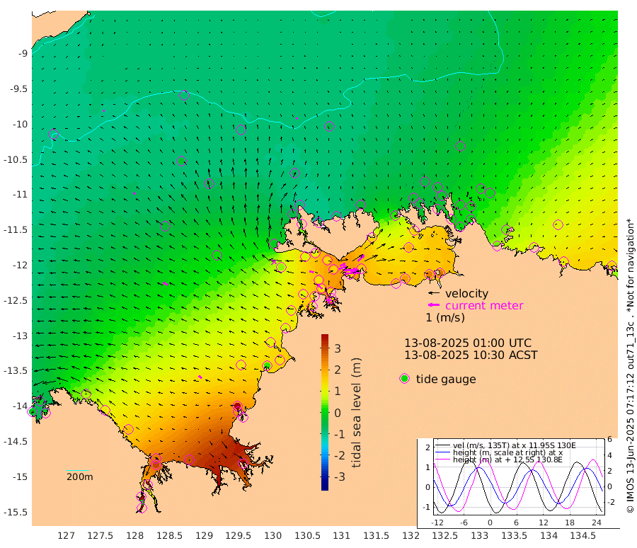 109cm/s 79T +4cm/s rms + 6cm/s 51T. Darwin_C1 52m 81cm/s 92T +4cm/s rms + 7cm/s -161T. Darwin_CW1 22m 75cm/s 70T +4cm/s rms + 8cm/s 61T. Darwin_CW2 34m 82cm/s 46T +3cm/s rms + 9cm/s 98T. Darwin_CW3 22m 134cm/s 90T +5cm/s rms + 7cm/s 88T. Darwin_C3 56m 52cm/s 65T +2cm/s rms + 9cm/s -126T. Darwin_CTbW 22m 14cm/s -23T +9cm/s rms + 2cm/s -110T. NWSLYN 196m 40cm/s -74T +1cm/s rms + 1cm/s -47T. DARBGF 30m 11cm/s -95T +7cm/s rms + 2cm/s -137T. ITFTIS 464m 20cm/s -48T +9cm/s rms + 1cm/s 74T. ITFMHB 146m 35cm/s -53T +4cm/s rms + 1cm/s -134T. ITFJBG 61m 49cm/s -60T +6cm/s rms + 4cm/s 121T. ITFFTB 108m 60cm/s -48T +4cm/s rms + 3cm/s 80T. NRSDAR 19m -16cm Carronade Island -13cm Guy Point -7cm Napier Broome Bay 64cm Lesueur Island 177cm Reveley Island 114cm Rocky Island 293cm Cape Domett 253cm Lacrosse Island 345cm Adolphus Island 353cm Pender Point 361cm Wyndham -37cm The Boxers -33cm Unnamed Shoal -84cm Loxton Shoal 287cm Pelican Island -60cm Calder Shoal -83cm Evans Shoal 434cm Quoin Island 231cm Port Keats 220cm Jones Point 363cm Catfish Island 114cm Cape Scott Offshore 26cm Cape Ford 124cm Anson Bay -76cm Goodrich Bank 94cm Peron Island North 81cm Point Jenny 80cm Native Point 93cm Fish Reef 110cm Tapa Bay -21cm Point Fawcett (Offshore) 139cm Burge Point 95cm Munkunuwa 50cm Beagle A 141cm Parsons Bank 127cm Fenton Patches -67cm Lynedoch Bank 151cm Hancox Shoal Area 155cm Nightcliff 171cm Darwin 126cm Charles Point Patches 164cm Glyde Point 203cm Chambers Bay 211cm Point Stuart 160cm Cape Hotham 184cm Christine Reef 238cm West Alligator Head 256cm East Field Island 156cm Two Hills Bay 17cm Newby Shoal 153cm Camp Point 110cm Medina Inlet South -29cm South Barlow Point -56cm St. Asaph Bay -79cm Cape Van Dieman -69cm Snake Bay -71cm Cache Point -95cm Echo Shoal -38cm Point Jahleel (Off) 33cm Cape Don -32cm Port Essington -35cm Smith Point - West -34cm NW Peacock Island -52cm North Of Jones Shoal -16cm Peacock Island 1cm Point David -31cm D'urville Point -31cm Money Shoal 6cm Copeland Island 11cm Cape Cockburn -1cm One Tree Point 11cm Hogmany Shoal 4cm New Year Island - West 10cm Grant Island 39cm Aurari Bay 69cm Cuthbert Point 37cm North Goulburn Island 94cm Paxie Shoal 123cm Entrance Island 163cm Yabooma Island