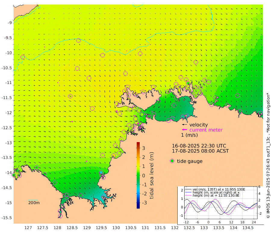 10cm/s 83T +4cm/s rms + 6cm/s 51T. Darwin_C1 52m 5cm/s 67T +4cm/s rms + 7cm/s -161T. Darwin_CW1 22m 17cm/s 78T +4cm/s rms + 8cm/s 61T. Darwin_CW2 34m 15cm/s -142T +3cm/s rms + 9cm/s 98T. Darwin_CW3 22m 10cm/s 83T +5cm/s rms + 7cm/s 88T. Darwin_C3 56m 11cm/s 60T +2cm/s rms + 9cm/s -126T. Darwin_CTbW 22m 7cm/s 123T +9cm/s rms + 2cm/s -110T. NWSLYN 196m 44cm/s 93T +1cm/s rms + 1cm/s -47T. DARBGF 30m 10cm/s 43T +7cm/s rms + 2cm/s -137T. ITFTIS 464m 10cm/s 90T +9cm/s rms + 1cm/s 74T. ITFMHB 146m 24cm/s 138T +4cm/s rms + 1cm/s -134T. ITFJBG 61m 27cm/s 113T +6cm/s rms + 4cm/s 121T. ITFFTB 108m 45cm/s 125T +4cm/s rms + 3cm/s 80T. NRSDAR 19m 11cm Carronade Island 8cm Guy Point 11cm Napier Broome Bay 33cm Lesueur Island -5cm Reveley Island 3cm Rocky Island -32cm Cape Domett -24cm Lacrosse Island -59cm Adolphus Island -113cm Pender Point -135cm Wyndham 93cm The Boxers 98cm Unnamed Shoal 97cm Loxton Shoal -28cm Pelican Island 104cm Calder Shoal 92cm Evans Shoal -108cm Quoin Island 22cm Port Keats 15cm Jones Point -154cm Catfish Island 56cm Cape Scott Offshore 144cm Cape Ford 63cm Anson Bay 101cm Goodrich Bank 76cm Peron Island North 73cm Point Jenny 76cm Native Point 78cm Fish Reef 72cm Tapa Bay 105cm Point Fawcett (Offshore) 68cm Burge Point 75cm Munkunuwa 90cm Beagle A 60cm Parsons Bank 69cm Fenton Patches 91cm Lynedoch Bank 46cm Hancox Shoal Area 52cm Nightcliff 64cm Darwin 85cm Charles Point Patches 11cm Glyde Point -56cm Chambers Bay -74cm Point Stuart -11cm Cape Hotham -52cm Christine Reef -92cm West Alligator Head -115cm East Field Island -29cm Two Hills Bay 102cm Newby Shoal -20cm Camp Point 80cm Medina Inlet South 112cm South Barlow Point 109cm St. Asaph Bay 103cm Cape Van Dieman 108cm Snake Bay 97cm Cache Point 85cm Echo Shoal 81cm Point Jahleel (Off) 48cm Cape Don 80cm Port Essington 79cm Smith Point - West 76cm NW Peacock Island 85cm North Of Jones Shoal 29cm Peacock Island 54cm Point David 77cm D'urville Point 73cm Money Shoal 48cm Copeland Island 65cm Cape Cockburn 59cm One Tree Point 52cm Hogmany Shoal 58cm New Year Island - West 53cm Grant Island 30cm Aurari Bay 11cm Cuthbert Point 36cm North Goulburn Island -7cm Paxie Shoal -23cm Entrance Island -60cm Yabooma Island
