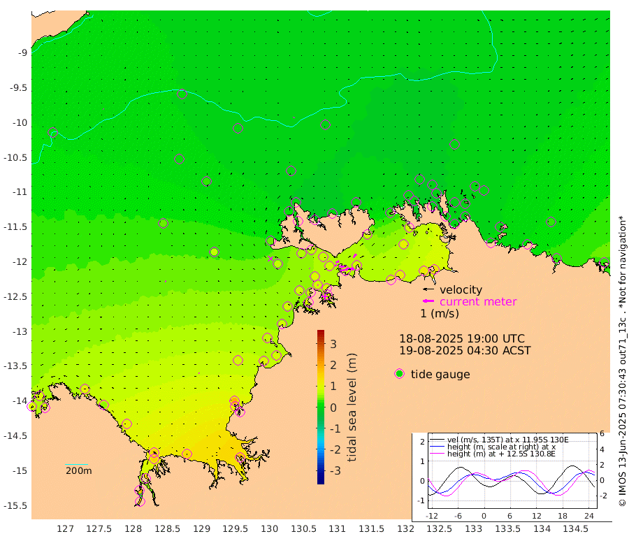 61cm/s 79T +4cm/s rms + 6cm/s 51T. Darwin_C1 52m 76cm/s 92T +4cm/s rms + 7cm/s -161T. Darwin_CW1 22m 22cm/s 74T +4cm/s rms + 8cm/s 61T. Darwin_CW2 34m 45cm/s 40T +3cm/s rms + 9cm/s 98T. Darwin_CW3 22m 47cm/s 91T +5cm/s rms + 7cm/s 88T. Darwin_C3 56m 32cm/s 68T +2cm/s rms + 9cm/s -126T. Darwin_CTbW 22m 3cm/s 36T +9cm/s rms + 2cm/s -110T. NWSLYN 196m 5cm/s -47T +1cm/s rms + 1cm/s -47T. DARBGF 30m 2cm/s -22T +7cm/s rms + 2cm/s -137T. ITFTIS 464m 2cm/s -164T +9cm/s rms + 1cm/s 74T. ITFMHB 146m 7cm/s -47T +4cm/s rms + 1cm/s -134T. ITFJBG 61m 7cm/s -44T +6cm/s rms + 4cm/s 121T. ITFFTB 108m 8cm/s -52T +4cm/s rms + 3cm/s 80T. NRSDAR 19m 91cm Carronade Island 98cm Guy Point 94cm Napier Broome Bay 102cm Lesueur Island 111cm Reveley Island 52cm Rocky Island 152cm Cape Domett 149cm Lacrosse Island 161cm Adolphus Island 174cm Pender Point 186cm Wyndham 38cm The Boxers 17cm Unnamed Shoal 12cm Loxton Shoal 141cm Pelican Island 29cm Calder Shoal 7cm Evans Shoal 181cm Quoin Island 127cm Port Keats 114cm Jones Point 187cm Catfish Island 86cm Cape Scott Offshore 97cm Cape Ford 84cm Anson Bay 2cm Goodrich Bank 70cm Peron Island North 85cm Point Jenny 81cm Native Point 79cm Fish Reef 86cm Tapa Bay 42cm Point Fawcett (Offshore) 97cm Burge Point 64cm Munkunuwa 78cm Beagle A 72cm Parsons Bank 97cm Fenton Patches -1cm Lynedoch Bank 85cm Hancox Shoal Area 99cm Nightcliff 88cm Darwin 82cm Charles Point Patches 90cm Glyde Point 108cm Chambers Bay 105cm Point Stuart 85cm Cape Hotham 108cm Christine Reef 117cm West Alligator Head 129cm East Field Island 80cm Two Hills Bay 71cm Newby Shoal 88cm Camp Point 74cm Medina Inlet South 19cm South Barlow Point 20cm St. Asaph Bay 0cm Cape Van Dieman -5cm Snake Bay 9cm Cache Point 18cm Echo Shoal 13cm Point Jahleel (Off) 33cm Cape Don 3cm Port Essington 3cm Smith Point - West -1cm NW Peacock Island 1cm North Of Jones Shoal -1cm Peacock Island -6cm Point David -3cm D'urville Point 0cm Money Shoal -5cm Copeland Island 0cm Cape Cockburn -2cm One Tree Point 3cm Hogmany Shoal 2cm New Year Island - West 0cm Grant Island 3cm Aurari Bay 12cm Cuthbert Point 5cm North Goulburn Island 25cm Paxie Shoal 23cm Entrance Island 32cm Yabooma Island