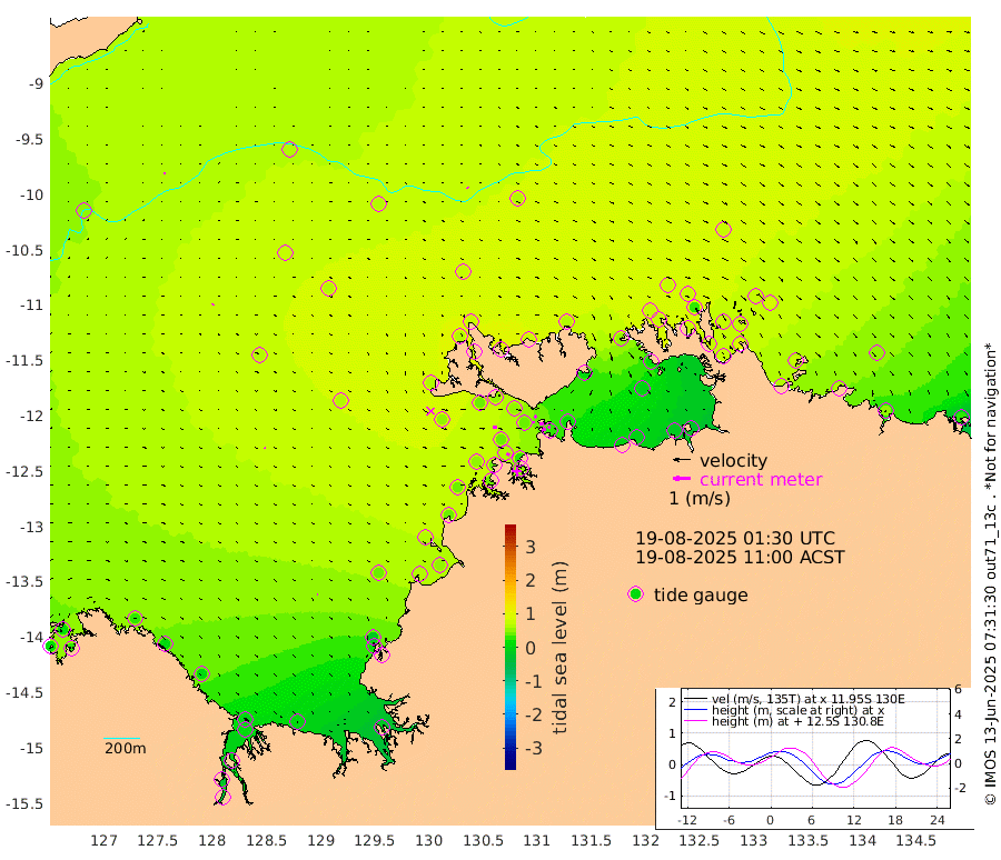 16cm/s 77T +4cm/s rms + 6cm/s 51T. Darwin_C1 52m 15cm/s -86T +4cm/s rms + 7cm/s -161T. Darwin_CW1 22m 13cm/s 81T +4cm/s rms + 8cm/s 61T. Darwin_CW2 34m 4cm/s -165T +3cm/s rms + 9cm/s 98T. Darwin_CW3 22m 19cm/s 90T +5cm/s rms + 7cm/s 88T. Darwin_C3 56m 16cm/s 61T +2cm/s rms + 9cm/s -126T. Darwin_CTbW 22m 7cm/s 128T +9cm/s rms + 2cm/s -110T. NWSLYN 196m 20cm/s 91T +1cm/s rms + 1cm/s -47T. DARBGF 30m 6cm/s 18T +7cm/s rms + 2cm/s -137T. ITFTIS 464m 7cm/s 38T +9cm/s rms + 1cm/s 74T. ITFMHB 146m 4cm/s 121T +4cm/s rms + 1cm/s -134T. ITFJBG 61m 8cm/s 95T +6cm/s rms + 4cm/s 121T. ITFFTB 108m 16cm/s 120T +4cm/s rms + 3cm/s 80T. NRSDAR 19m 18cm Carronade Island 16cm Guy Point 24cm Napier Broome Bay 33cm Lesueur Island 10cm Reveley Island 10cm Rocky Island 1cm Cape Domett 0cm Lacrosse Island -6cm Adolphus Island -31cm Pender Point -36cm Wyndham 65cm The Boxers 73cm Unnamed Shoal 65cm Loxton Shoal 3cm Pelican Island 66cm Calder Shoal 64cm Evans Shoal -19cm Quoin Island 20cm Port Keats 16cm Jones Point -15cm Catfish Island 41cm Cape Scott Offshore 57cm Cape Ford 46cm Anson Bay 69cm Goodrich Bank 57cm Peron Island North 43cm Point Jenny 44cm Native Point 48cm Fish Reef 44cm Tapa Bay 67cm Point Fawcett (Offshore) 39cm Burge Point 40cm Munkunuwa 46cm Beagle A 48cm Parsons Bank 35cm Fenton Patches 67cm Lynedoch Bank 39cm Hancox Shoal Area 33cm Nightcliff 51cm Darwin 61cm Charles Point Patches 25cm Glyde Point -5cm Chambers Bay -9cm Point Stuart 17cm Cape Hotham -5cm Christine Reef -19cm West Alligator Head -33cm East Field Island 16cm Two Hills Bay 66cm Newby Shoal 11cm Camp Point 52cm Medina Inlet South 73cm South Barlow Point 66cm St. Asaph Bay 71cm Cape Van Dieman 79cm Snake Bay 71cm Cache Point 54cm Echo Shoal 63cm Point Jahleel (Off) 56cm Cape Don 74cm Port Essington 73cm Smith Point - West 75cm NW Peacock Island 75cm North Of Jones Shoal 27cm Peacock Island 73cm Point David 76cm D'urville Point 75cm Money Shoal 70cm Copeland Island 94cm Cape Cockburn 76cm One Tree Point 87cm Hogmany Shoal 75cm New Year Island - West 76cm Grant Island 63cm Aurari Bay 64cm Cuthbert Point 71cm North Goulburn Island 53cm Paxie Shoal 48cm Entrance Island 34cm Yabooma Island