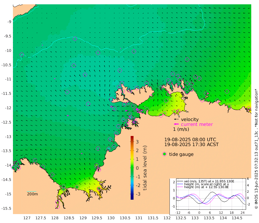 77cm/s -103T +4cm/s rms + 6cm/s 51T. Darwin_C1 52m 33cm/s -88T +4cm/s rms + 7cm/s -161T. Darwin_CW1 22m 43cm/s -104T +4cm/s rms + 8cm/s 61T. Darwin_CW2 34m 16cm/s -105T +3cm/s rms + 9cm/s 98T. Darwin_CW3 22m 60cm/s -91T +5cm/s rms + 7cm/s 88T. Darwin_C3 56m 50cm/s -115T +2cm/s rms + 9cm/s -126T. Darwin_CTbW 22m 9cm/s -43T +9cm/s rms + 2cm/s -110T. NWSLYN 196m 47cm/s -90T +1cm/s rms + 1cm/s -47T. DARBGF 30m 6cm/s -97T +7cm/s rms + 2cm/s -137T. ITFTIS 464m 17cm/s -22T +9cm/s rms + 1cm/s 74T. ITFMHB 146m 19cm/s -33T +4cm/s rms + 1cm/s -134T. ITFJBG 61m 28cm/s -51T +6cm/s rms + 4cm/s 121T. ITFFTB 108m 44cm/s -61T +4cm/s rms + 3cm/s 80T. NRSDAR 19m -47cm Carronade Island -51cm Guy Point -55cm Napier Broome Bay -51cm Lesueur Island -34cm Reveley Island -44cm Rocky Island -18cm Cape Domett -22cm Lacrosse Island 12cm Adolphus Island 46cm Pender Point 63cm Wyndham -97cm The Boxers -84cm Unnamed Shoal -101cm Loxton Shoal -17cm Pelican Island -109cm Calder Shoal -98cm Evans Shoal 31cm Quoin Island -47cm Port Keats -31cm Jones Point 32cm Catfish Island -87cm Cape Scott Offshore -113cm Cape Ford -89cm Anson Bay -92cm Goodrich Bank -98cm Peron Island North -94cm Point Jenny -93cm Native Point -92cm Fish Reef -89cm Tapa Bay -118cm Point Fawcett (Offshore) -79cm Burge Point -94cm Munkunuwa -92cm Beagle A -77cm Parsons Bank -72cm Fenton Patches -82cm Lynedoch Bank -65cm Hancox Shoal Area -75cm Nightcliff -76cm Darwin -91cm Charles Point Patches -28cm Glyde Point 19cm Chambers Bay 35cm Point Stuart -11cm Cape Hotham 13cm Christine Reef 45cm West Alligator Head 72cm East Field Island -4cm Two Hills Bay -107cm Newby Shoal 6cm Camp Point -96cm Medina Inlet South -111cm South Barlow Point -109cm St. Asaph Bay -94cm Cape Van Dieman -97cm Snake Bay -93cm Cache Point -88cm Echo Shoal -80cm Point Jahleel (Off) -60cm Cape Don -75cm Port Essington -79cm Smith Point - West -72cm NW Peacock Island -85cm North Of Jones Shoal -28cm Peacock Island -44cm Point David -72cm D'urville Point -60cm Money Shoal -38cm Copeland Island -59cm Cape Cockburn -54cm One Tree Point -47cm Hogmany Shoal -47cm New Year Island - West -46cm Grant Island -20cm Aurari Bay -10cm Cuthbert Point -32cm North Goulburn Island 2cm Paxie Shoal 23cm Entrance Island 57cm Yabooma Island