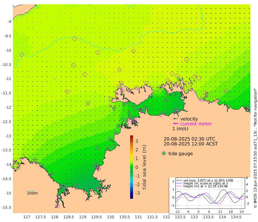 13cm/s -99T +4cm/s rms + 6cm/s 51T. Darwin_C1 52m 39cm/s -90T +4cm/s rms + 7cm/s -161T. Darwin_CW1 22m 8cm/s -118T +4cm/s rms + 8cm/s 61T. Darwin_CW2 34m 21cm/s -140T +3cm/s rms + 9cm/s 98T. Darwin_CW3 22m 13cm/s -95T +5cm/s rms + 7cm/s 88T. Darwin_C3 56m 3cm/s 45T +2cm/s rms + 9cm/s -126T. Darwin_CTbW 22m 9cm/s 138T +9cm/s rms + 2cm/s -110T. NWSLYN 196m 15cm/s 98T +1cm/s rms + 1cm/s -47T. DARBGF 30m 7cm/s 27T +7cm/s rms + 2cm/s -137T. ITFTIS 464m 7cm/s 49T +9cm/s rms + 1cm/s 74T. ITFMHB 146m 6cm/s 77T +4cm/s rms + 1cm/s -134T. ITFJBG 61m 10cm/s 94T +6cm/s rms + 4cm/s 121T. ITFFTB 108m 13cm/s 130T +4cm/s rms + 3cm/s 80T. NRSDAR 19m 39cm Carronade Island 37cm Guy Point 46cm Napier Broome Bay 25cm Lesueur Island -21cm Reveley Island -12cm Rocky Island -48cm Cape Domett -42cm Lacrosse Island -57cm Adolphus Island -63cm Pender Point -58cm Wyndham 59cm The Boxers 65cm Unnamed Shoal 70cm Loxton Shoal -50cm Pelican Island 61cm Calder Shoal 66cm Evans Shoal -73cm Quoin Island -36cm Port Keats -38cm Jones Point -29cm Catfish Island 3cm Cape Scott Offshore -3cm Cape Ford 3cm Anson Bay 66cm Goodrich Bank 16cm Peron Island North 5cm Point Jenny 5cm Native Point 5cm Fish Reef -2cm Tapa Bay 47cm Point Fawcett (Offshore) -12cm Burge Point -6cm Munkunuwa 10cm Beagle A -2cm Parsons Bank -14cm Fenton Patches 67cm Lynedoch Bank -8cm Hancox Shoal Area -15cm Nightcliff -5cm Darwin 10cm Charles Point Patches -11cm Glyde Point -27cm Chambers Bay -29cm Point Stuart -11cm Cape Hotham -25cm Christine Reef -39cm West Alligator Head -49cm East Field Island -3cm Two Hills Bay 44cm Newby Shoal -11cm Camp Point 6cm Medina Inlet South 53cm South Barlow Point 54cm St. Asaph Bay 67cm Cape Van Dieman 73cm Snake Bay 67cm Cache Point 66cm Echo Shoal 57cm Point Jahleel (Off) 43cm Cape Don 66cm Port Essington 65cm Smith Point - West 69cm NW Peacock Island 73cm North Of Jones Shoal 26cm Peacock Island 65cm Point David 69cm D'urville Point 71cm Money Shoal 62cm Copeland Island 84cm Cape Cockburn 69cm One Tree Point 78cm Hogmany Shoal 68cm New Year Island - West 67cm Grant Island 54cm Aurari Bay 53cm Cuthbert Point 61cm North Goulburn Island 44cm Paxie Shoal 34cm Entrance Island 20cm Yabooma Island