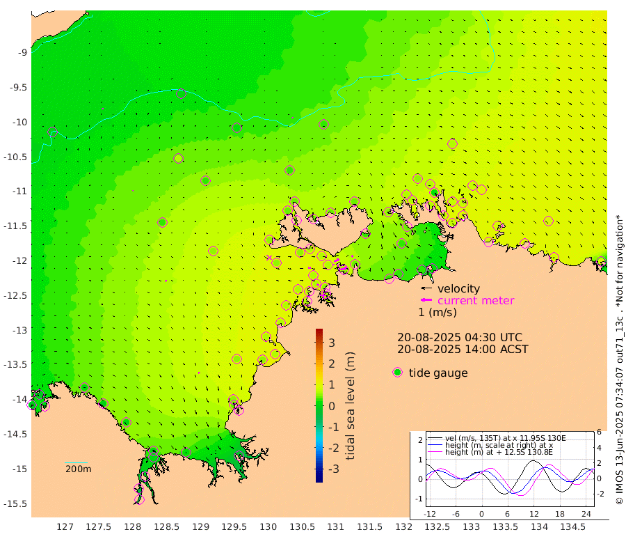 66cm/s 78T +4cm/s rms + 6cm/s 51T. Darwin_C1 52m 20cm/s 77T +4cm/s rms + 7cm/s -161T. Darwin_CW1 22m 14cm/s 80T +4cm/s rms + 8cm/s 61T. Darwin_CW2 34m 18cm/s 55T +3cm/s rms + 9cm/s 98T. Darwin_CW3 22m 9cm/s 91T +5cm/s rms + 7cm/s 88T. Darwin_C3 56m 49cm/s 62T +2cm/s rms + 9cm/s -126T. Darwin_CTbW 22m 5cm/s 141T +9cm/s rms + 2cm/s -110T. NWSLYN 196m 21cm/s 93T +1cm/s rms + 1cm/s -47T. DARBGF 30m 5cm/s -5T +7cm/s rms + 2cm/s -137T. ITFTIS 464m 5cm/s 27T +9cm/s rms + 1cm/s 74T. ITFMHB 146m 14cm/s 144T +4cm/s rms + 1cm/s -134T. ITFJBG 61m 11cm/s 122T +6cm/s rms + 4cm/s 121T. ITFFTB 108m 19cm/s 121T +4cm/s rms + 3cm/s 80T. NRSDAR 19m -12cm Carronade Island -21cm Guy Point -11cm Napier Broome Bay 9cm Lesueur Island 9cm Reveley Island -9cm Rocky Island 2cm Cape Domett 6cm Lacrosse Island -16cm Adolphus Island -49cm Pender Point -51cm Wyndham 32cm The Boxers 60cm Unnamed Shoal 4cm Loxton Shoal 18cm Pelican Island 23cm Calder Shoal 18cm Evans Shoal -23cm Quoin Island 32cm Port Keats 41cm Jones Point 50cm Catfish Island 48cm Cape Scott Offshore 53cm Cape Ford 60cm Anson Bay 31cm Goodrich Bank 64cm Peron Island North 60cm Point Jenny 59cm Native Point 66cm Fish Reef 60cm Tapa Bay 54cm Point Fawcett (Offshore) 58cm Burge Point 50cm Munkunuwa 56cm Beagle A 66cm Parsons Bank 57cm Fenton Patches 26cm Lynedoch Bank 59cm Hancox Shoal Area 55cm Nightcliff 64cm Darwin 66cm Charles Point Patches 48cm Glyde Point 25cm Chambers Bay 30cm Point Stuart 44cm Cape Hotham 23cm Christine Reef 25cm West Alligator Head 12cm East Field Island 42cm Two Hills Bay 50cm Newby Shoal 29cm Camp Point 60cm Medina Inlet South 49cm South Barlow Point 38cm St. Asaph Bay 37cm Cape Van Dieman 41cm Snake Bay 41cm Cache Point -5cm Echo Shoal 41cm Point Jahleel (Off) 55cm Cape Don 57cm Port Essington 58cm Smith Point - West 60cm NW Peacock Island 49cm North Of Jones Shoal 20cm Peacock Island 76cm Point David 65cm D'urville Point 60cm Money Shoal 76cm Copeland Island 100cm Cape Cockburn 73cm One Tree Point 94cm Hogmany Shoal 75cm New Year Island - West 77cm Grant Island 84cm Aurari Bay 93cm Cuthbert Point 84cm North Goulburn Island 85cm Paxie Shoal 89cm Entrance Island 92cm Yabooma Island