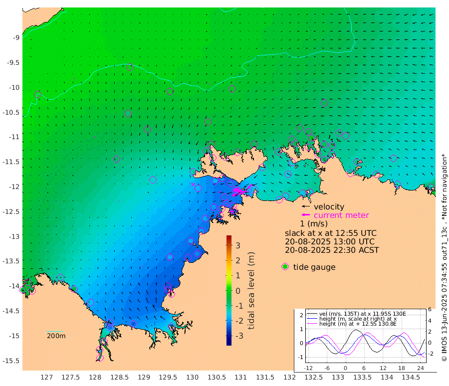 152cm/s -102T +4cm/s rms + 6cm/s 51T. Darwin_C1 52m 125cm/s -90T +4cm/s rms + 7cm/s -161T. Darwin_CW1 22m 68cm/s -106T +4cm/s rms + 8cm/s 61T. Darwin_CW2 34m 82cm/s -137T +3cm/s rms + 9cm/s 98T. Darwin_CW3 22m 107cm/s -90T +5cm/s rms + 7cm/s 88T. Darwin_C3 56m 88cm/s -115T +2cm/s rms + 9cm/s -126T. Darwin_CTbW 22m 5cm/s -101T +9cm/s rms + 2cm/s -110T. NWSLYN 196m 25cm/s -101T +1cm/s rms + 1cm/s -47T. DARBGF 30m 10cm/s 167T +7cm/s rms + 2cm/s -137T. ITFTIS 464m 7cm/s 180T +9cm/s rms + 1cm/s 74T. ITFMHB 146m 8cm/s -1T +4cm/s rms + 1cm/s -134T. ITFJBG 61m 2cm/s 164T +6cm/s rms + 4cm/s 121T. ITFFTB 108m 17cm/s -73T +4cm/s rms + 3cm/s 80T. NRSDAR 19m -41cm Carronade Island -39cm Guy Point -46cm Napier Broome Bay -115cm Lesueur Island -164cm Reveley Island -64cm Rocky Island -224cm Cape Domett -213cm Lacrosse Island -211cm Adolphus Island -175cm Pender Point -168cm Wyndham -74cm The Boxers -89cm Unnamed Shoal -5cm Loxton Shoal -232cm Pelican Island -54cm Calder Shoal -15cm Evans Shoal -235cm Quoin Island -237cm Port Keats -234cm Jones Point -243cm Catfish Island -185cm Cape Scott Offshore -231cm Cape Ford -204cm Anson Bay -33cm Goodrich Bank -185cm Peron Island North -193cm Point Jenny -189cm Native Point -201cm Fish Reef -206cm Tapa Bay -118cm Point Fawcett (Offshore) -226cm Burge Point -178cm Munkunuwa -174cm Beagle A -206cm Parsons Bank -216cm Fenton Patches -22cm Lynedoch Bank -206cm Hancox Shoal Area -218cm Nightcliff -231cm Darwin -218cm Charles Point Patches -185cm Glyde Point -159cm Chambers Bay -157cm Point Stuart -165cm Cape Hotham -149cm Christine Reef -164cm West Alligator Head -157cm East Field Island -143cm Two Hills Bay -143cm Newby Shoal -145cm Camp Point -198cm Medina Inlet South -91cm South Barlow Point -70cm St. Asaph Bay -37cm Cape Van Dieman -41cm Snake Bay -47cm Cache Point 9cm Echo Shoal -57cm Point Jahleel (Off) -101cm Cape Don -64cm Port Essington -61cm Smith Point - West -59cm NW Peacock Island -47cm North Of Jones Shoal -18cm Peacock Island -77cm Point David -64cm D'urville Point -60cm Money Shoal -77cm Copeland Island -106cm Cape Cockburn -77cm One Tree Point -102cm Hogmany Shoal -81cm New Year Island - West -83cm Grant Island -94cm Aurari Bay -113cm Cuthbert Point -99cm North Goulburn Island -124cm Paxie Shoal -128cm Entrance Island -140cm Yabooma Island